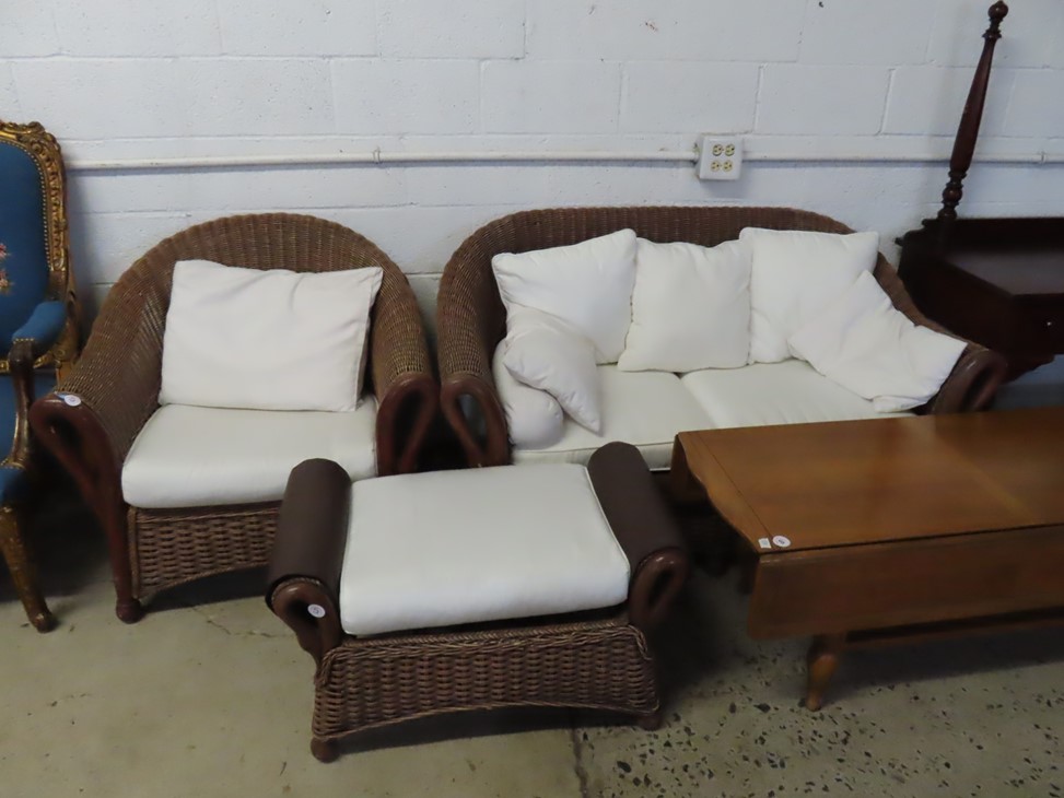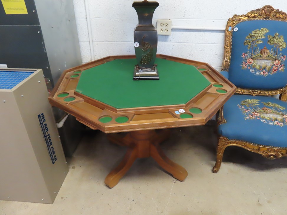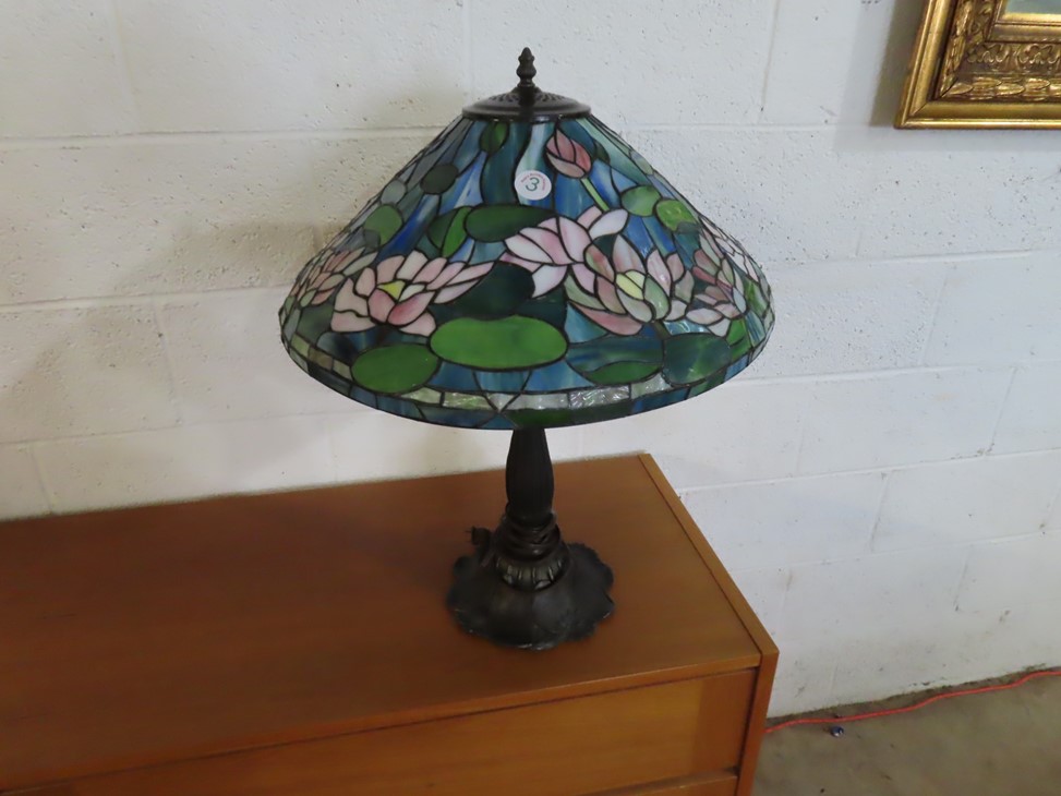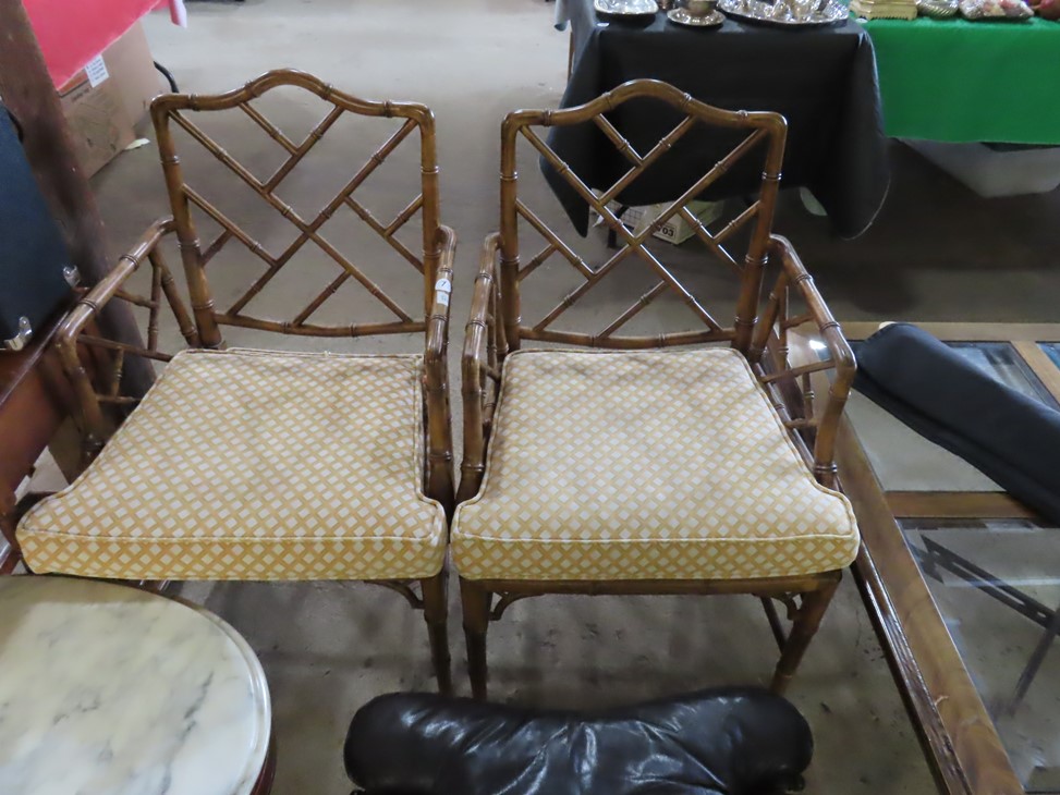 FURNISHINGS: MCM table with leaf and 6 chairs; Mid-century modern bed with attached nightstands; Gentleman’s chest; MCM Bookcase; Cabinet; Mid-century Modern chair pair; Double dresser; Wide secretary with bookcase top; Leather easy chair; Old blanket box; Pie crust edge table; Half round cabinet; Elaborately carved server with china cabinet top; Fancy chair with nicely needlepointed seat, back and arms with gold-washed frame; Double drawer desk; Dining table with leaf and four chairs with rush seats; Buffet with china display top; Contemporary buffet; Tea cart; Lots of metal and glass tables; Banded edge table; Bar seat set; Credenza; Heavily carved double cabinet with 5-toed dragon medallion; Imposing corner cabinet with arched glass doors; Open step-back hutch; Drop front secretary; Serpentine front cabinet; Victorian occasional table; Pair of bamboo look chairs; Marble top table; Primitive bench; Lots of small tables; Chair with needlepoint seat; End tables; Oriental chest; Round cabinet; More chairs with needlepoint seats; Fern stand; Barstool; Small white child’s desk; Natural color wicker settee, chair & ottoman set; Poker table; Coffee table with drop leaf sides; Another dining table with leaf and 8 chairs; Contemporary white dresser; Mirrored door wardrobe; Brass & glass table; Modern coffee table; Small Oriental cabinet; Room screen; Round marble top table; Classic brass and black lamp with black shade; Lamp with familial crest; Tiffany style lamp; Clocks with mother of pearl inlay; Faux flower arrangement; Wall clock; Elephant garden seat; Lots of nice table lamps; Mirrors with gold frames; Octagonal Venetian glass mirror; Really nice room size Oriental carpets; Nice rugs and runners, Mantel clocks; Carriage clocks; Lots of Decorator accents and much, much more!