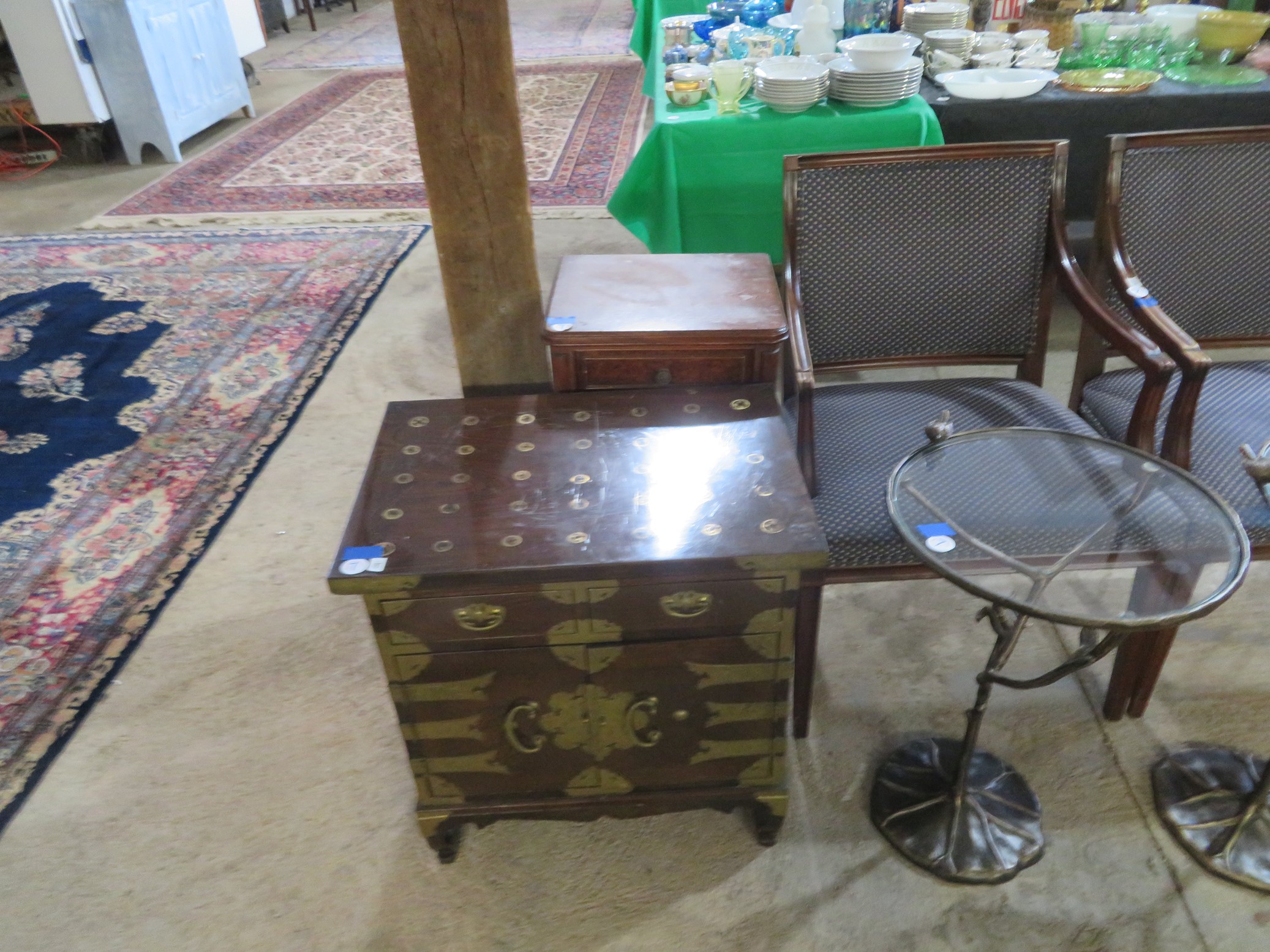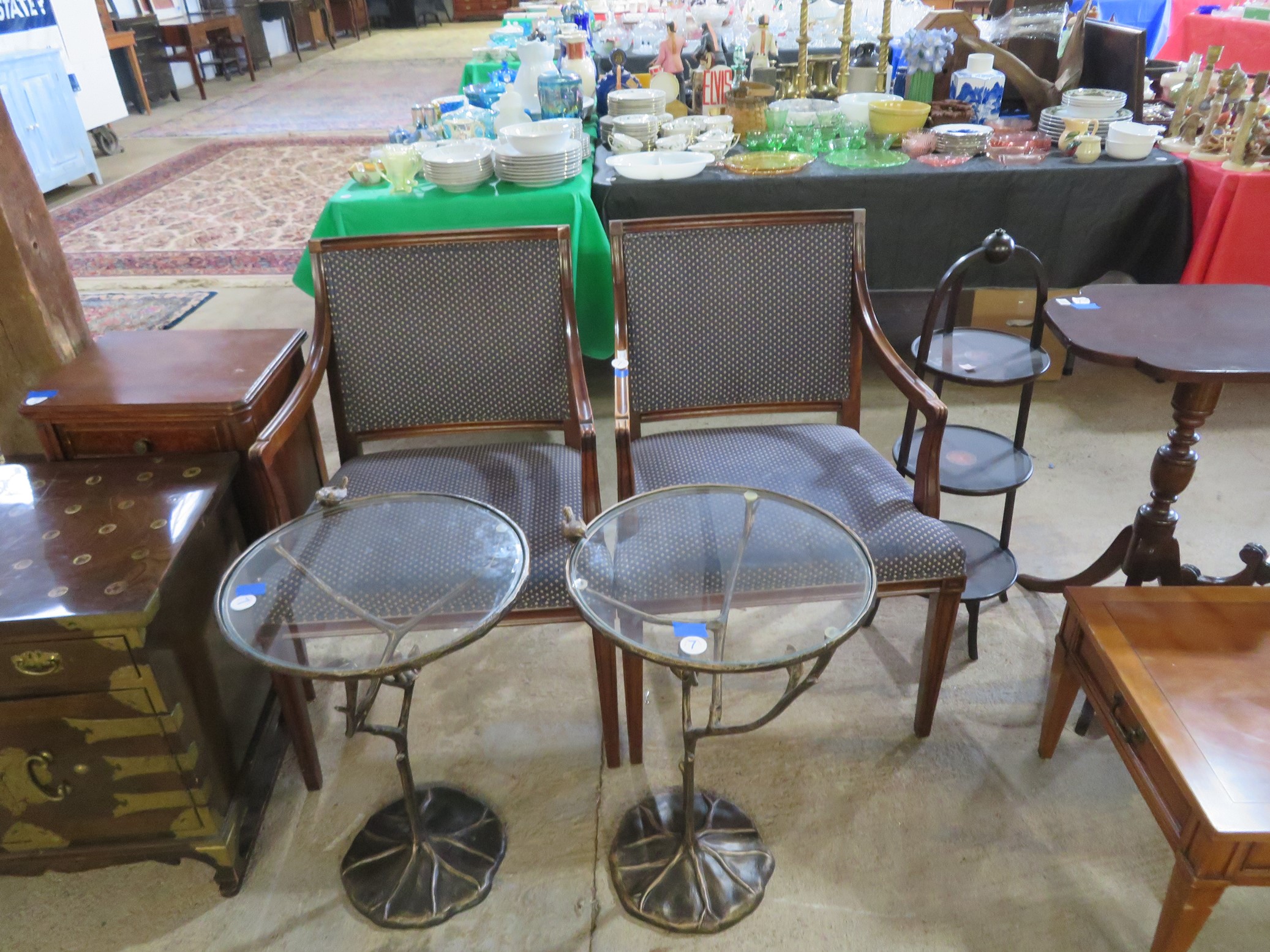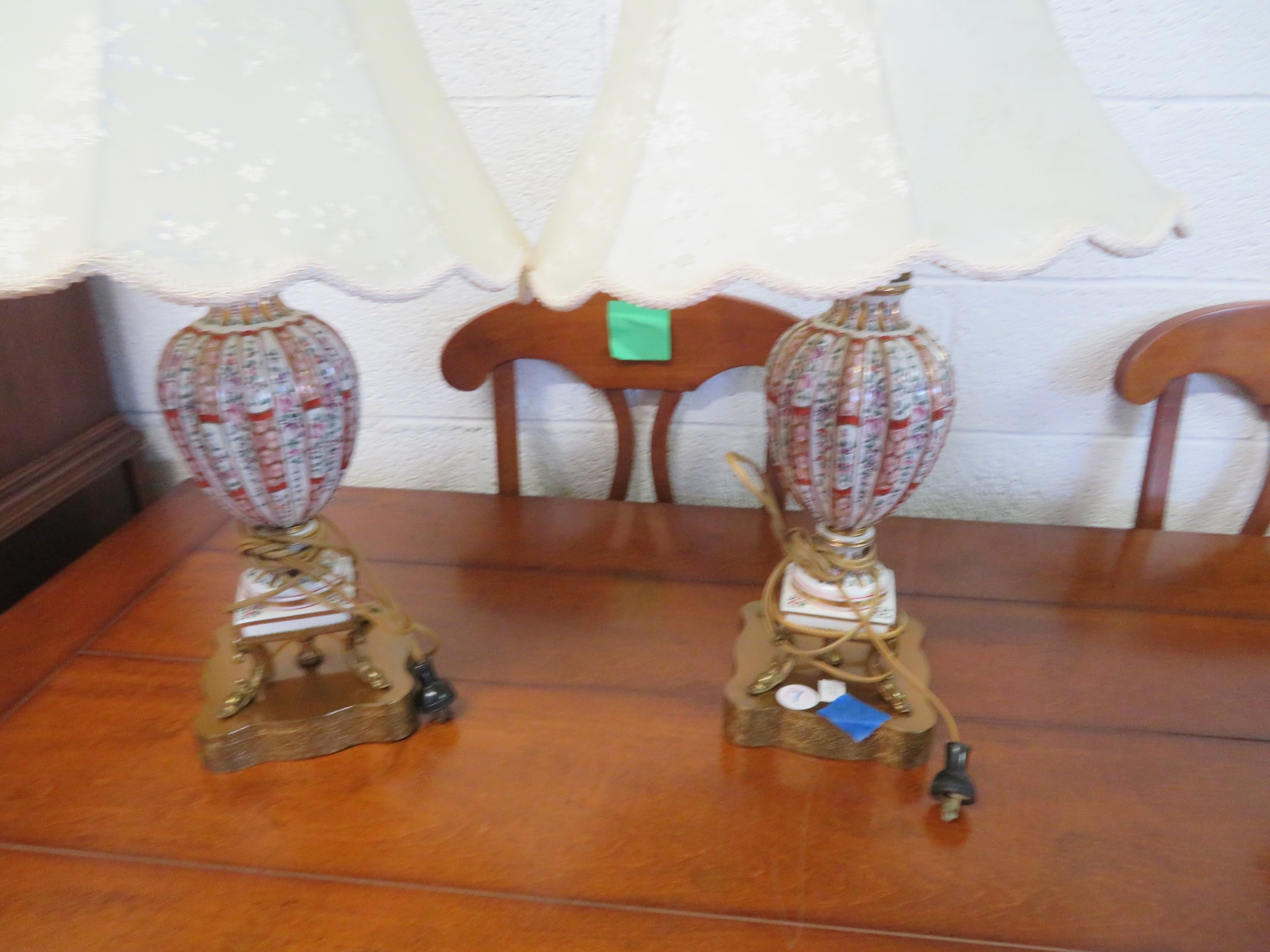 FURNISHINGS: Really nice MCM desk with 5 drawers; MCM chair and table; Kittinger server; 4 section stacking bookcase with base & topper; Oak card catalog on oak table; Good old jelly cupboard; Server with mirrored back; Sunroom glass top table with 4 wicker chairs & cushions; Nice chest of drawers; Contemporary bowfront chest; Contemporary concave front chest; Pressed oak bowfront china cabinet; Two tone Empire dresser; Very nice Golden Oak storage bench; diminutive serpentine front oak washstand with towel bar; Server with band inlay; Golden oak corner cabinet; Etagere; Glass side tables with brass leaf bases & accent birds; Nice armchair pair; Lamp table with brass accents; Marble top washstand; Black corner table with Oriental scenes; Floor lamp; Display shelf with bamboo look supports & paw feet; Black half-round cabinet with Oriental accents; Four drawer contemporary chest; Whitewash painted hallway cabinet; Half width china cabinet with broken arch pediment & filigree detailing; Oriental chests with brass accents; Dinette table with 2 leaves & 4 chairs; Open hutch; Curio cabinet styled like a china cabinet with broken arch; Washbasin stand with mirror and twist legs; Leather chair with nail-head accents; Lyre base table; 3 tier display; Beautiful pair of ribbed melon ceramic lamps on metal bases; Clocks; Fireplace tools & screens; Sumter rice carved four poster bed and dresser, Small server; End table pair; Dresser with mirror; Small library table; Martha Washington sewing table; Marble top side table; Stick lamps with tole shades; Pair of marble top plant stands; Bed steps; Two level coffee table; Pedestal; Bar seat; Coffee table with doily display; Pair of accent chairs; Ladder back chair; Footstools; Another nice coffee table; Magazine caddy; Hope chest; Child’s rocker; Bar stools; Antique child’s bouncy chair; More old children’s chairs& rockers; Sewing machine table; Oak table with leaf and chairs; Oak washstand; Contemporary dining table & chairs; Stone top hall table; Waterfall blanket box; Flat top trunk; Floor vase made of split bamboo stems; Nesting tables; Hall tables; Ottoman; Victorian table with glass ball in talon feet; Round glass table with brass base; Server with brass railing; Crystal ball stem lamp; Gold framed wall mirror; Chinese man statue lamp; Mirror with detailed frame; Blue & white ceramic lamp pair; Brown & white table lamp; Really nice room size Oriental carpets; Nice rugs and runners and much, much more!