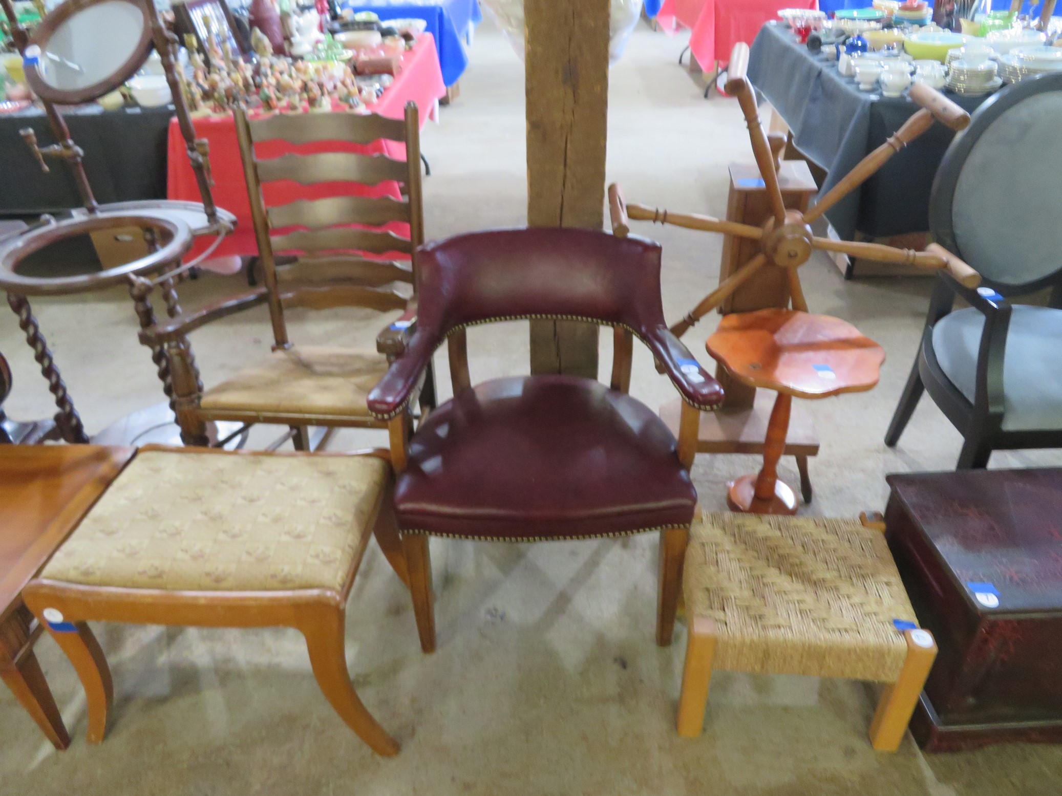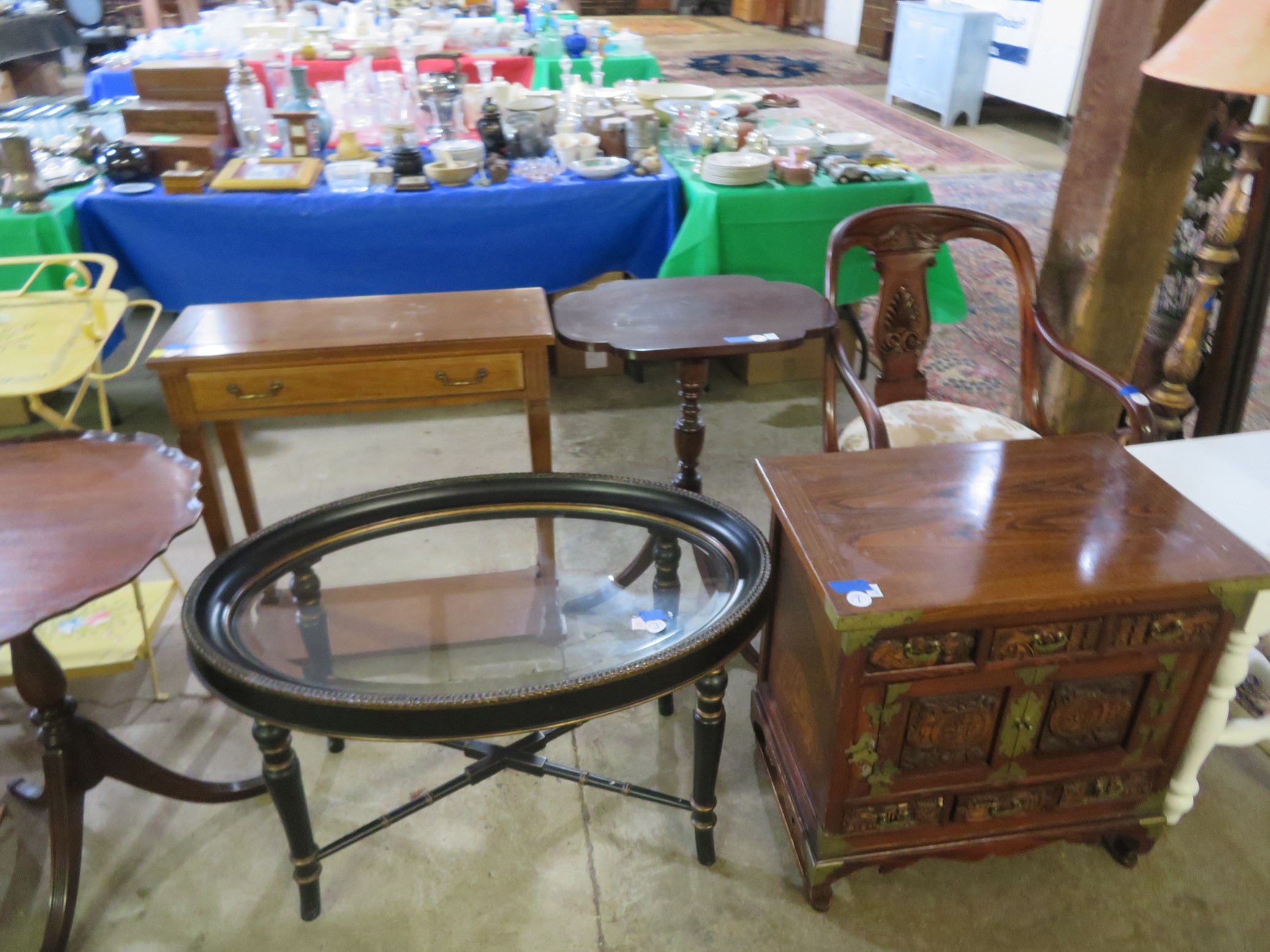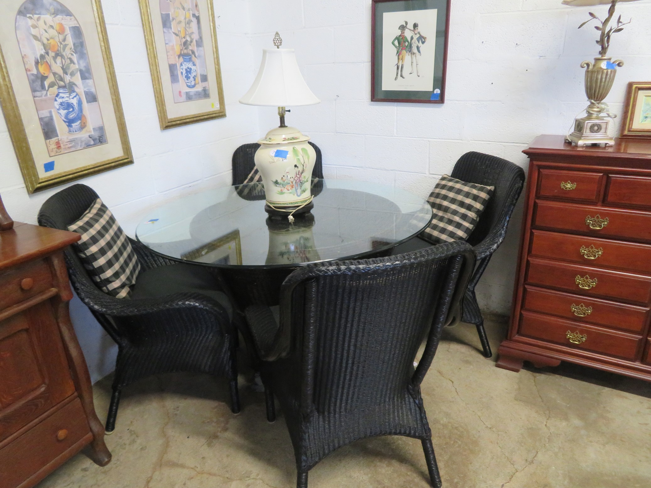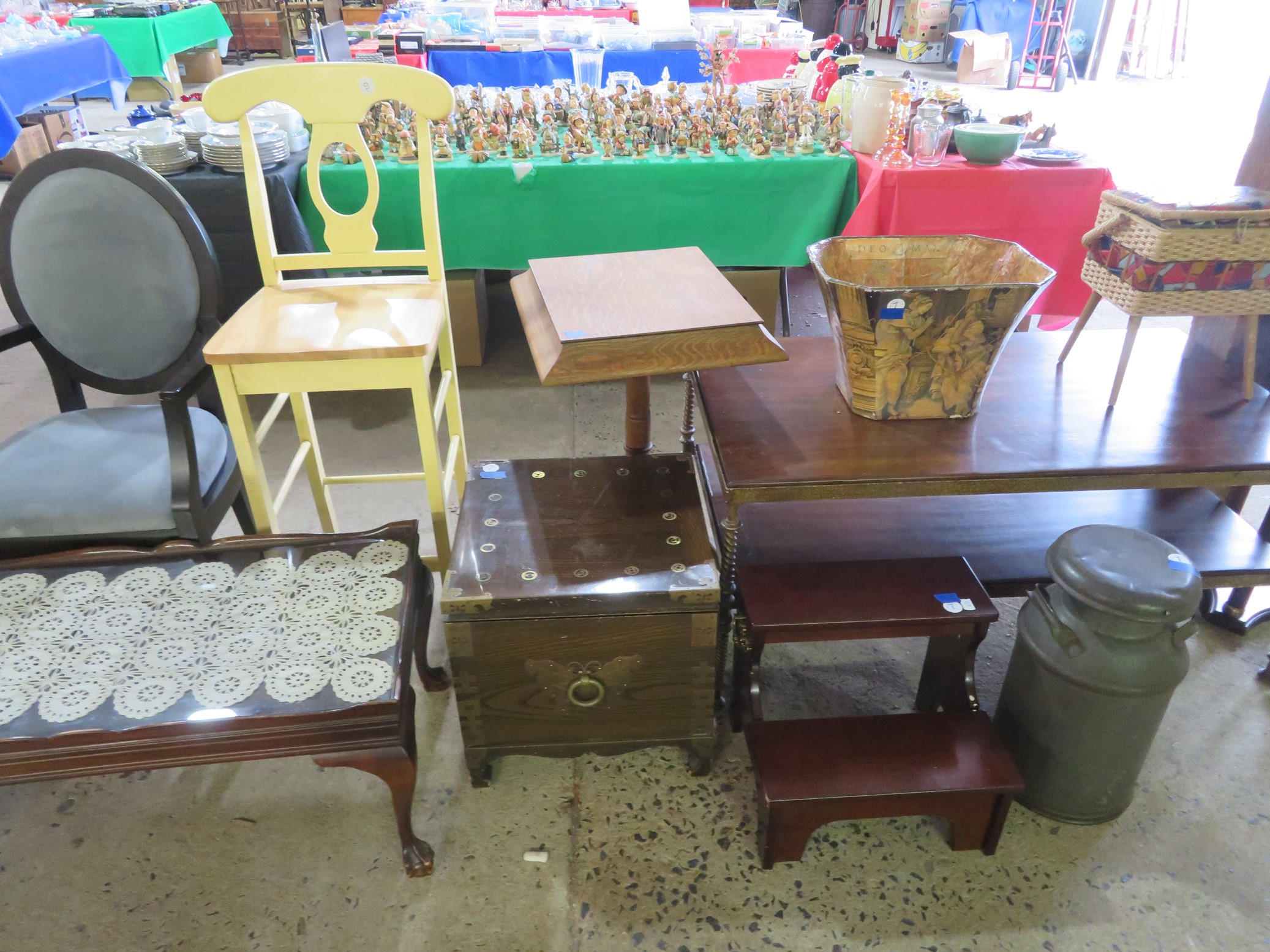 FURNISHINGS: Really nice MCM desk with 5 drawers; MCM chair and table; Kittinger server; 4 section stacking bookcase with base & topper; Oak card catalog on oak table; Good old jelly cupboard; Server with mirrored back; Sunroom glass top table with 4 wicker chairs & cushions; Nice chest of drawers; Contemporary bowfront chest; Contemporary concave front chest; Pressed oak bowfront china cabinet; Two tone Empire dresser; Very nice Golden Oak storage bench; diminutive serpentine front oak washstand with towel bar; Server with band inlay; Golden oak corner cabinet; Etagere; Glass side tables with brass leaf bases & accent birds; Nice armchair pair; Lamp table with brass accents; Marble top washstand; Black corner table with Oriental scenes; Floor lamp; Display shelf with bamboo look supports & paw feet; Black half-round cabinet with Oriental accents; Four drawer contemporary chest; Whitewash painted hallway cabinet; Half width china cabinet with broken arch pediment & filigree detailing; Oriental chests with brass accents; Dinette table with 2 leaves & 4 chairs; Open hutch; Curio cabinet styled like a china cabinet with broken arch; Washbasin stand with mirror and twist legs; Leather chair with nail-head accents; Lyre base table; 3 tier display; Beautiful pair of ribbed melon ceramic lamps on metal bases; Clocks; Fireplace tools & screens; Sumter rice carved four poster bed and dresser, Small server; End table pair; Dresser with mirror; Small library table; Martha Washington sewing table; Marble top side table; Stick lamps with tole shades; Pair of marble top plant stands; Bed steps; Two level coffee table; Pedestal; Bar seat; Coffee table with doily display; Pair of accent chairs; Ladder back chair; Footstools; Another nice coffee table; Magazine caddy; Hope chest; Child’s rocker; Bar stools; Antique child’s bouncy chair; More old children’s chairs& rockers; Sewing machine table; Oak table with leaf and chairs; Oak washstand; Contemporary dining table & chairs; Stone top hall table; Waterfall blanket box; Flat top trunk; Floor vase made of split bamboo stems; Nesting tables; Hall tables; Ottoman; Victorian table with glass ball in talon feet; Round glass table with brass base; Server with brass railing; Crystal ball stem lamp; Gold framed wall mirror; Chinese man statue lamp; Mirror with detailed frame; Blue & white ceramic lamp pair; Brown & white table lamp; Really nice room size Oriental carpets; Nice rugs and runners and much, much more!
