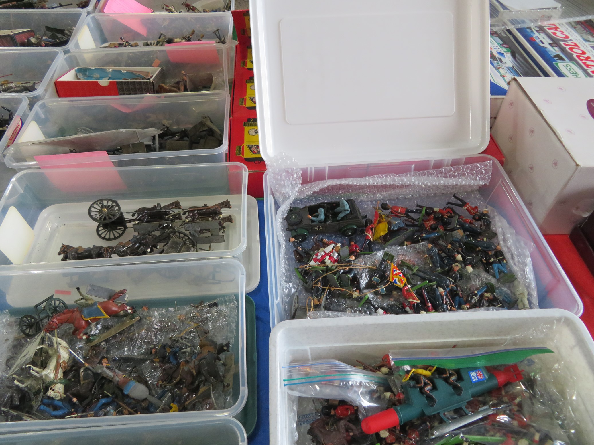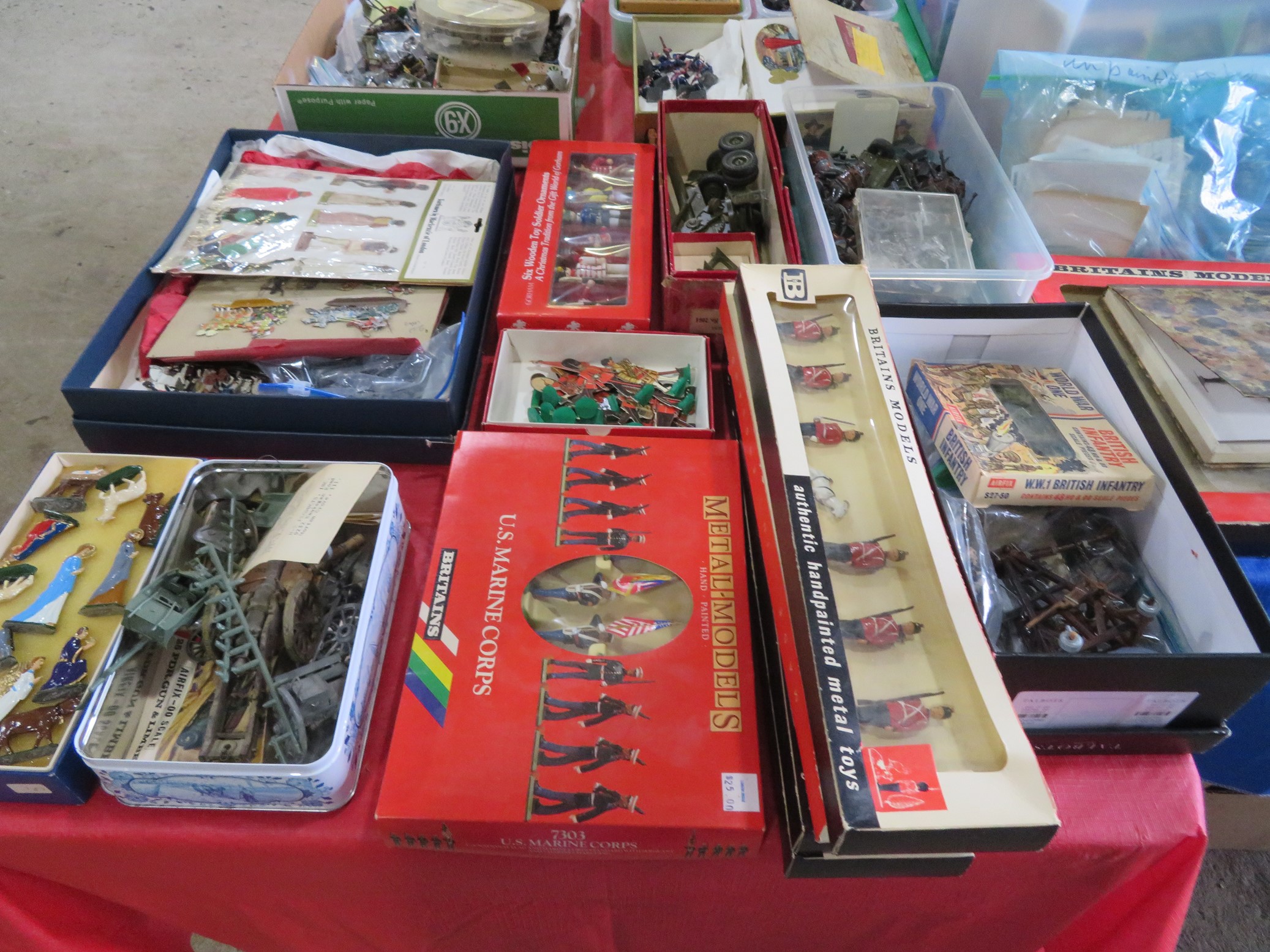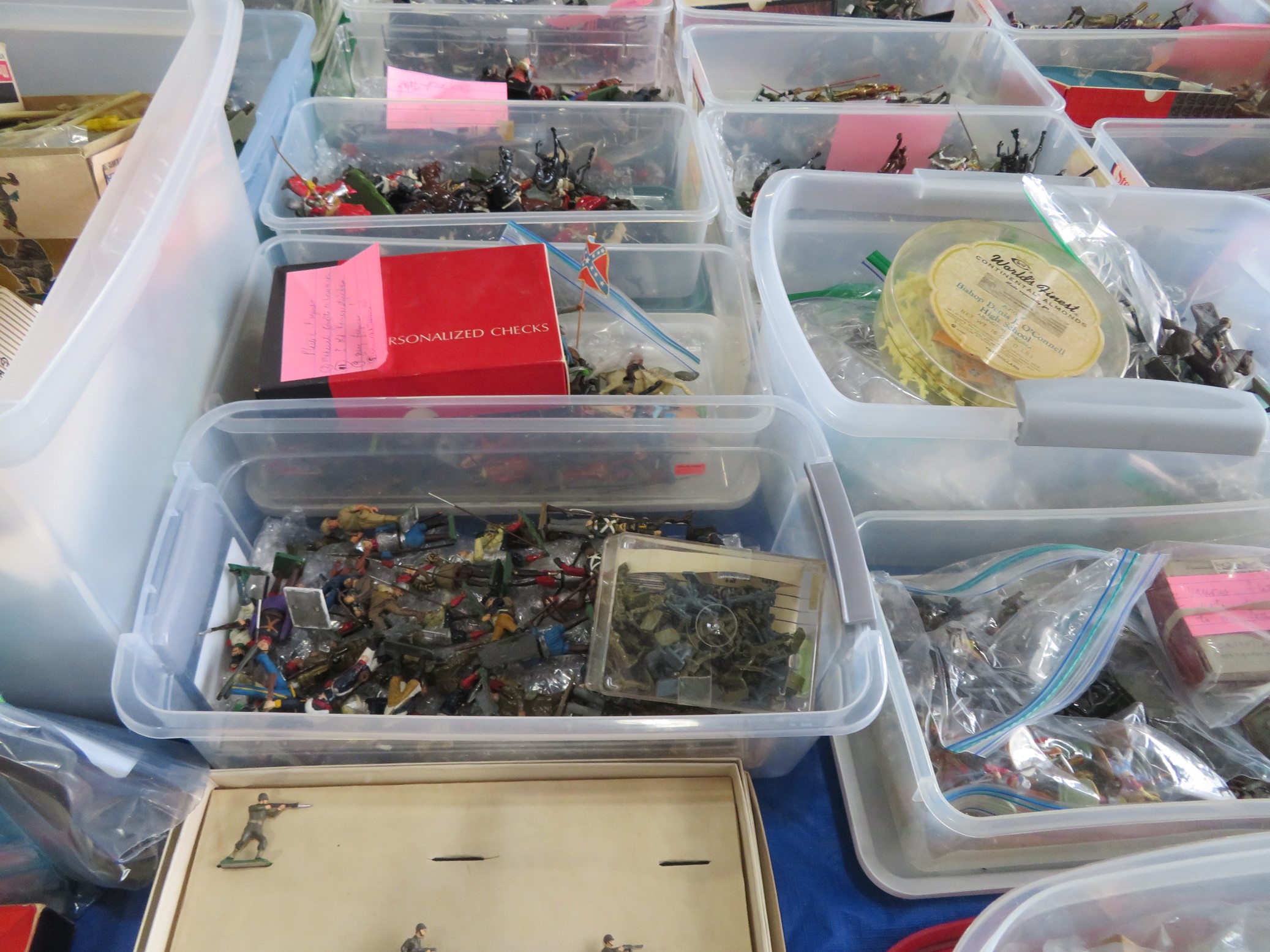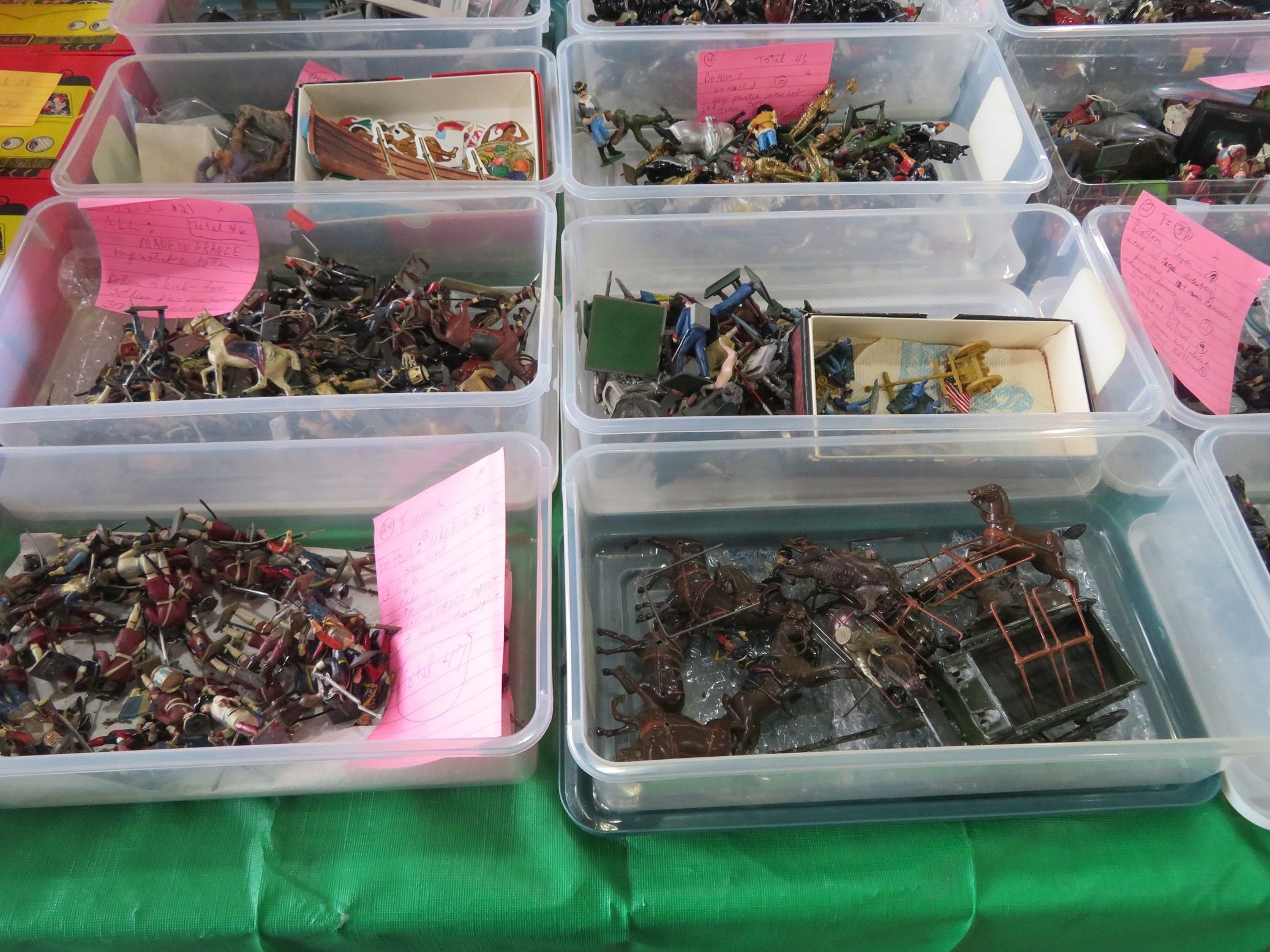 MORE: Neon ‘Coca-Cola’ sign; Neon ‘Open’ sign; Small two shelf counter display cabinet; Scales; Milk can with lid; Golf clubs; Cast iron bear bookend; Glass insulator; Brass car? Horn; Stoneware mixing bowls; Lantern; Stoneware crock; Brass weathervane directional; Pierced tin lantern; Opera glasses; Binoculars; Nice baskets; Old camera; Cuckoo clock; Mantel clock; Figural decanters; Pocket knives; Britain’s toy soldiers; Box after box of toy soldiers, mostly metal but some plastic; Tin soldiers in original boxes; Old cigar boxes with toys; Carriages; Cannons; Horses; Have your very own war! Old Hess trucks; Toy train sets; Baby carriage; Sewing baskets; Yarn winder; Unusual nutcracker figure; Brassware: duck paperweight, candlesticks, bell, hammer, owl family, small bowls & more; Wooden bowl with fruit; Decorative mask; Madame Alexander doll in box; Flour sifter; Carving set; Band saw; Table saw; Craftsman snow blower; Painted saw; Rikon planer; Goodyear Inflator; Lots & lots of Patio furniture for Spring! Planters; Wrought iron; Patio umbrellas; Concrete garden statues & planters on pedestals; Bird bath; Wagon; Dolly; Spreader; Porch swings; Garden bench; Folding chairs; Ferris Wheel plant holder; Fire pit; Traps; Propane tank; Chain saw; Shop vac & more!