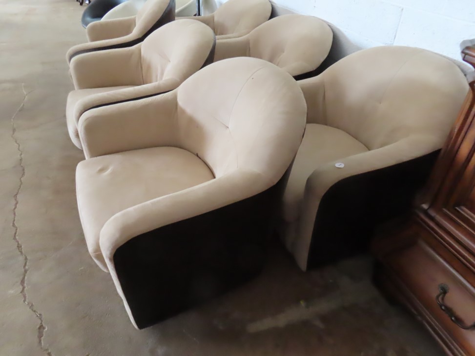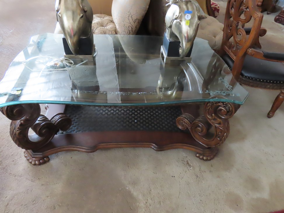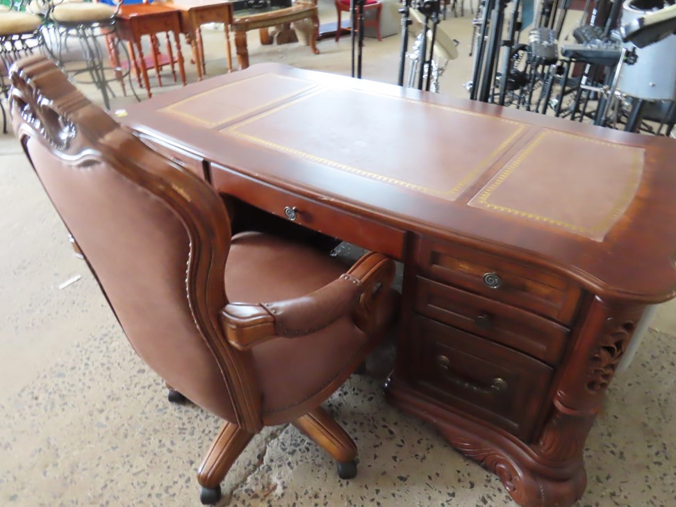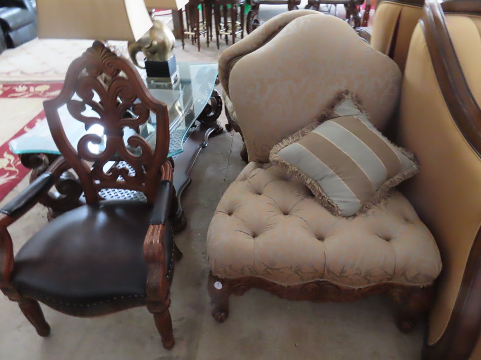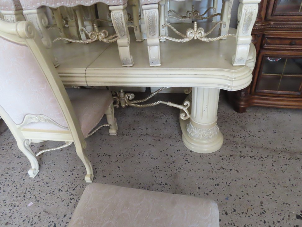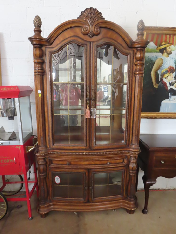 FURNISHINGS: Round Glass table with 5 wonderful, upholstered chairs; 9 Home theater leather seats-sold in groups of 3; Seating nook modern design chrome pedestal chair pair and drink table sets – 1 set with white chairs, 1 set with black chairs; Elaborate bookcase; Glass top chrome pedestal display tables; Modern design floor lamp pair with 3 ball lights; Nicely upholstered armchair; Cream velvet sofa with tufting & tassels; Pair of slipper chairs; Howard Miller Grandfather clock; 6 Club chairs with leather sides; Another super buffet; Library table with marble inserts on legs; Another stupendous china cabinet; Hall table with marble insert top and legs; Dining table with 12 chairs; Henkel Harris Jamestown Colony Corner cabinet; Henkel Harris Jamestown Colony buffet; Leather topped executive desk; Executive rolling desk chair; Wonderful sofa with tulip upholstery; Round glass table with wood pedestal and 5 armchairs; Imposing china cabinet; Dining table with multiple chairs; Another great dining table with 8 chairs; Buffet; End table with pull out candlestand; Executive conference table with rolling leather chairs; Oval Henkel Harris dining table with leaf and 8 chairs; Rolling leather desk chair; Side table with etched glass top; Matching end table pair and coffee table; 4 barstool set; Glass top dinette set with chair pair; More Modern design chairs; Brushed steel & glass coffee table; Another tremendous china cabinet; Another leather top desk with executive chair; Another great china cabinet; Sets of iron bar seats; Washstand with towel bar sides; Pair of drop side end tables; Impressive coffee table; Large marble & glass top oval hall table; Another great leather office chair; Pair of marble end tables; Armless velvet sofa; Empire chest; Nightstands with 1 drawer set; Drop front secretary; Four poster bed; Cannonball bed; Empire dresser with glove boxes; Ottoman; Single chairs; Hanging tulip lights; Floor vase with faux arrangement; More floral arrangements; Round burgundy rug with fleur-de-lis; Cream fleur-de-lis rug; Large rug with burgundy floral border; Lots more Great Oriental rugs; Clear cube stemmed table lamps; Lots of decorator accessories and much, much more!