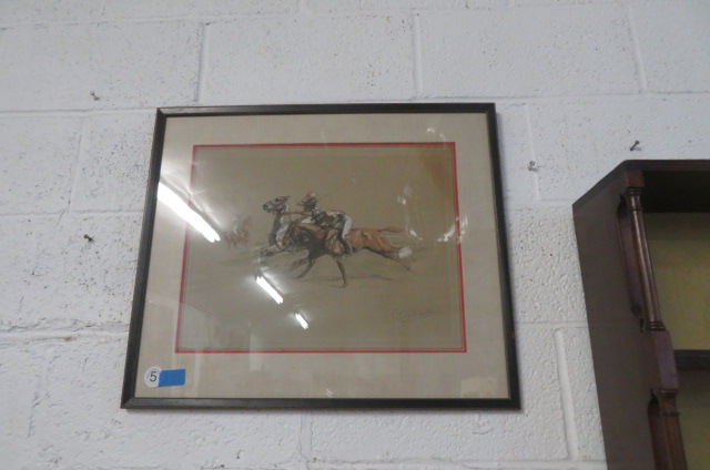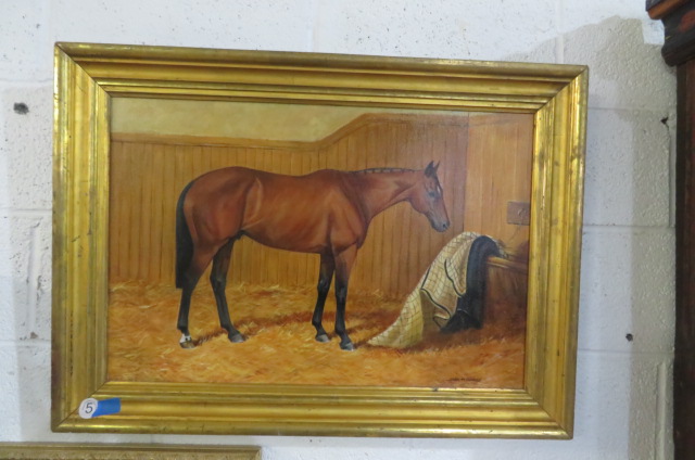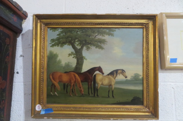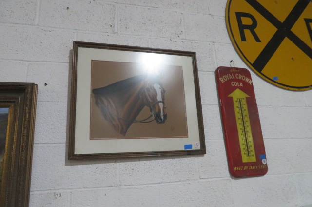 SILVER & ART: Sterling & silver-plate: Champagne bucket; Candlesticks; Gravy boat; Covered serving dish; individual salts with cobalt inserts and much more! Great painting of horses in field (Professional conserved by The Chicago Conservation Center); Another super painting of horse in stall; Polo artwork; Landscape print; Horse head artworks-signed; Rocky seashore art; Ringling Bros Barnum & Bailey Circus posters; Horse & Hounds print; Silhouettes; More original artworks and much, much more!