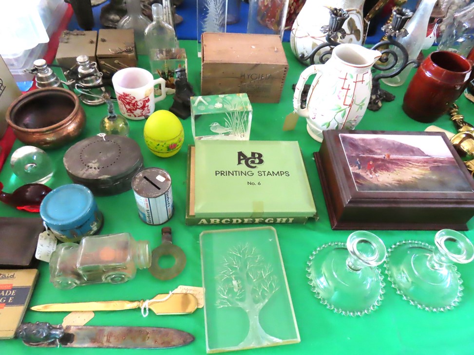 Fantastic selection of antiques, furniture, collectibles, crystal, china, silver, rugs, artwork, tools, and more! Lots of sterling and old advertisingware. Box lots outside to start!