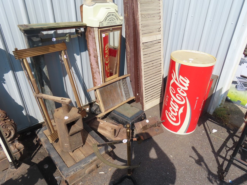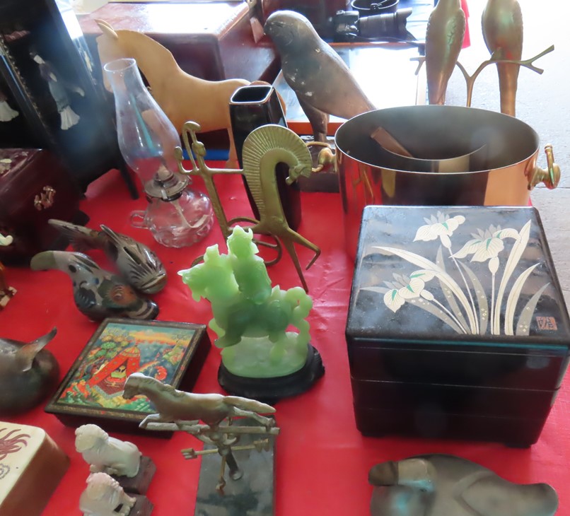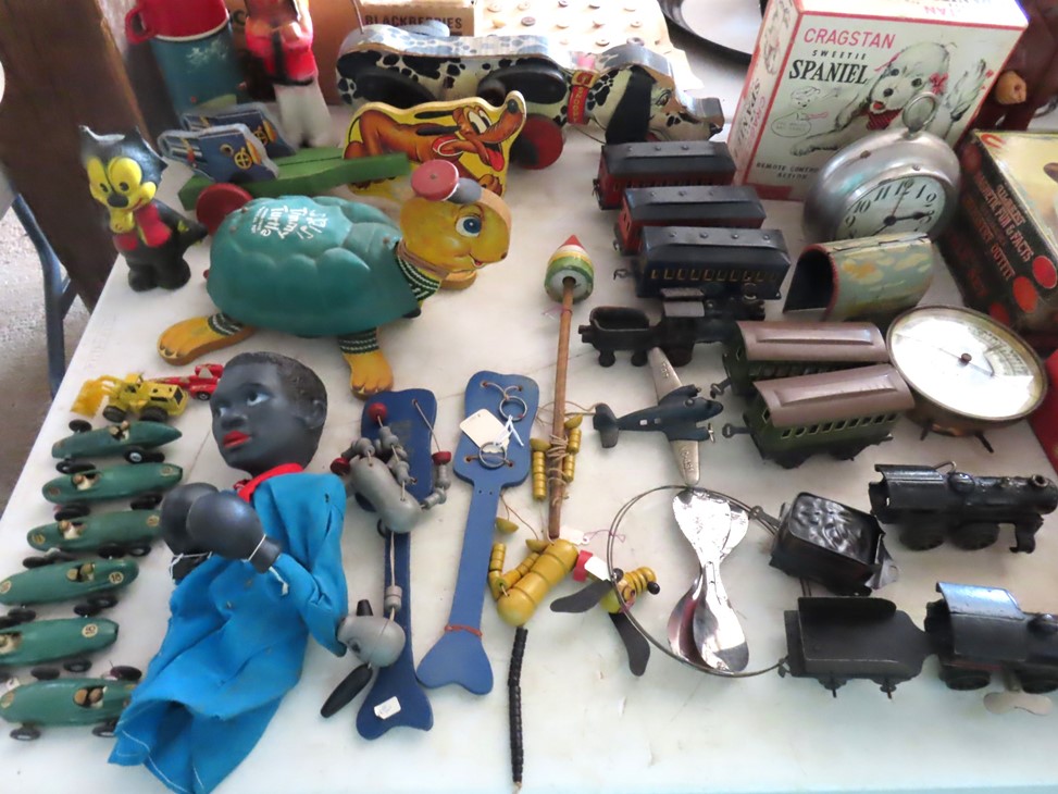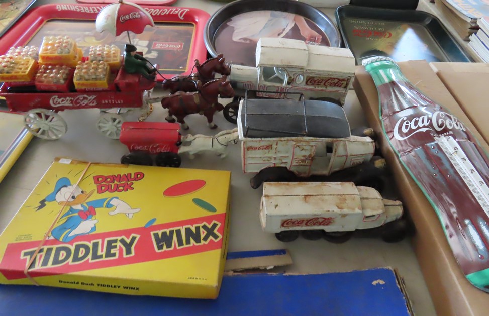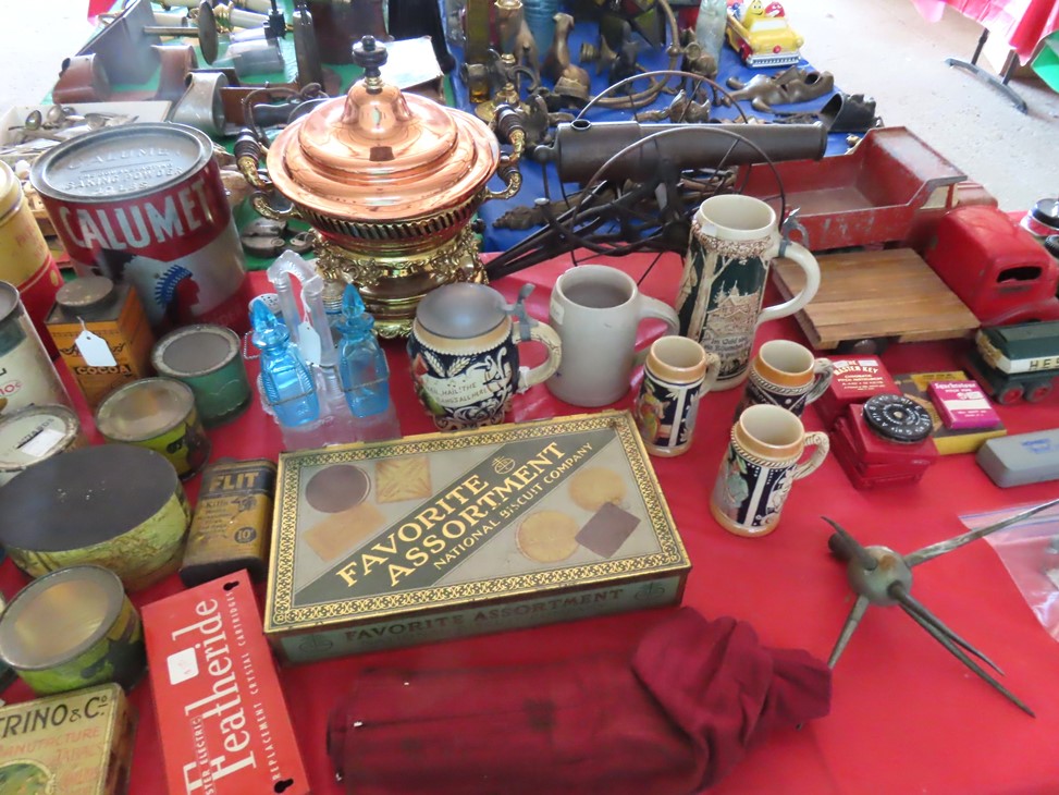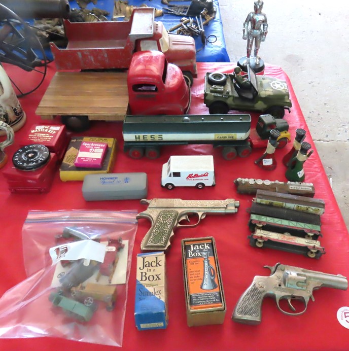 MORE: Decorative suit of armor; Brass horn; Acoustic guitar; Great old Doctor’s remedies case with contents; Old metal medical sterilizer cabinet; Old Optometrist eye test chart; Old sterilizers; Old microscope set in wood case; Full body store mannequin; Old walking canes; Brass floor candleholder; Wooden box; Pez collection in display; Cloisonne vase; Large pig figurine; Brass bowl with handles; Steins; Bulldog doorstops; Hohner harmonica; The Master Key Chromatic Pitch Instruments; Synchrolone Pitch Pipe in box; Old keys on ring; Brass dogs; Brass horse; Old porcelain 2 burner “Universal Electric” stove; Featherweight sewing machine in case; Old scientific apparatus; Old American electric glow bulb heater; Old slide viewer/projector? In case; Old radios; More old electric machines; Early medical machines; Old electric irons; Matchbooks; Old hair dryer; Old toaster; Balance scales in case; Atwater Kent radio; Wind-up record player; More old electric machines; Old Weight & Fortune penny machine; Old binoculars; Brass inkwell set; Coins; Stick telephone; Wooden candlesticks; Marble eggs; Jade flower arrangements; Alligator head; Cast iron dog doorstop; 3 panel hanging mirror; Wood box with box detailing; 8 pieces set of copper stewpots with lids; Detroit platform store counter scales; More scales; Leather bucket; Old light bulbs; Jewelry box; Brass letter opener; Copper & gold chafing dish; Mortar & pestle; Old hat in leather case; Copper pots; Russian lacquer box; Jade statue; Tabletop brass horse weathervane figure; Flower frog; Agate box; Cinnabar box, plate & bowl; Marble vases; Brass foo dog; Old RR lanterns; Railroad locks & keys; RR Bethlehem switchgear; Large old wrenches; Old bell box; Old red bottle; Old green bottle; Old cobalt bottles; More old colored & clear bottles; Glass 3D hanging star; Seashells in vase; Oil lamp; Small crock; Pierced brass hanging censer; Jewelry in boxes; Electric lighthouse; Holiday houses; Lion & book bookends; Old clocks; Horsehead bookends; Horse bookends; More bookends; Ship models; Brass candlesticks; Magnifying glass; Abalone shell; Globes; Squirrel nutcrackers; Duck decoy; Brass trumpet; Sea stars; Granite ware chamber pot; Old buttons; !! Mint condition old metal car models in original boxes!!!! Dusseldorfer Rolli 230 motorcycle rider tin toy in original box; Tin toy boat with rower; Tin toy rope climbing monkey; Tin toy car with driver; Old child’s riding horse; Model ship; Model brass cannon; 7 piece old wooden bowling pin & ball set; Old Toe-Joe mechanical toy; Crow Shoot game (Black memorabilia); Disney; ABC Printing Stamps No. 6 in box; Large cannon model; Old toy dump truck; Old toy flatbed truck; Toy pistol; Small toy vehicles; Army jeep toy; Train set; Toy knight; Model cars; Hunter & bear mechanical bank; Wooden figurines; Old Japanese dolls; Old tin toy carousel; Clapping monkey; Cable car; Old toy church organ; Tin police helicopter; Sanitation Dept. truck; Old model cars; Tins log cabin; Texaco tanker truck; Buddy L; Horse hauler; Cast Iron Stagecoach & horse with driver; Cast iron trucks; International tractor; Tonka trash truck; Wind-up toys; Gilbert Magnetic Fun & Facts kit; J-E-S-T Force 24 piece sets in boxes; Toy stove; Black Boxer puppet; Toy racer cars; Pluto toys; Fisher-Price Snoopy pull dog; Cragstan Sweet Spaniel; Turtle; Thermos; Erector set; Donald Duck Tiddley Winks game; Disney Sketch A Graph with Pantograph kit; Advertising! Old Gerber’s Orange Juice metal bank; Coca-Cola 1955 Selling Kit; Training Program for Salesmen of Coca-Cola kit; Oyster cans; Carmelized Cocktail Stix can; Muriel can; 10 lb. Calumet can; Tobacco cans; Cocca tin; Old ring bottle; Old stereo-viewers; Old brass horn; Old kaleidoscopes; Flit can; National Biscuit Company Favorite Assortment box; Featheride Replacement Crystal cartridges box; Jack in a box; Toy jacks without boxes; M&M collectibles; Gillette razors & blades in original counter display; Macgregor Man’s Gift set box; Uneeda Baker’s display; Coke trays; Coke cast iron horse drawn wagon; Coke pins; Coke opener accessory set; Coke thermometer; More Coke & Diet Coke items; Wooden Pepsi crate; Coke can selling cooler; Pepsi selling rack; Drones; GPS; Quadrocopter Seeker; Detect X380; Raptor; Controllers; Obstacle Course Racing sets in boxes; More Drones & accessories; Fishing rods, reels & lures; Abu reel; Plano lure boxes with contents; Old cameras, lenses & accessories; Brownie; Canon; Minolta; Telescopes; Old Playboys; 3 color Stoplight; Garden statue; Sledge; Shovels; Shimano MT. Sport SX bike; Croquet set; Washboard; Ols shutters; Large platform scales; Iron fireplace mantel; Dolly; Columns; Architectural salvage pieces; Patio tables & chairs; Outdoor furniture; Wrought iron set; Kennedy tool chest & contents; And Much Much More!!!!
