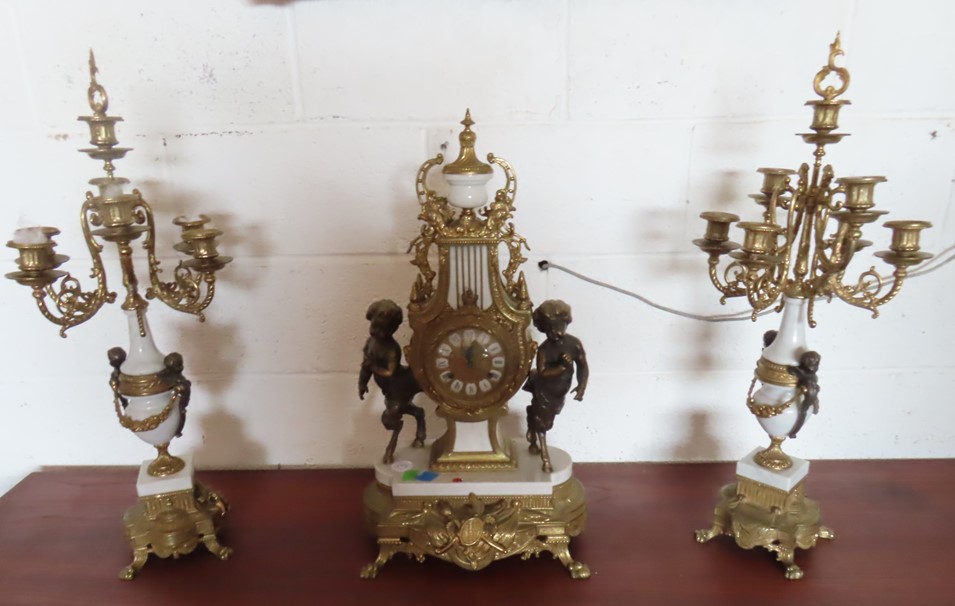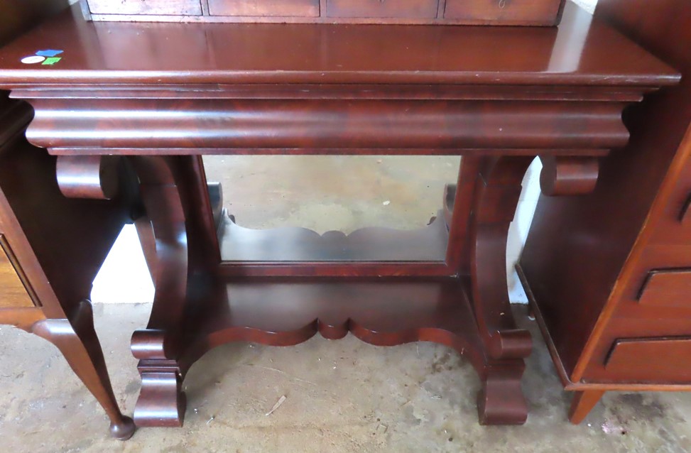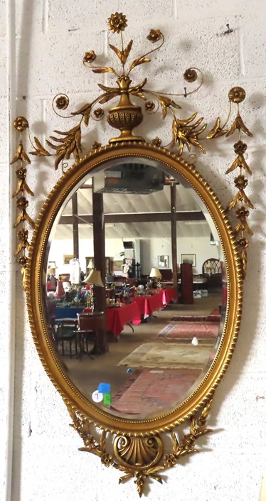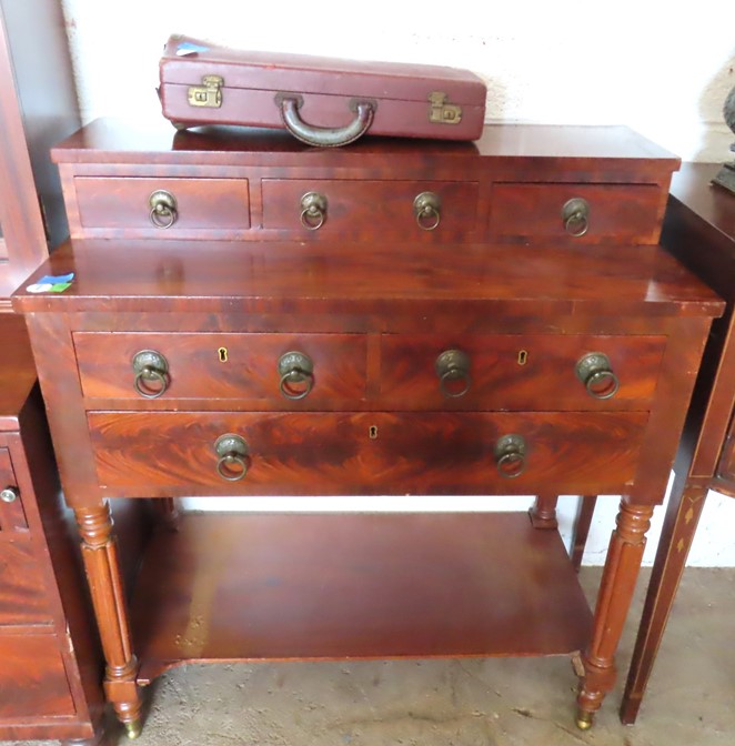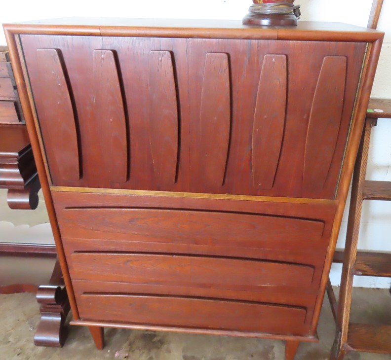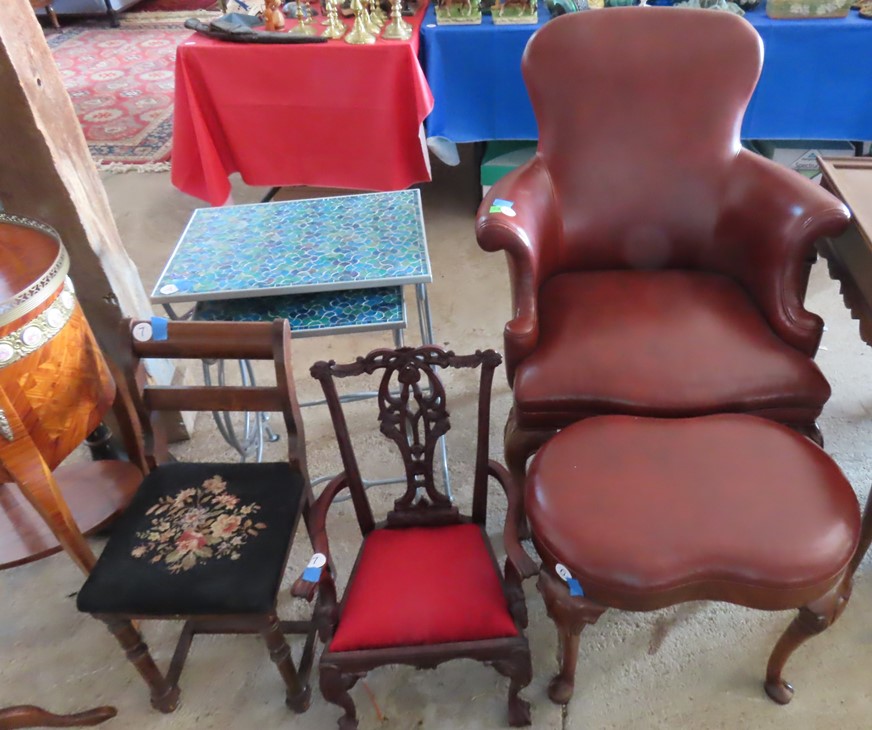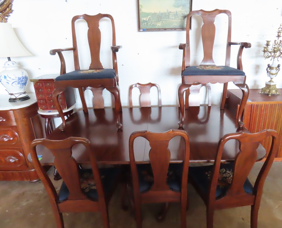 FURNISHINGS: Phenomenal large size stained glass panel; Ornate clock and candelabra set with faun figurines; Henkel Harris serpentine front buffet with string inlay; Henkel Harris mahogany table and 8 chairs; Stunning marble top hall table with scenic medallions and lots of decorative accents; Oriental style sofa table; Set of 6 Baker chairs; Tremendous old secretary with glass door bookcase top; Step-back buffet; Leather chair with shaped ottoman; Wonderful round side table with brass detailing and medallions; Wonderful MCM credenza; Mid-century Modern chest of drawers (pair); Great old step-back open hutch with old paint; Vanity; Empire hall table with mirror back shelf; 4 drawer chest; Ethan Allen sideboard; Corner etagere’; Step-back Oriental motif china cabinet; Nice pair of leather chairs with nail-head trim and footstools; Kidney desk; Circular desk with gateleg extensions; Carved trunk; Old wooden bench; Drop side sewing table; Glass display case with top opening; Bullseye mirror with eagle topper; Aaron Willard, Boston Grandfather clock; Good old chest of drawers with glove boxes; Marble top dresser with carved pulls; Butcher block; Chest on chest by Century Furniture; Decorative stepstool/plant stand; Dining table with 6 chairs; Armchair; Drop-side end table with Belleflower inlay; Marble top table; Footstool; Small chest; Needlepoint chair; Queen Anne footstool and end table; Wooden box with old green paint; Pair of Oriental chairs; Sconce pairs; Two tier table; Inlaid stands; Old 3 drawer chest; Headboard; Nightstands; Lowboy with ball & claw feet; Nice pair of tan leather club chairs with nail-head trim; Metal floor lamps; Old wooden folding seat set; End table; Oval banded edge coffee table; Fern stand; Corner chairs; Blanket box; Ceramic umbrella holder; Silver chest; two tier table with beaded edge; Small cabinets; Small table with brass railing; Rotating display cabinet; Gaming table; Child’s chair with needlepoint seat; Tile top nesting side tables; Children’s seat; Small table with pie crust edge; Gilt framed oval mirror with floral detail; Arched mirror; Nice pair of Oriental ceramic table lamps; Oriental vase lamp; Stand ashtrays; Umbrella holder; Room screen; Library chair/stepstool; Table with needlepoint top under glass; Trunk; Coffee table; Clocks; Small tables; Basket; Decorative suit of armor; Dining chair pair; Oriental cabinets with brass; Floor lamps; Old medical sterilizer cabinet; Stained glass panels; Floor globe; Good Oriental rugs and carpets; Fine round mirror with eagle topper; Gold framed wall mirror; Apothecary chest; Triple section brass framed wall mirror; Leaded glass shade palm tree lamp; Mirror in old window frame; More nice mirrors; Ginger jar lamp; Lots more nice lamps; Mantel clock; brass ribbon sconces; Cherub wall candleholder; Decorator accents; Old wall lantern pair; Outdoor furniture and much more!