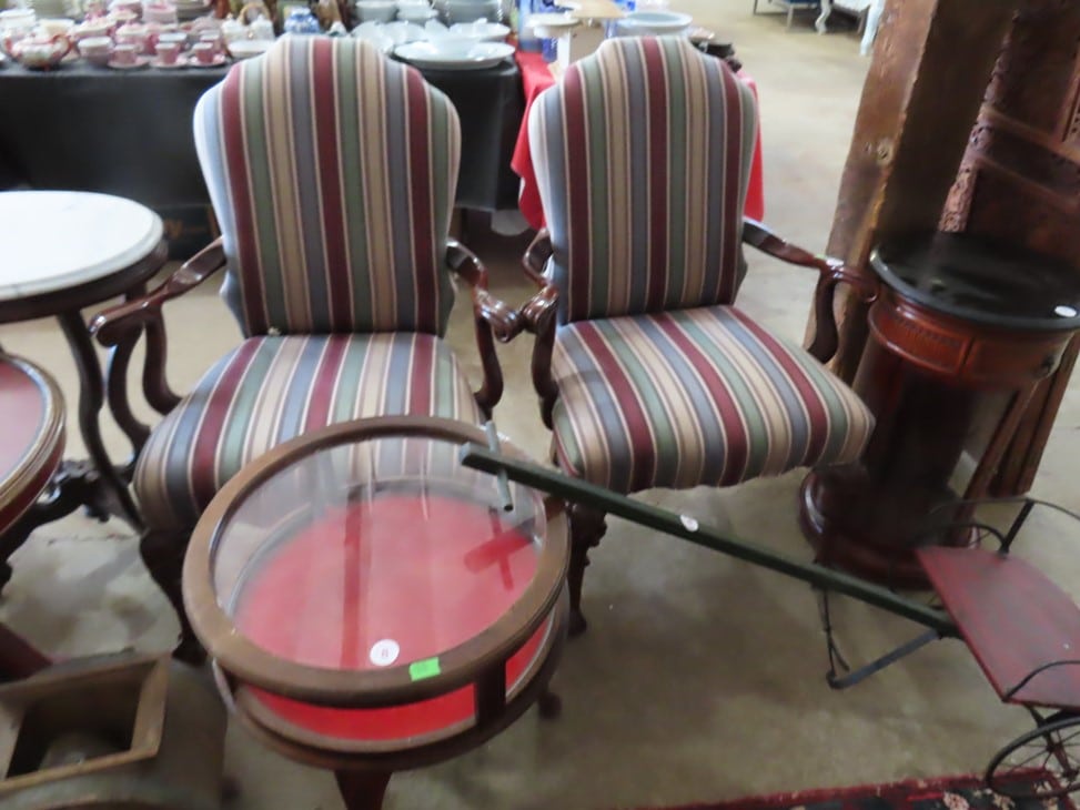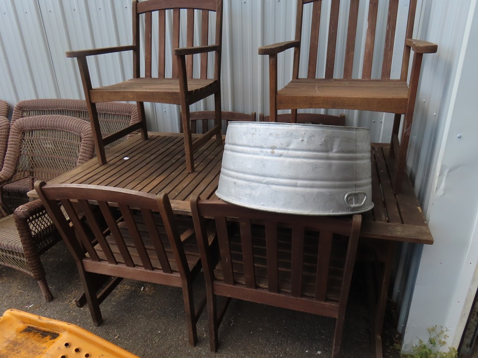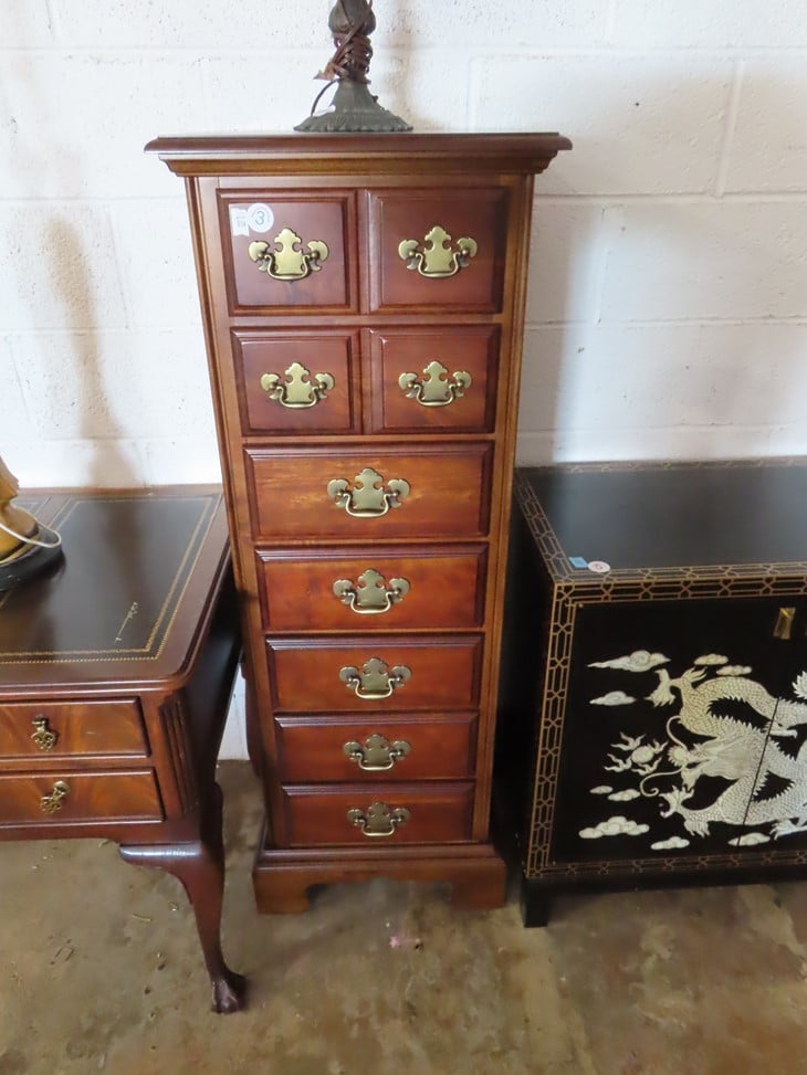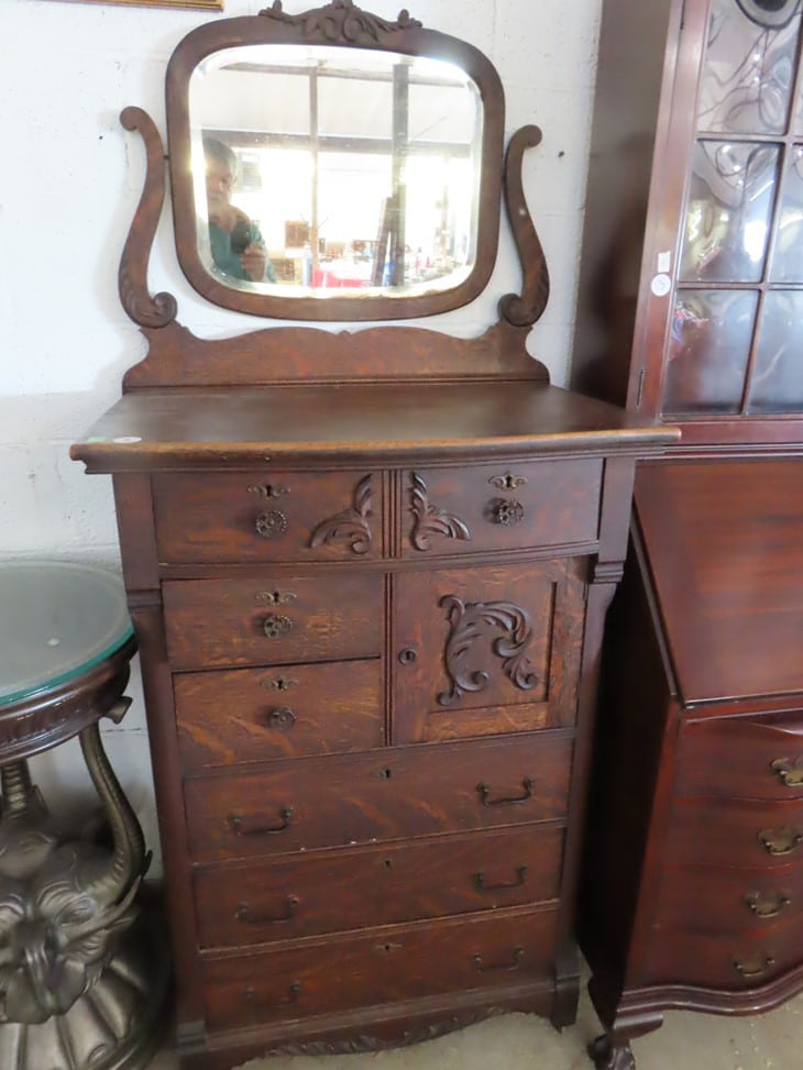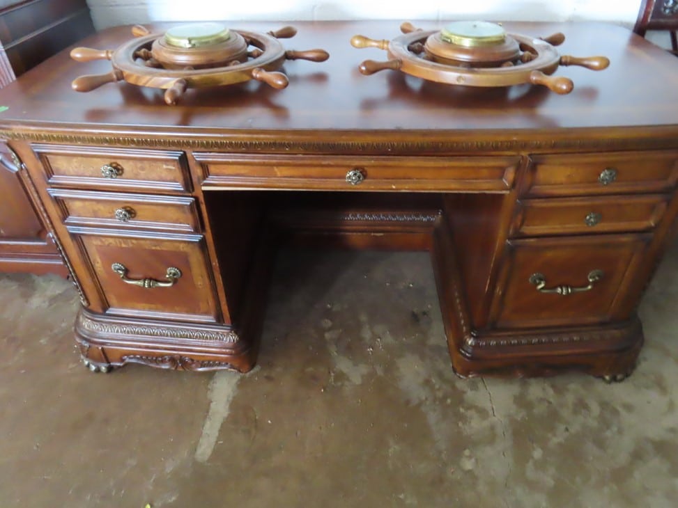 FURNISHINGS: Wonderful pie safe with top drawer; Magnificent over-sized china cabinet; Really nice old dry sink; Fine server with great veneer patterning; Old kitchen Hoosier with canisters; Grand desk with claw feet; Lingerie chest; Chinese cabinet with 5-toed dragon decoration; Good old jelly cupboard; Marble top petite washstand with backsplash; Imposing floor mount full length mirror; Pennsylvania Classics cherry buffet with pull out; 4 poster rope bed; King headboard; Old tall dresser with cradle mirror; Parlor chair; Pair of Chinese motif chairs; Blanket box; Arhaus dresser; Glass top side table with 3 elephant head base; Really nice chest of drawers with brass accents; Oriental motif bench; Corner china cabinet with beveled glass doors; Substantial executive desk; Multi-drawered server; Tabletop screen; Buffet with distressed paint; Blue velvet & chrome easy chair; Oriental cabinet with inlay; Modern buffet with lots of detailing; Half round cabinet with carvings; Grandfather clock; Round front corner cabinet; Cylindrical curio cabinet; Secretary with broken filigree arch; Blanket box with brass; Nesting tables set; Stressless ottoman; Drop-side 2 drawer end table; Chinese medallion vase; Floor lamp; Drum table with leather top; Decorated Drum cabinets; Pair of leather recliners (3 sets); Marble top dresser; Serpentine front buffet; Drop front desk; 5 piece bedroom set (chest, dresser with triple mirror, nightstand pair); Bed with shaped headboard; Bombe’ shape nightstand pair; Dining table with leaf & chairs; Upholstered armchair; Stepstool; Hall table; Inlaid tray table; Drop side end table; Padded bench; Turtleback table; Set of white bar seats; 2 level tea cart; Inova Mount Vernon Hospital chair; Captain’s chairs pair; Display end table; Heavily embellished banded edge table; Inlaid tables; Leather seat chairs; Sofa table; Curved back bench; Trunk; Lots & lots of small tables; Marble top table; Crystal chandelier; Cedar chest; Pair of theater recliner seats; Matched pair of armchairs; Display table; Full Height screen; Pedestal table; Rocking chair; Umbrella holder; Leather executive office chair; Another nice office chair; Farm table with 6 chairs; Ship’s wheel clock and barometer set; Candlesticks; Teak patio table & chairs; Patio sets; Venetian glass wall mirror; Leaded glass shade table lamp; Tremendous pair of yellow ceramic table lamps with oriental figures; Crystal table lamp; Parlor lamps; Pair of table lamps with mirrored sides & shaped shades; 4 panel screen; Elephant base lamp; White pierced side garden seat; Hexagonal garden seat; Fine Oriental rugs, carpets & runners; Ceramic clock; Mantel clock; Decorator accents; Metal birds birdbath; and much much more!