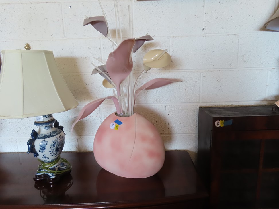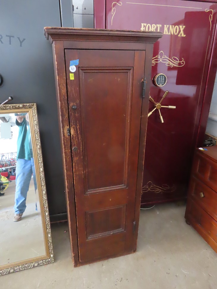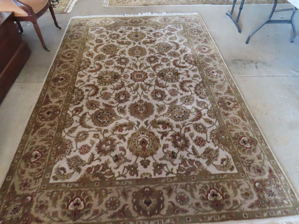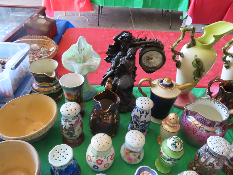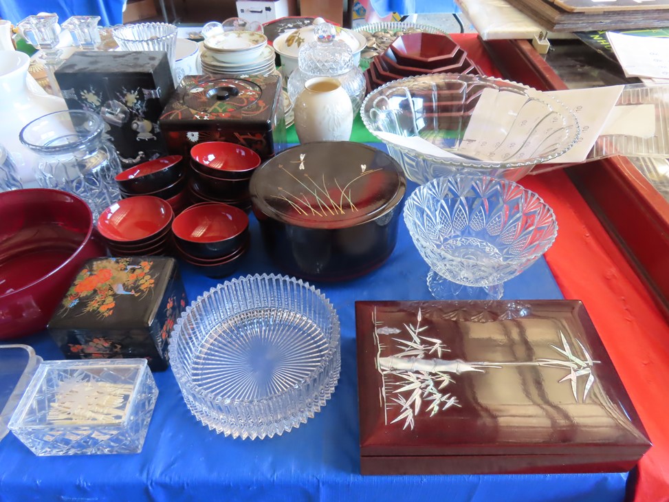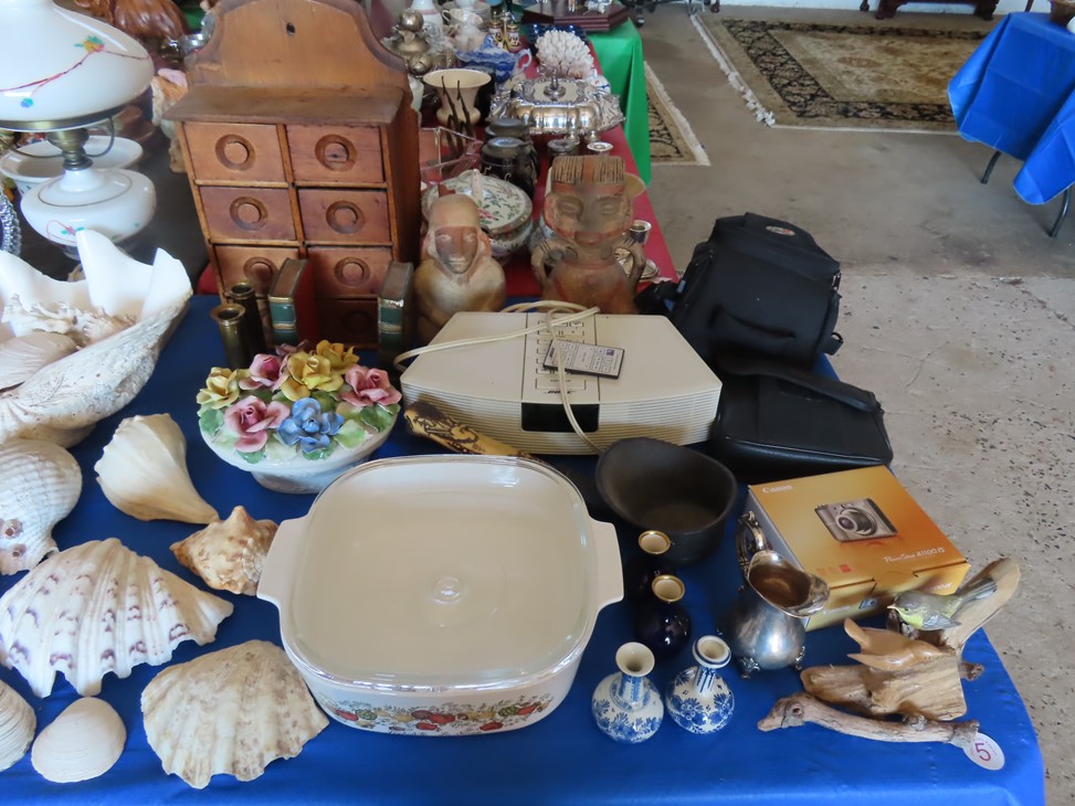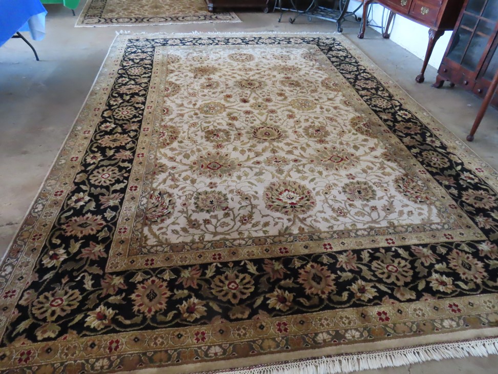 FURNISHINGS: Wonderful 8 pane sliding glass door bookcase with bun feet, broken reeded columns & more details; Striking hall table with paw feet, mirror back lower shelf and metal embellishments; Fine old 6 pane glass door bookcase; Bowfront 6 drawer buffet with cabriole legs; Modern dinette set with metal, wood and tile top table, 4 chairs; Industrial design high top table and 2 stools; Broken arch high boy with final; Good old lift top desk; Flip top table/settee; Another nice corner display cabinet; Serpentine front 8 drawer dresser; Double leg dining table with bench and chairs; Oak cabinet; MCM armchairs with red upholstery; 3 drawer chest with wooden leaf pulls & double glove boxes; Grandfather clock with visible pendulums; Large dining table with leaves and 8 chairs; Server with distressed paint finish; Corner curio cabinet with broken arch & filigree details; Dining table with 6 chairs; Glass shelf curio cabinet; Chest on chest tall dresser; 9 drawer chest; Corner cabinet with leather look panels; Oval dining table with 6 chairs; Fireside cabinet; Large wall mirror; Marble top coffee table with distressed paint base; Oriental trunk; Firkin on stand; Rush seat bench; Marble & metal side tables; Child’s rocking chair; Plant stand with marble top; Display cabinet; Good old small trunk; Pair of nightstands; Crystal & brass table lamps; Dresser with mirror; Parlor lamp; Turtle lamp; Leather sofa and chair with carved wooden frames; Nice pair of pedestal end tables with leather tops; Pair of white distressed surface nightstands; Lingerie chest; Toy chest; Small washstand; decorated oval cabinet; Camel statue with saddle; Set of 4 dining chairs; Floor lamps; Pedestal side table; Pair of bar seats; Hope chest; Pair of stools; Flower shaped table; Room screen; Red leather love seat; Lots of really nice table lamps; Quilt rack; Oval side table; Small chest; Marble top table; Leatherlike ottoman; Blanket box; Half round table; Several nice single chairs; Fine Oriental rugs and carpets; Pair of marble base lamps; Decorative flower arrangement in pink vase; Blue & white Chinoiserie table lamp pair; Brass table lamps; Camel saddle; Cane back office chair; Apothecary tabletop cabinet; Statue with clock; Several nice patio furniture sets and more!