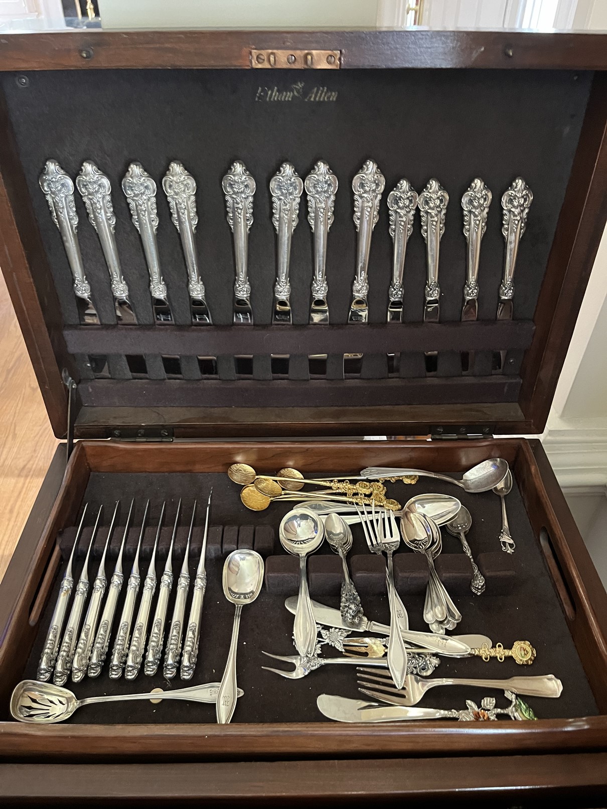 Elegant Fairfax Estate Sale! (June 14-16) Join us for this Fairfax sale filled with fine furniture, furnishings, decorator accessories, and collectibles. Items include lovely living room furniture, elegant dining room furniture, sterling silver flatware and items, great clocks. Do not miss this great sale!