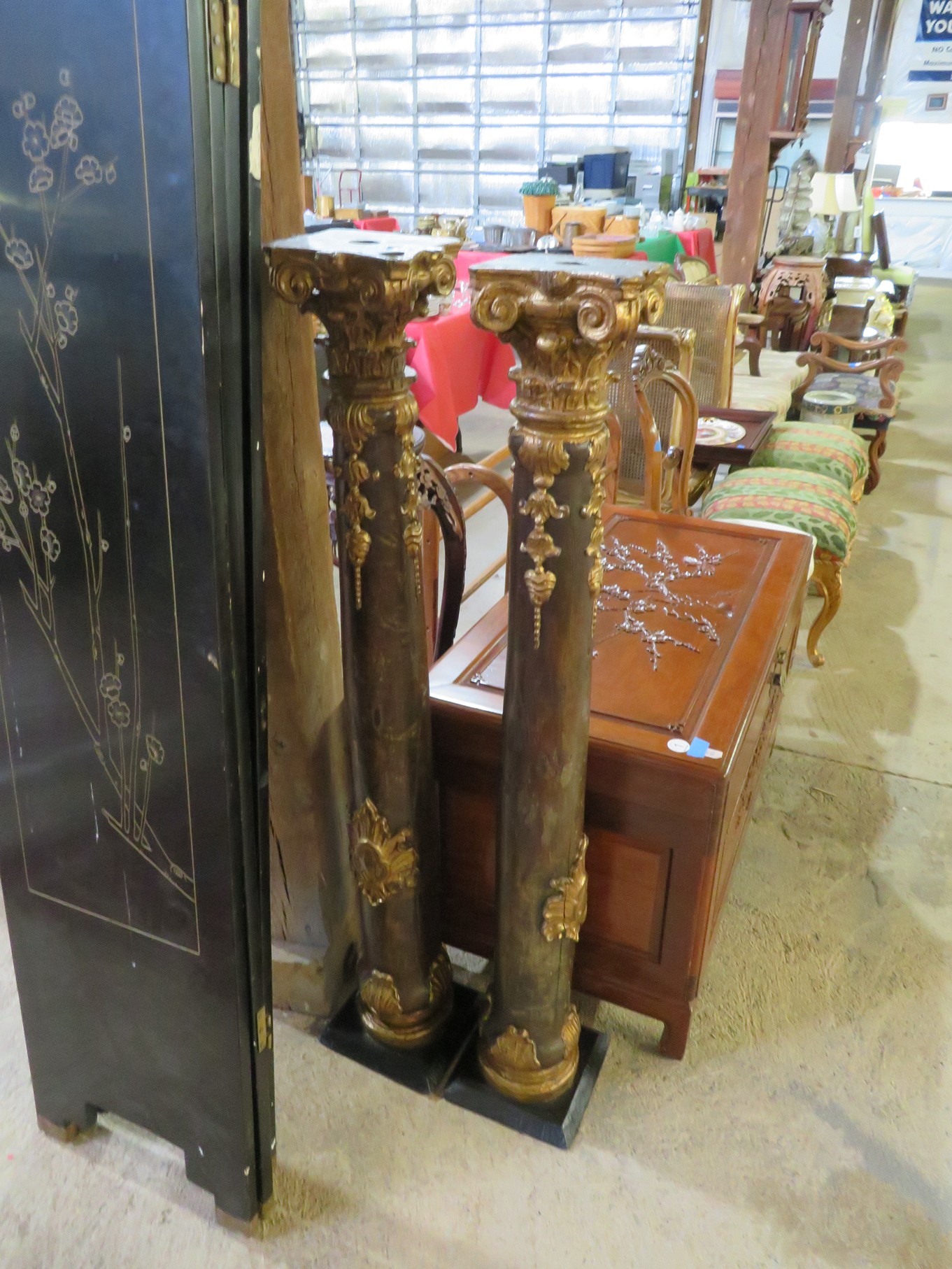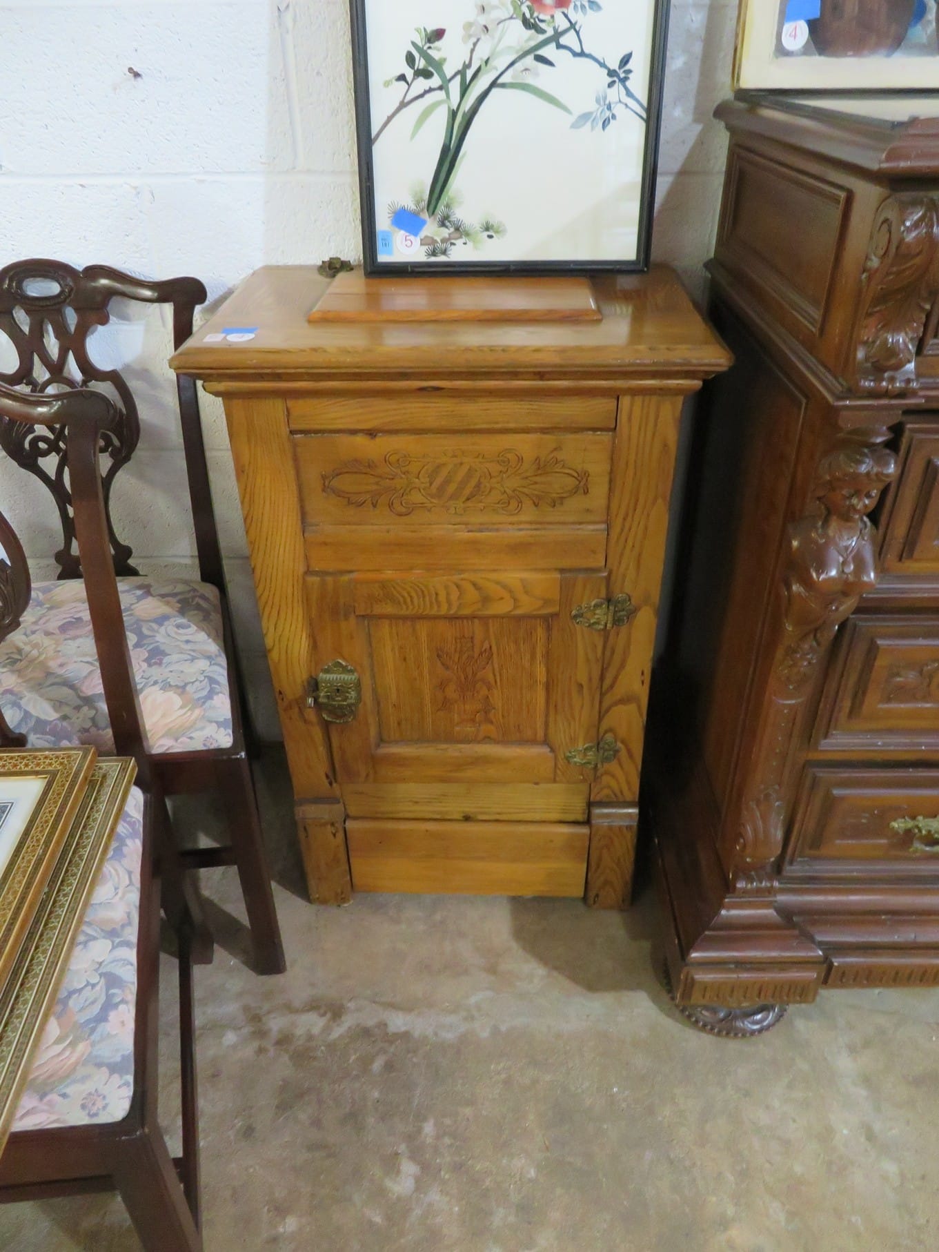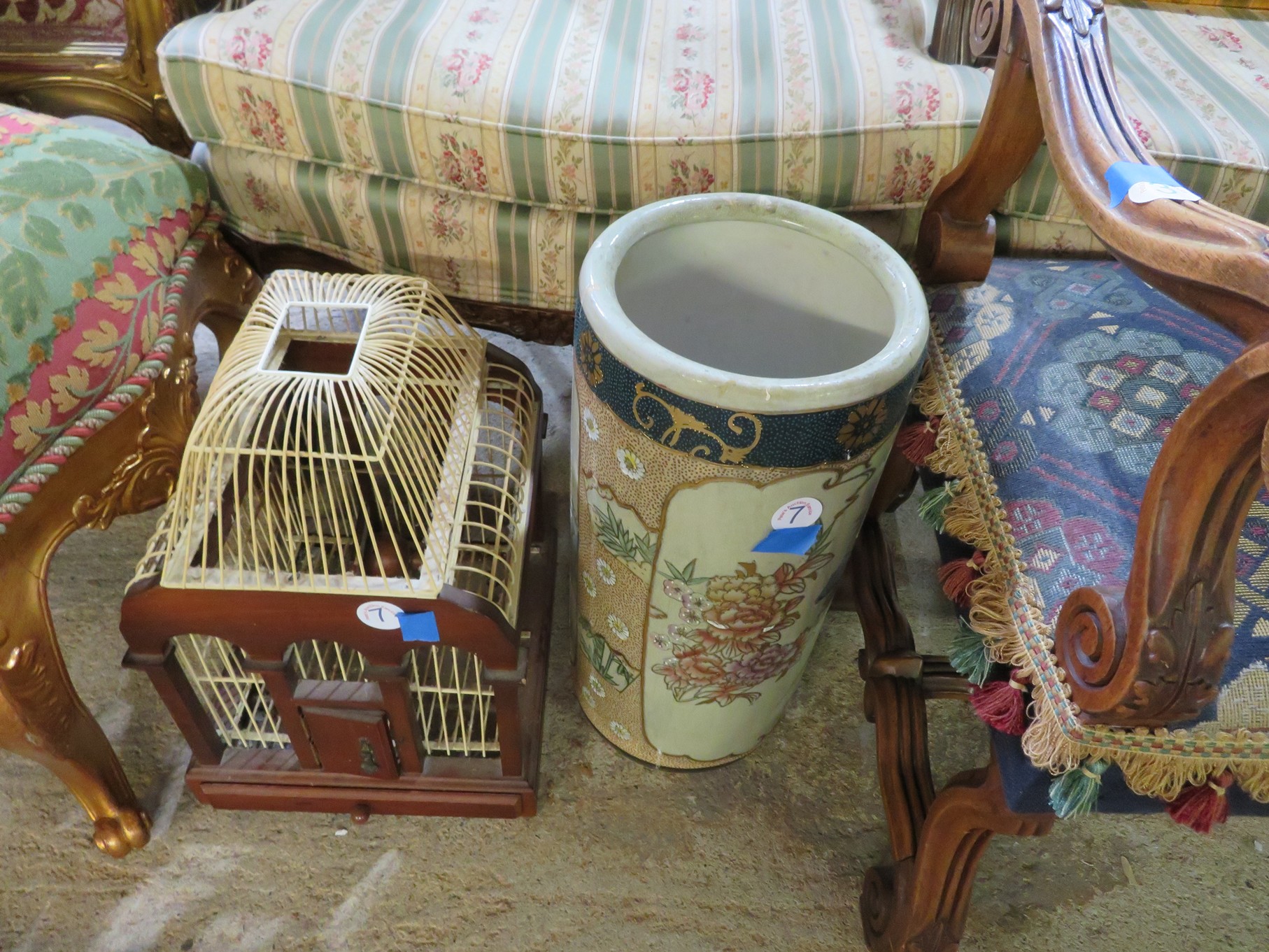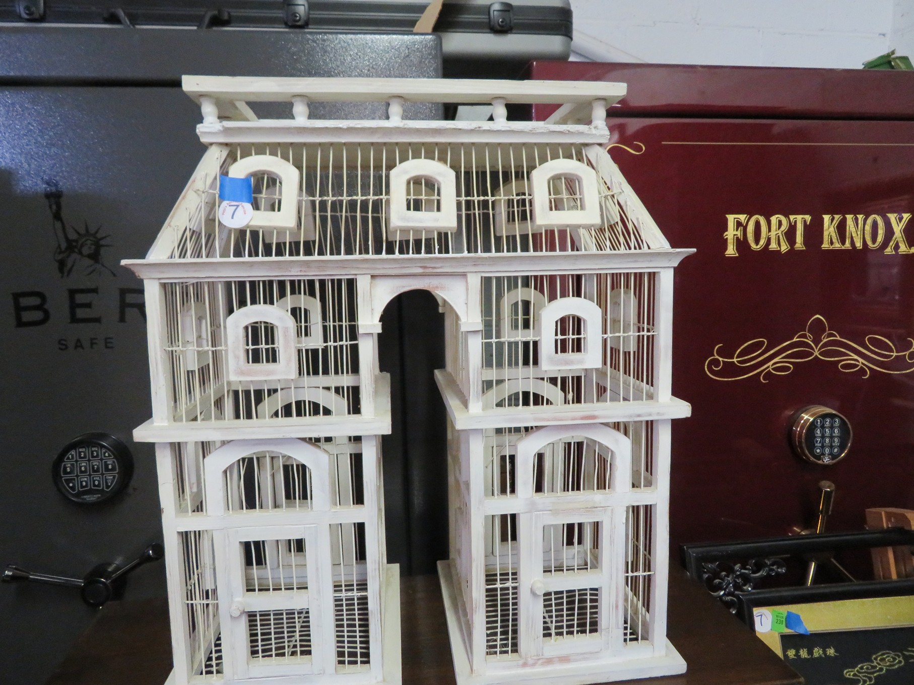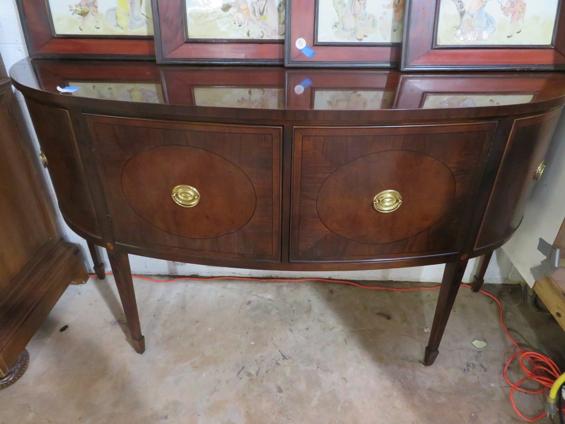 FURNISHINGS: Wonderful curved buffet with nice detailing; Great marble top 3 drawer bowfront chest; Fantastic bird cages on stands; Early chest of drawers; Baker end tables; Harden 4 drawer hall table; Henkel Harris end table; Really nice oak china cabinet; Harden lingerie chest; Fancy vitrine; Oriental inspired buffet; Painted blanket box with Greek mythological scenes; Outstanding dresser with carved busts; Oak ice box; Baker Furniture dining chairs; Marble top bombé front buffet; Really nice Victorian dresser & mirror with marble tops; Golden oak serpentine front dresser with cradle mirror; Large 2 door painted Oriental cabinet; Heavily carved chair; Nice porcelain lamp with medallions; Splendid 7 panel Oriental table screen; Marvelous hanging clock; More fabulous clocks; Tremendous table lamps; La-Z-Boy Leather sofa; Banded edge dining table with 8 chairs & table leaf; Harden bedroom set (4 poster bed, dresser with mirror, nightstand pair); Leather love seat; Oval dining table with 6 chairs; Library table with lots of carving; Nice display cabinet with band decoration; Flip top server; Open bookcase with top drawer; Pair of upholstered armless chairs; Side table with raised top edge; Pair of small footstools; Pair of padded footstools with gold base; Bench with high sides; Quilt rack; Carved blanket box; Room screen; Oak farm table with pressed back chairs; Rolling kitchen cart; Pagoda table lights; Display steps; Stick lamps; Ornately framed mirror; Tea cart; Footstools; Metal lamp with leaded glass shade; Ornate pair of tall plant stands with embellishments; Empire Butler’s chest; Fancy lamp with old fashioned look glass shade; Metal base lamp; Another nice bird cage; Marble pedestal; Umbrella holder; Sofa table; Blue & white table lamp; Marble top low side table; Great pair of white & gold elephant garden seats; Multiple Oriental floor vases; Small stepstool; Wooden plant stand; Small table with drop sides; Set of nesting tables; Hanging display case; Small bird cage; Pair of upholstered armchairs; Padded one seat bench with armrests; Carved plant stand; Marble top plant stand pair; Another nice room screen; Small tables; Fireplace fan; Metal cherub lamp; Hall tree with shelf; Tall dresser; Farm table with woven seat bottom chairs; Gold edge mirror; Some really great table lamps; Display table with twist legs; Small Oriental 2 drawer chest; Florida room 3 piece set with cushions; Dome top trunks; Plank bottom chair pair; Love seat with heavily carved frame; Rattan side armchair set; Another nice pair of upholstered armchairs; Carved box; End table with pull-out; Another nice garden seat; Oriental display cabinet; Lots of great armchairs; Small cabinet with brass railing; Unusual rug with Eastern figures; Nice room size Oriental carpets & rugs; Geometric pattern rug; Runners; Outdoor furniture (Spring is coming!) and much more!