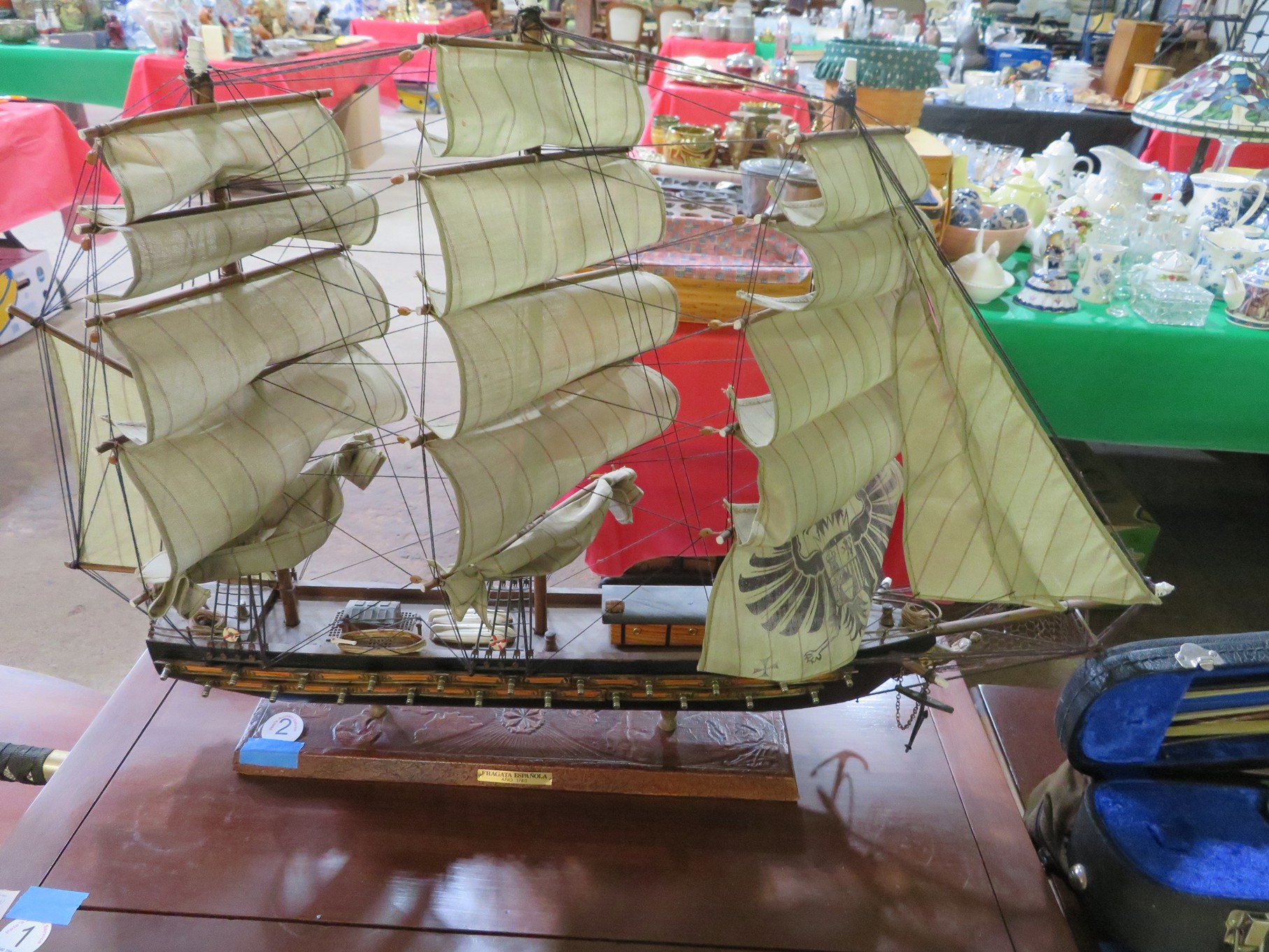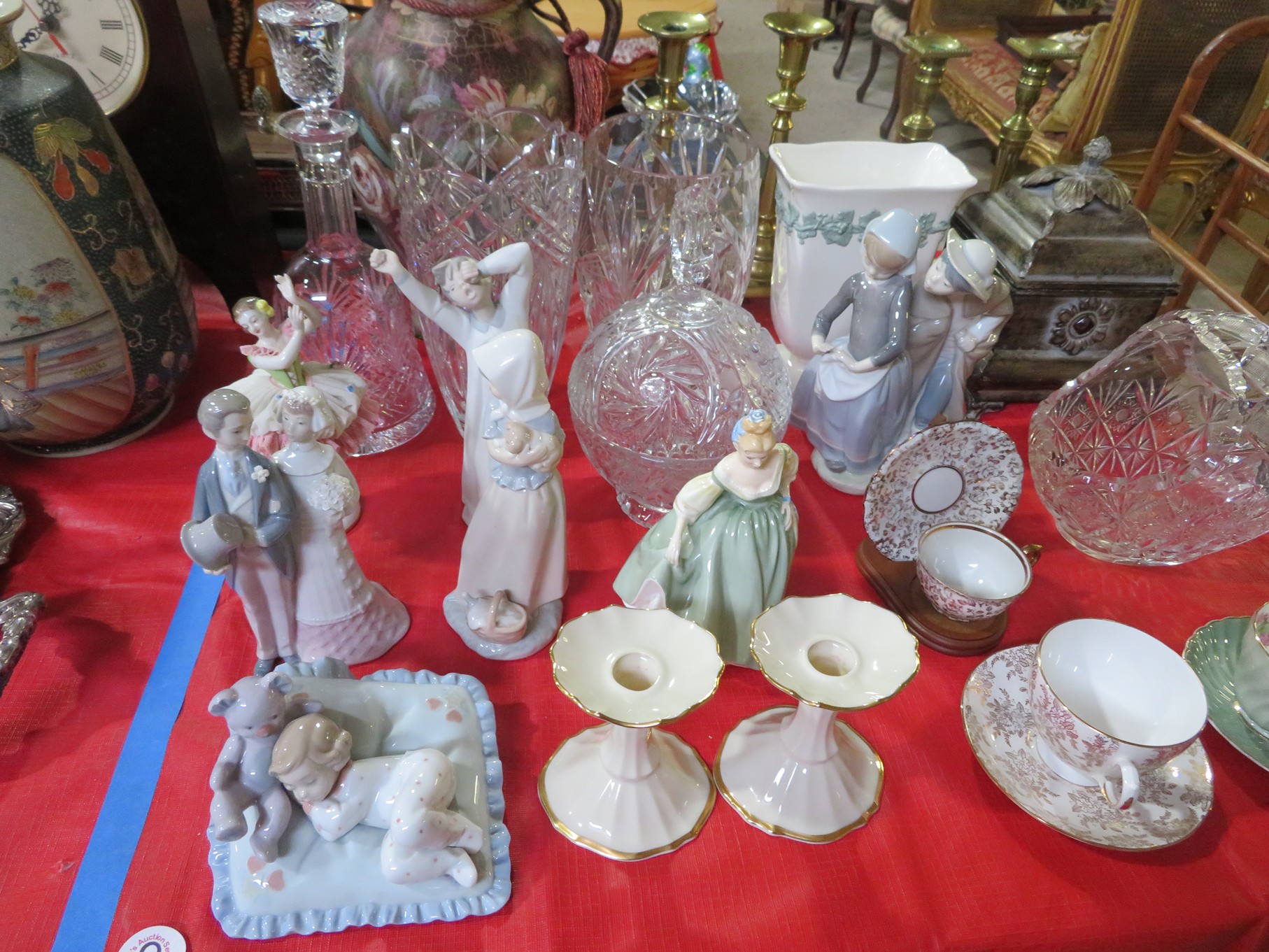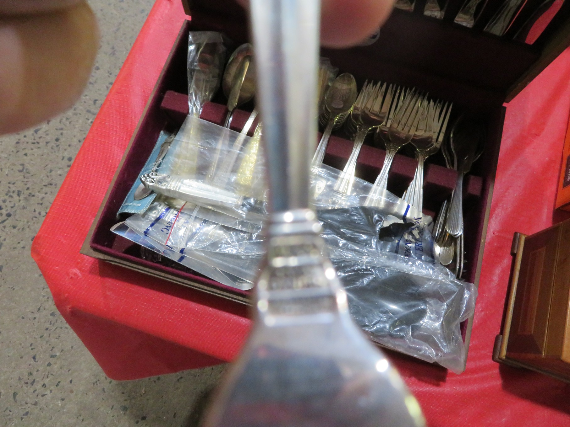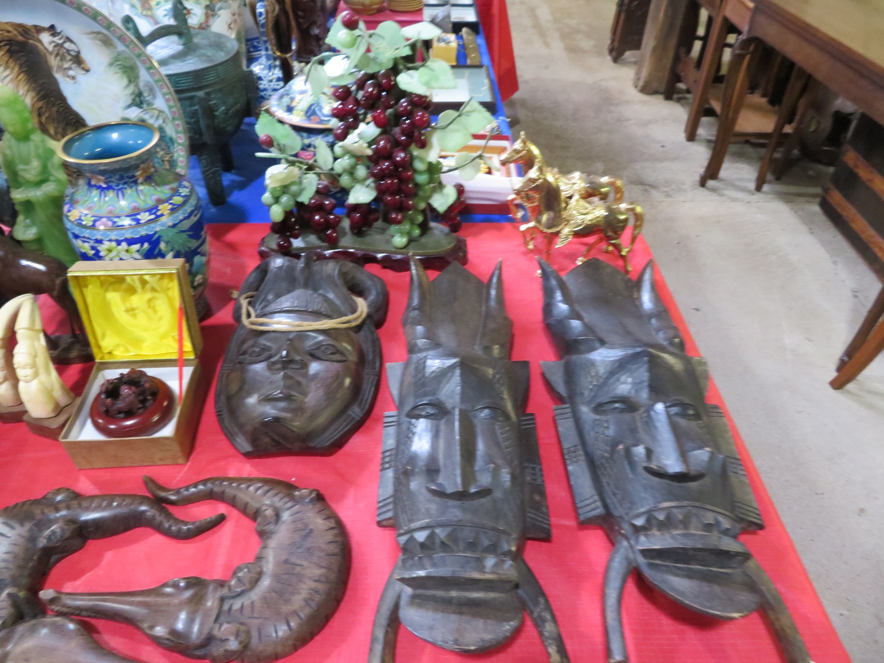 ART & SILVER: Wonderful artwork of courtyard scene; Oriental panels; Ship models; Angel artwork; Set of 4 Oriental plaques; Floral display painted on glass; Nice stained glass panel pair; Country thatched cottage scene; Ship a-sail on ocean; Garden oasis; Fighting chickens art; Pensive can-can dancer picture; Gold embroidered dragons art; Snowy cottage art; Framed porcelain plates; Matched pair of foo dog statues; Rocking horse; Pair of Dutch scenes; Linda Le Kinff signed prints; Sea life artwork; Lost lamb & shepherd print; Harbor scene; Multiple Lladro figurines; Nude statues; Large Hummels; Stone tree; Agate head of Nefertiti; Giraffe & foal figurines; Display egg with stand; Elephant; Russian lacquer box; Turtles; Bust; Buddhas; Lion; Horses; Icon style pictures; Sleeping Buddha; Fighting pheasants; Carved bear with fish; Carved crocodile pair; Masks; Framed Malaysian butterflies & insects; Scrolls; Carved horn; Lots of carved animals; Sterling & silver-plate! Sterling flatware set; Tea & coffee service on tray; Magnificent candelabra pair; Photo frame; Another nice pair of candelabras; Fox cup; Another candelabra & more!