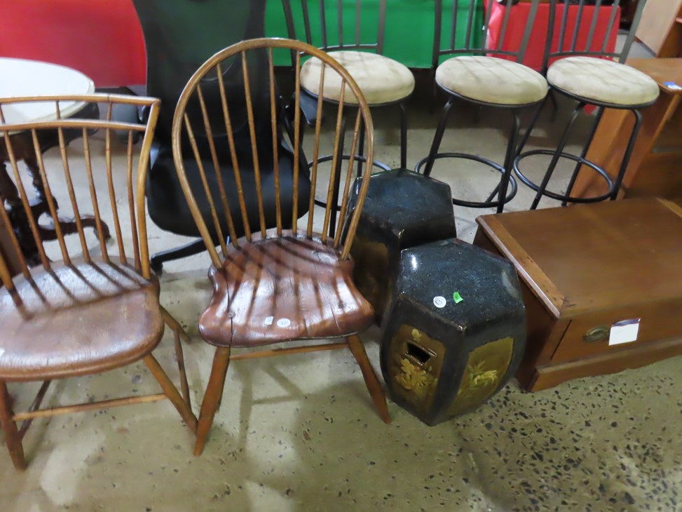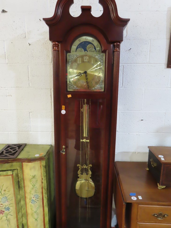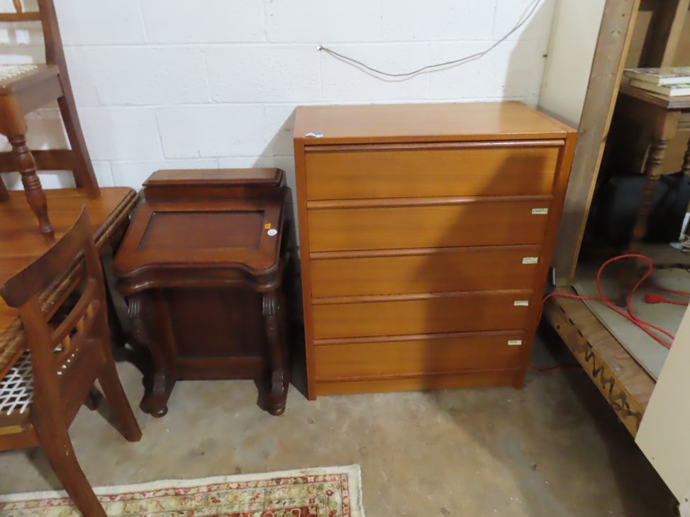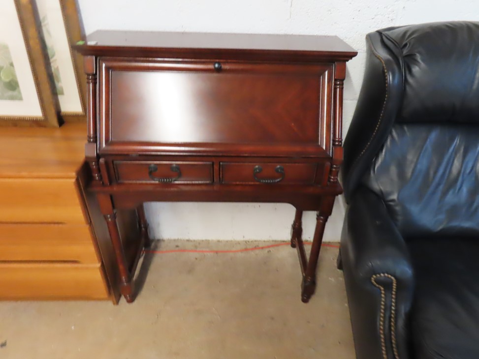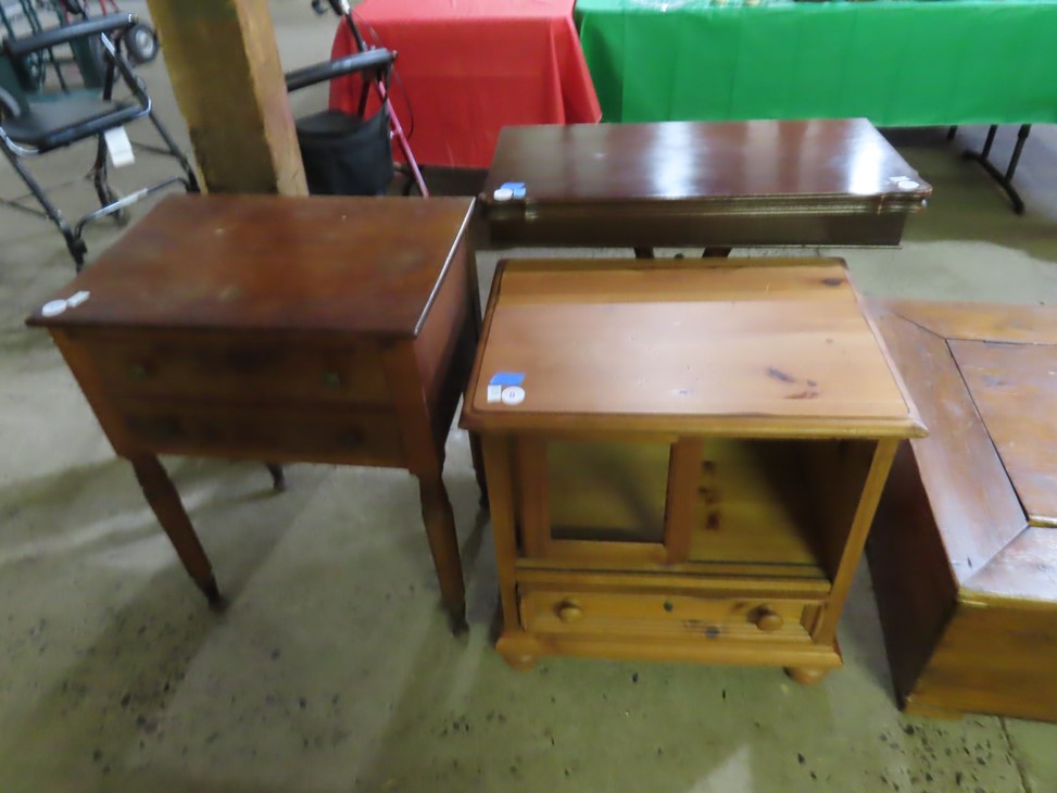 FURNISHINGS: Wonderful map cabinet; 6 drawer Clark’s spool cabinet; Hand crank upright music box with multiple discs; Step-back china cupboard; Dome-top blanket box with drawer; Fantastic dresser with large top and oval mirror in twisted cradle arms; Nice old washstand; Marble top cabinet with painted scene and metal embellishments; Server; Small decorated cabinet; Oak 5 drawer dresser; Nicely decorated buffet; Leather top standing desk; Good old chest on chest; Dining table with 8 Windsor chairs; Marble top table; End table pair; Grandmother rocking chair; Small cabinets; Mirror with tole painted frame; MCM dining table with leaf and 6 chairs; Leather and chrome barstools; Nice Mid-century modern china cabinet with sliding glass doors; Leather easy chairs with nail-head trim; Square dining table with MCM chairs; MCM design chest of drawers and dresser; MCM side tables; Sliding door credenza; MCM file cabinet; Drop front secretary; Grandfather clock with visible pendulums; Server with drop shelf; Nicely decorated & inlaid wooden Geneve music box; Dining table with 8 chairs; Small old desk; Gaming table; Server; 2 drawer spool cabinet; Bedroom set (chest, dresser, nightstand pair); Stained glass panel; Bullseye mirror with eagle topper; Hanging curio box; Old wooden box with dovetail corners; Modern dining table and chairs; Table lamps; Good Oriental rugs; Globe; Hand-painted cabinets; Good old dresser; Large green glass jug; Old radio; Corner cabinet; Painted contemporary server; Pair of white leather chairs; Old child’s trike; Armchair and ottoman; MCM magazine holder; End table pair; Pedestal table; Acoustic guitar with stand; Floor lamps; Rolling cart; Child’s rocking chair; Coffee table; Wall mirror in gilded shaped frame; Lots of occasional tables and chairs; Nice old dough box on legs; Plank bottom chairs; Old drum; Tea cart; Brass tray coffee table; Stressless chair and ottoman; Office chair; Nesting tables; Barstools; Garden seat pair; Wall lighting; Hanging shelf; Birdcage and much much more!