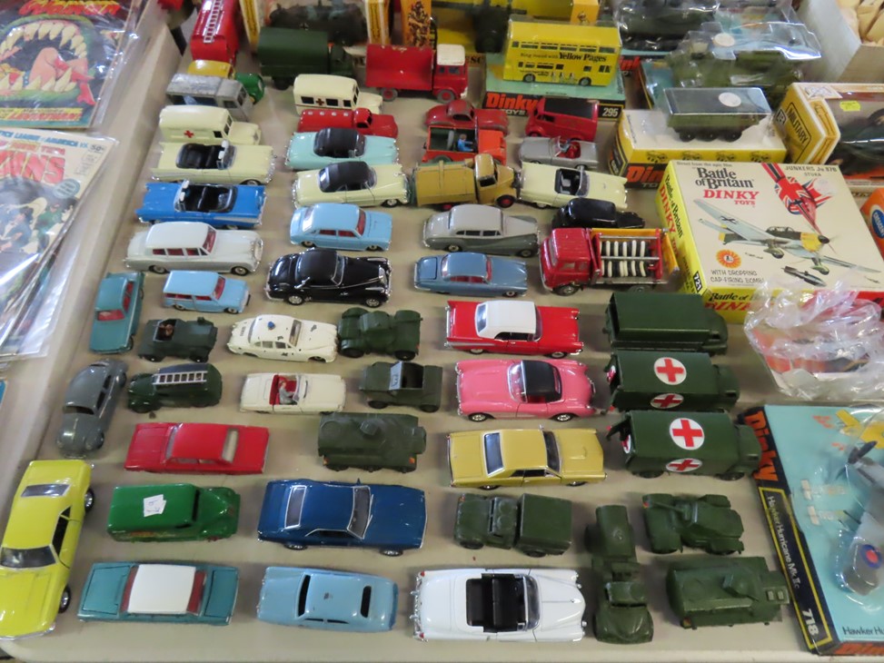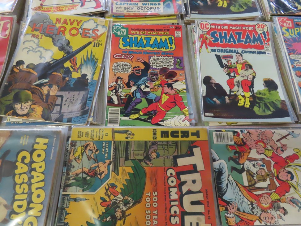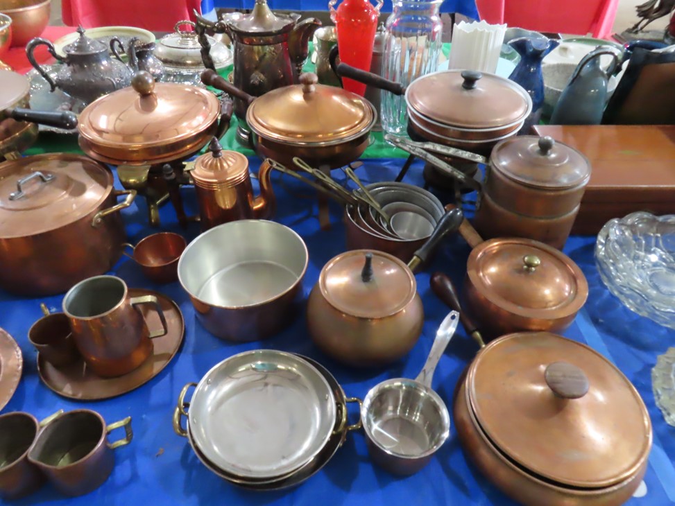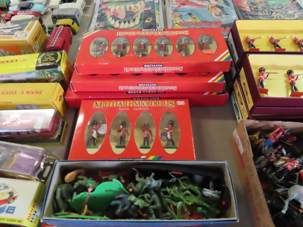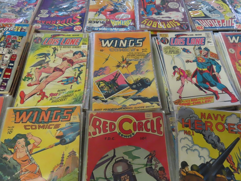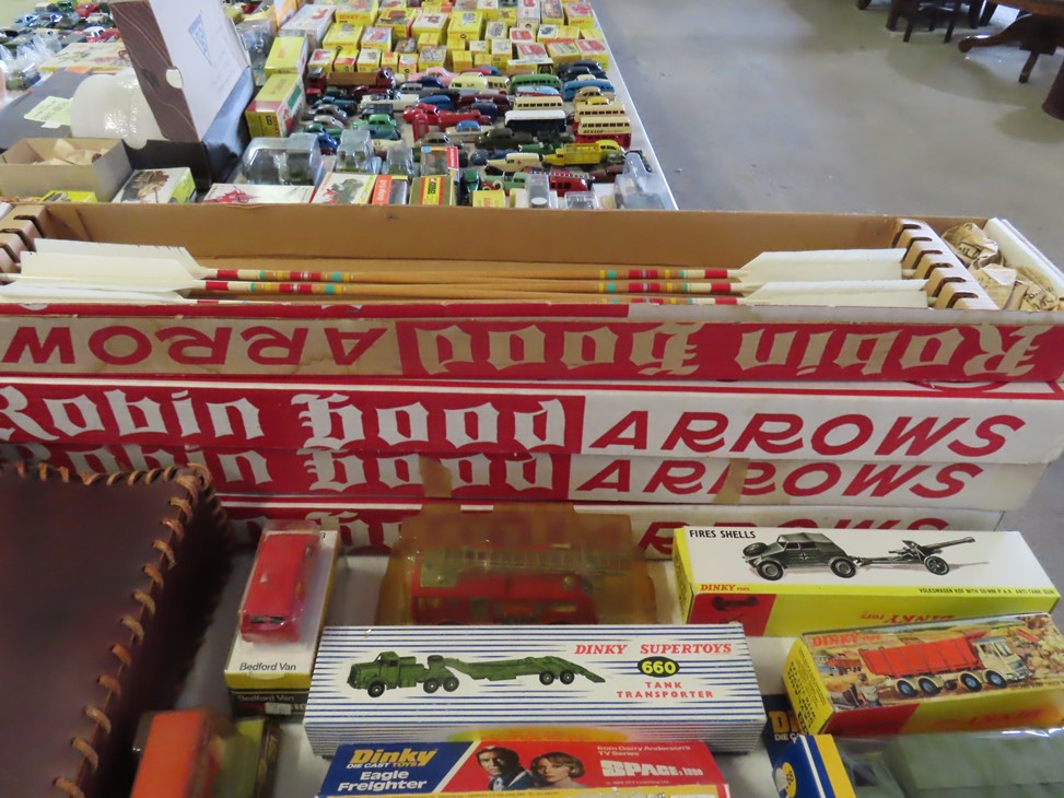 MORE: Huge old church bell; Old Coca-Cola store box cooler; Large Lance vending machine; Old portable cooler; Wooden Coke carrier box; Old cameras; Nikon Kalimar; Wonderful pair of Jumping horse bookends; Saddles; Stirrups; Old salt glaze crock; Oil lamps; RR lanterns; Wooden rolling pins; Pizza peel; Turned woodenware; Sad iron; Old food grinder; Old razors; Fine & costume jewelry; Coins, Currency; Silver dollars; Tables full of copper pots & pans; Tin lined copper bowl; Mugs; Chafing dishes; Large oval covered server; Bed warmers; Copper ham boiler; Painted ham boiler; Nail keg; Painted milk can; English saddles; Numerous wood boxes; Horse brasses; Inkwell; valet tray; Carriage clock; Dresser bottles; Seashells; Terra-cotta wine coolers; Horseshoe candleholder; Stone tree; Enameled acorn box; Old blue jars; Stone serving bowl; Cast iron ham boilers; Metal shelf; Old Comic books! Hopalong Cassidy; Wings Comics; Red Circle; Navy Heros; Lois Lane; Superboy; Supergirl; Superman; Batman; Shazam; G.I. Combat; True Comics; New Teen Titans; Sgt. Rock; Flintstones; Spider-man; Tarzan; Blondie; Archies; Veronica; Jughead; Wonder Woman; Many more 10¢ and 12¢ comic books by the stack! Should be some unresearched treasures here!; Old Toys! Dinky toys with boxes-dozens of Dinky Toys! Corgi models with boxes; Solida; models; Old car models in boxes; Lots of metal toy cars, trucks, buses & fire engine; Hair Bear Bunch & another metal lunch box; Toy Soldiers in sets & collections; Britain’s Toy Soldiers in boxes; Dinky mint road signs; Toy planes; Farm animals, Trees; Signposts, Fences; Robin Hood arrows in boxes; More Great Old toys!; Great old Books on Civil War & Guns! Winchester; Cowboys and the Wild West; Battles and Leaders of the Civil War; Matthew Brady; Abraham Lincoln; Touched by Fire; Steel Canvas; United States Firearms; Lee’s Lieutenants; Weapons of the Civil War; Civil War Collector’s Encyclopedia; A few old guns & much much more!