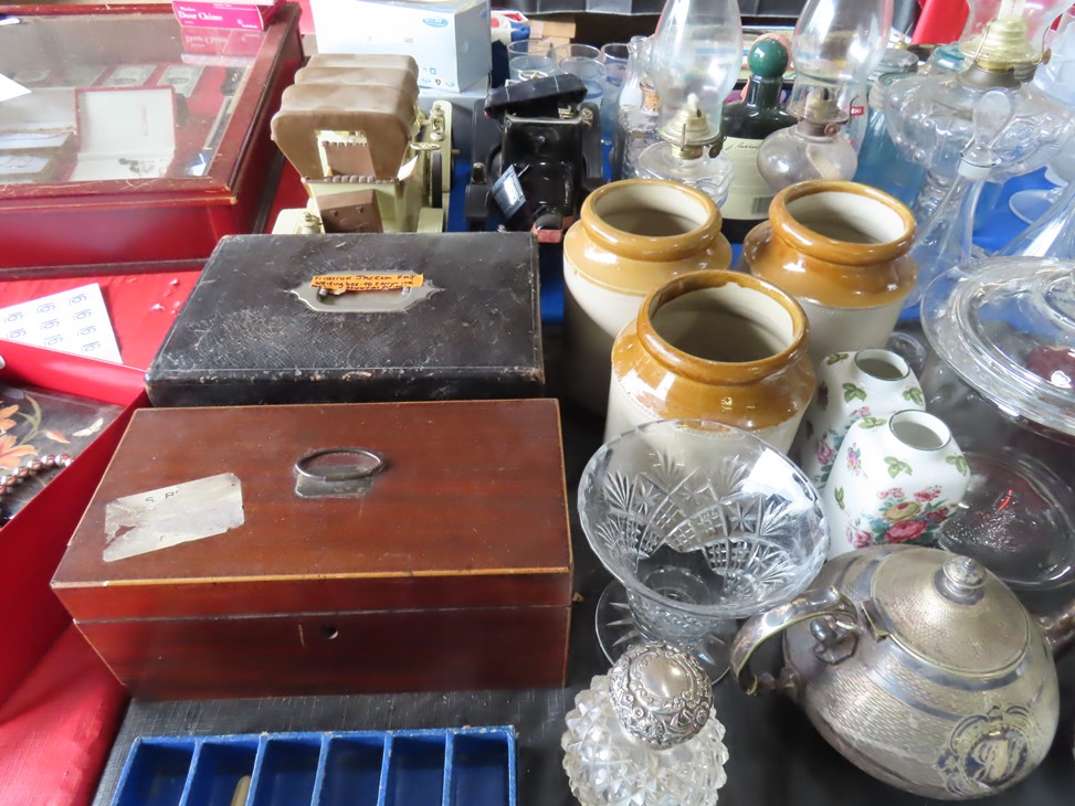 Fantastic selection of antiques, furniture, collectibles, crystal, china, silver, rugs, artwork, tools, and more! Tremendous Box Lot Assortment Outside to Start!