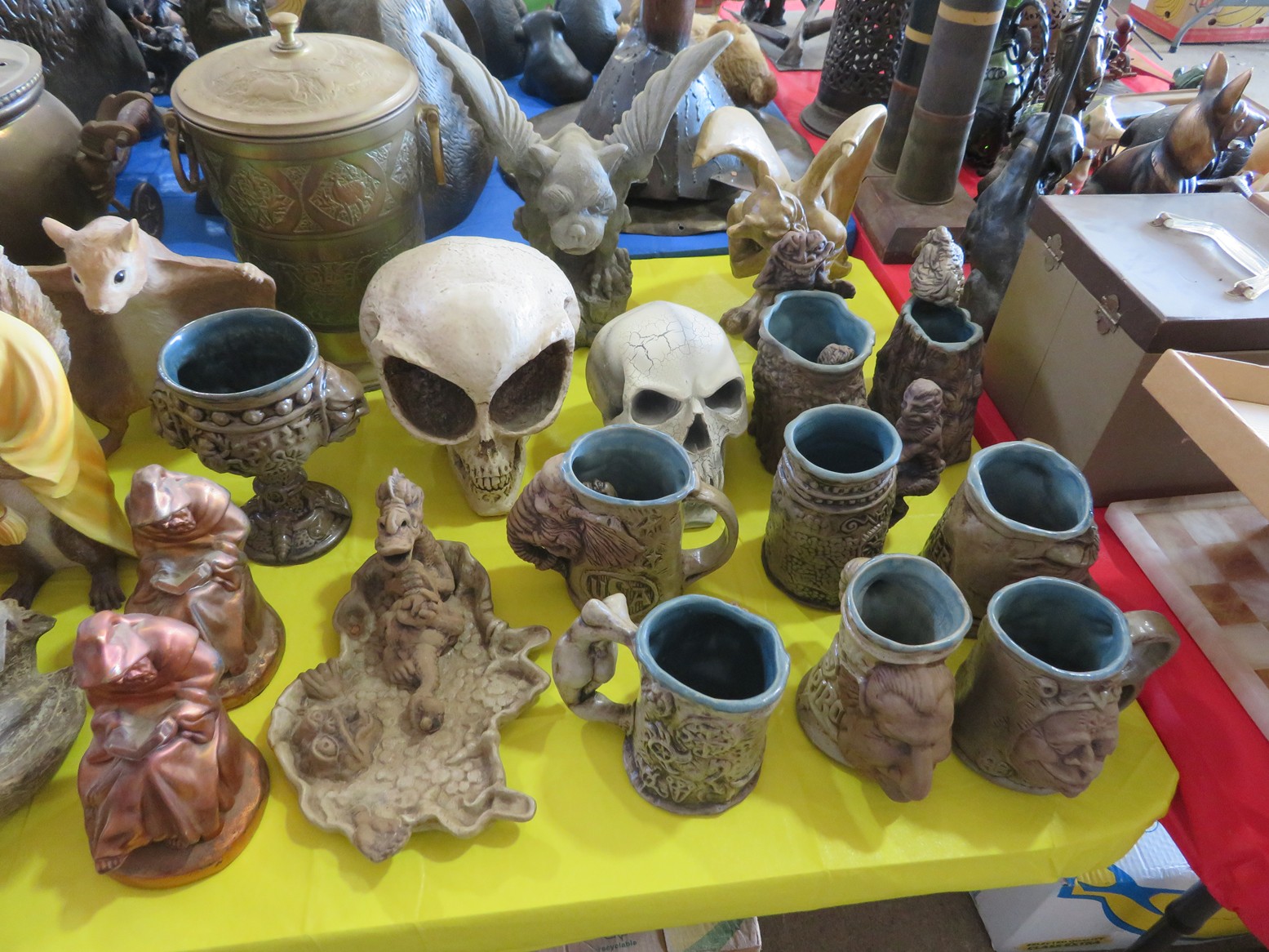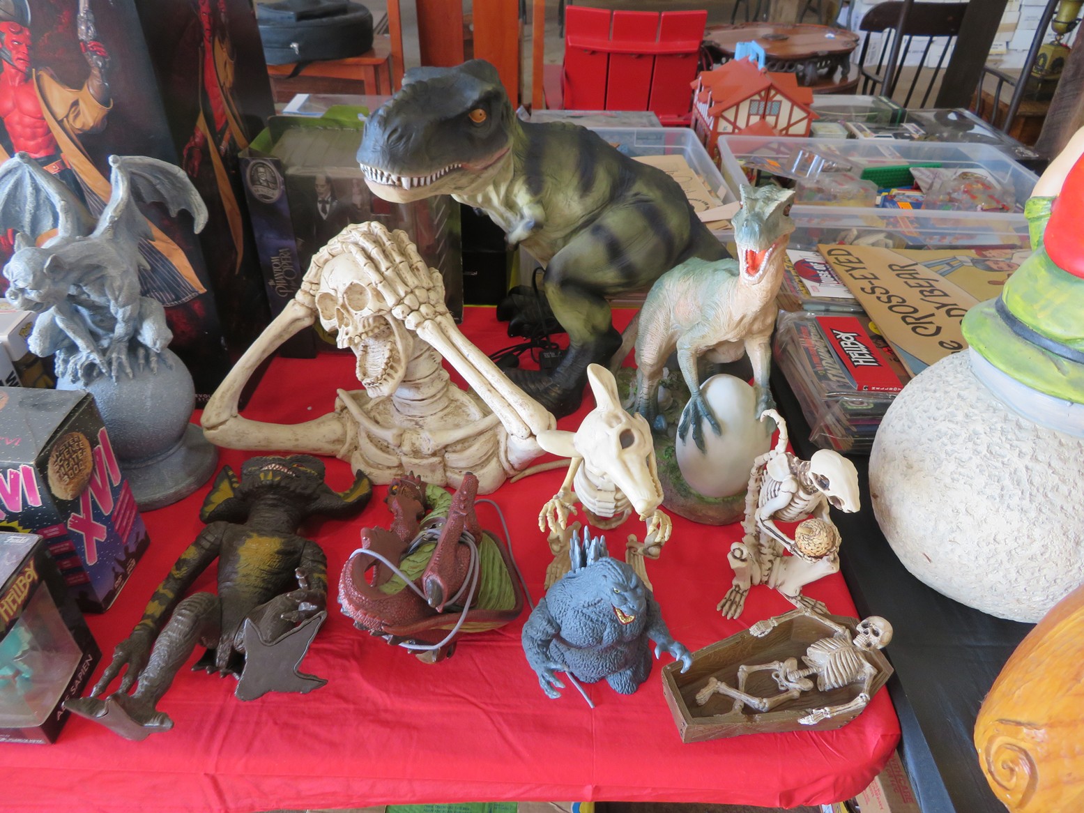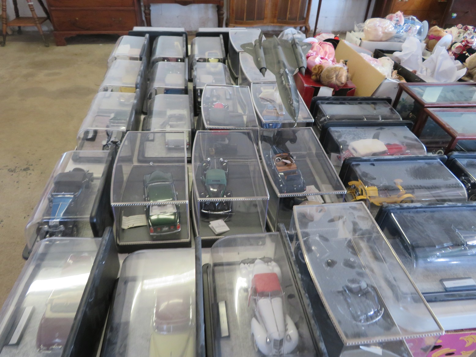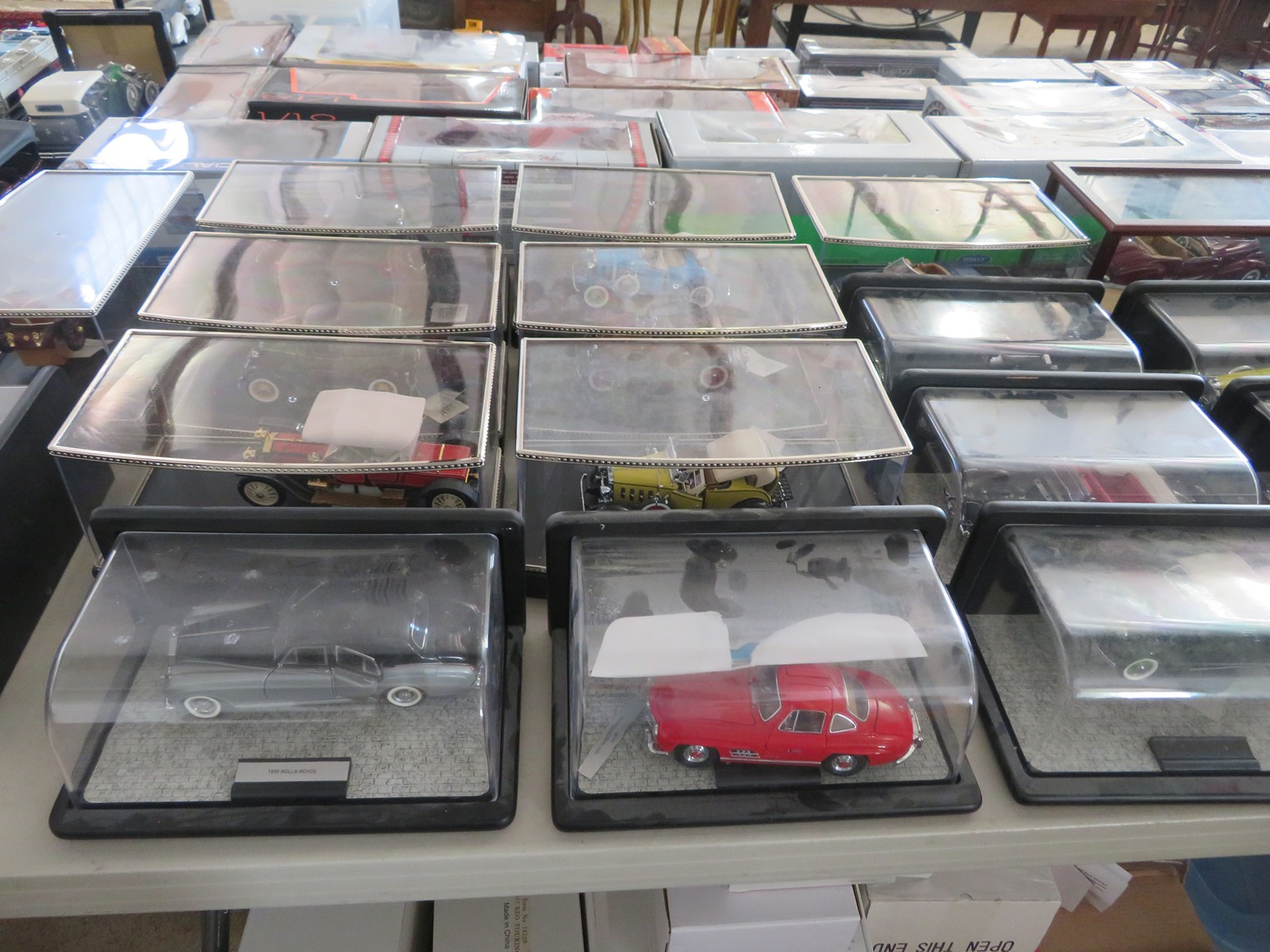 Table after table of CDs & DVDs – all genres, including Blu-Rays; LeCreuset dutch oven; Boxed toys & collectibles; Star Wars Mr. Potato Head; Bad Robot; Aliens; Tim Burton figurines; Scale model cars with inner & outer boxes; Stereoview & Much Much More!