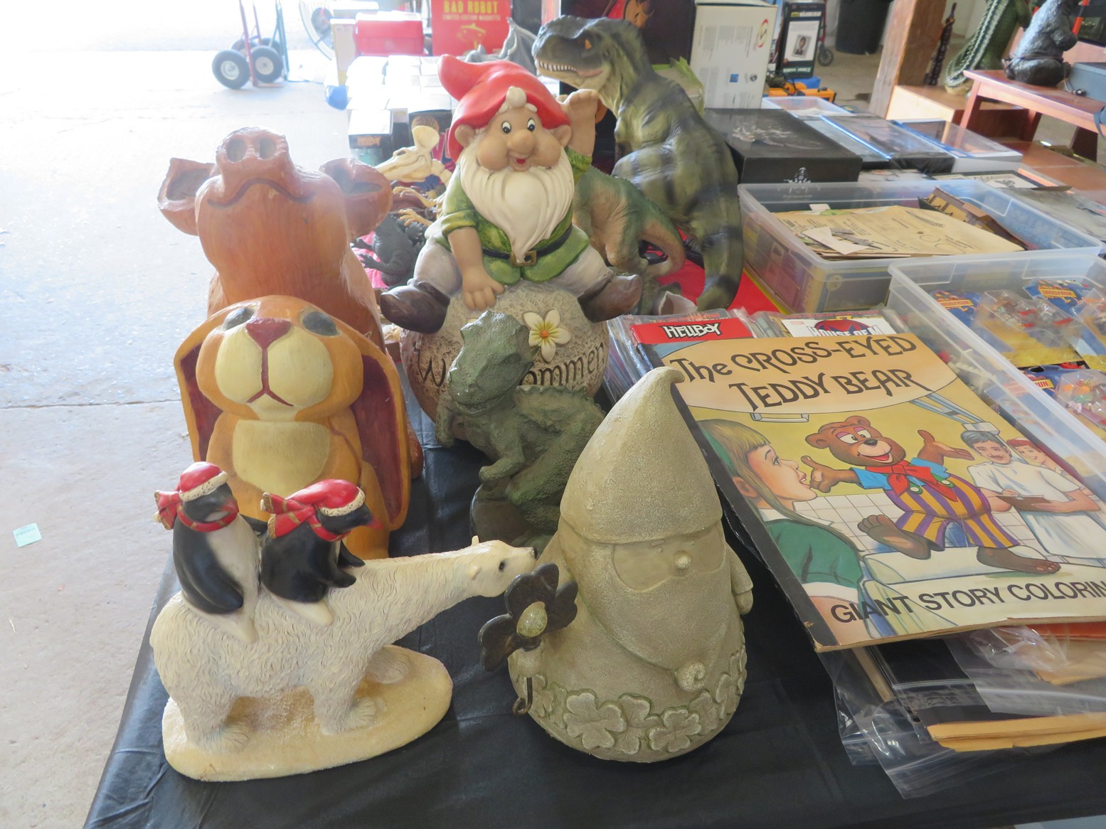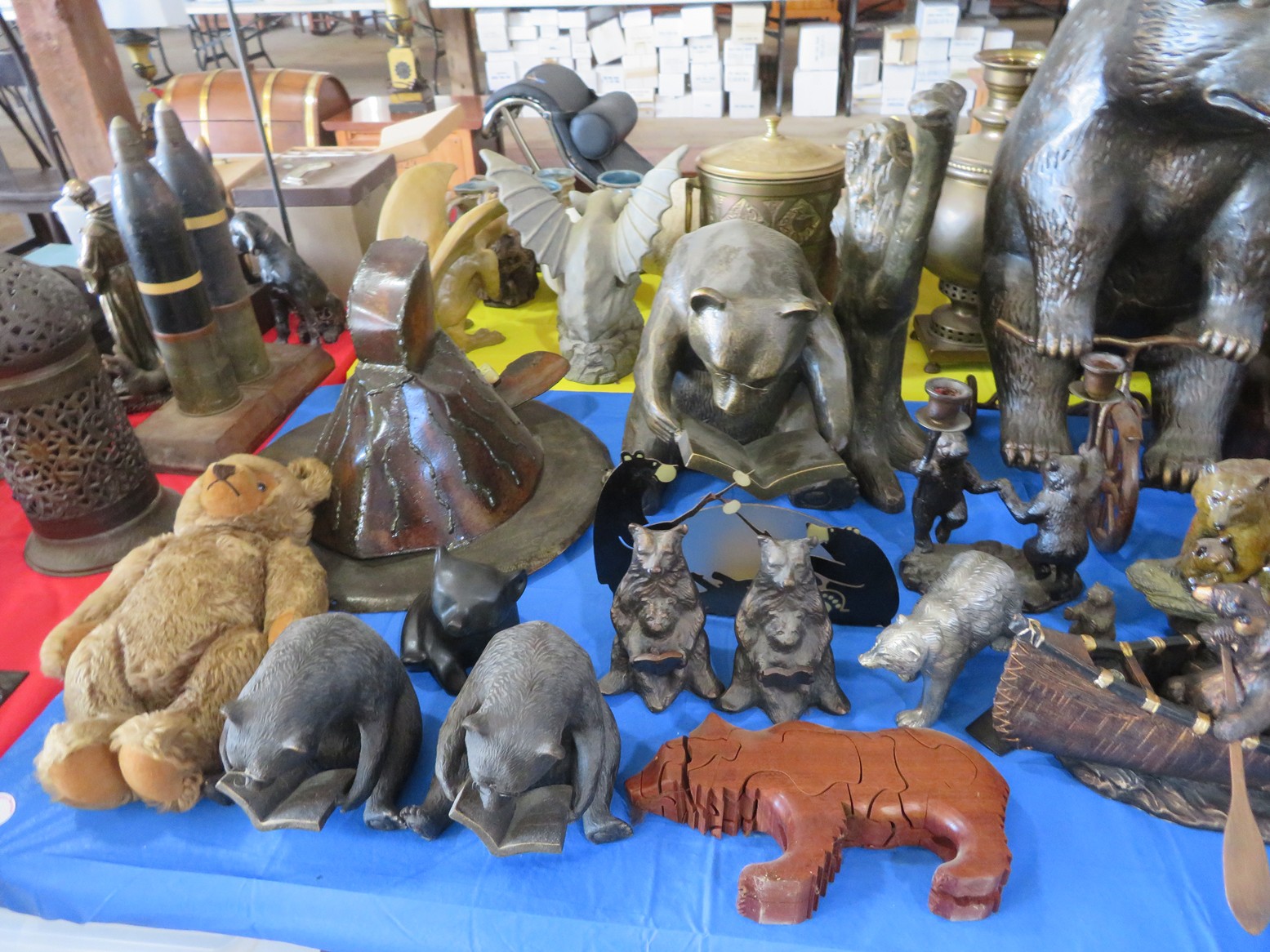 ART: Bear with fish carving statue; Large carved bear on all fours; Dining gator with cutlery; Steinbach nutcrackers with boxes & tags; 30+ Bossuns; Carved heads; Ethnic carvings; Woodpecker; Elephant; All kinds of artworks; Sufi dancer; Angel band; Lots of small figurines;