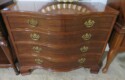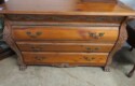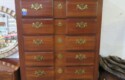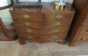 Highboy with nice detailing; Baker bowfront chest (pair); Nice contemporary cabinet; Oak hall tree with inset tiles and unusual round backed seat; Marble inset top display table; Banded edge drop leaf table; End table with pull out shelf; Round banded edge table; Bench; Marble top low round table; Large curved glass side curio cabinet; Bombe chest with dark marble top and painted fruit bowl decoration; Empire gaming table; Corner cabinet; Rush seat ladderback chairs; Pair of green glazed elephant plant stands;