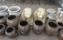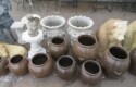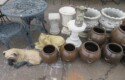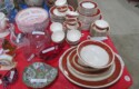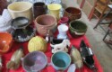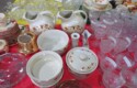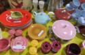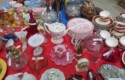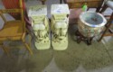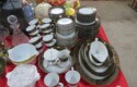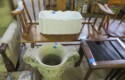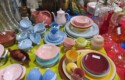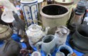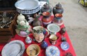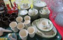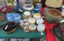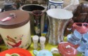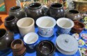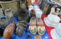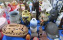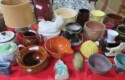 Fine dinnerware sets; Wedgwood; Studio pottery; Oriental ceramics; Colorful chicken statue; Floor vases; Figurines; Creamer & sugar set; Coffeepots; Terra cotta warrior; Pitchers; Stein; Pomegranate; Shoes; Lusterware set; Hen on nest; Wall pocket; Lots of MCM pottery; Batter bowl; Pfaltzgraf; Harker; Goebel monk S&P; Hall Jewel Tea Autum Leaf; Apple ware pottery; Cottage ware; Franciscan; Hummels galore! Capodimonte flowers; Crocks;