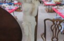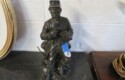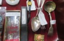 METALS & ART: Sterling & Silver-plate! Sterling flatware set in case MCM design; Sterling jewelry; Gorham sterling Christmas spoon; Sterling shoehorn & buttonhook; More sterling; Silver rim goblets; Brass flatware; Large classical semi-nude statue; Civil War soldier statue; Carousel horse statue; Sailing ship model;
