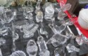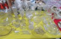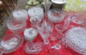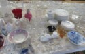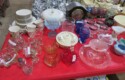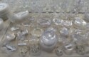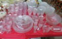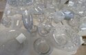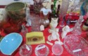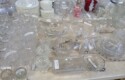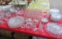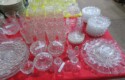 Lots & lots of clear glass animals as figurines, bowls, cups & more; Glass swans; Candlesticks; Crystal bowl; Art glass; Perfume bottles; Glass basket; Fostoria American collection; Ruby cut to clear; Frosted figure; Colored flower frogs; Paperweights; Pyrex bowls; Decanters; Glass baskets; Glass animals; Fenton silver crest cornucopia; Oil lamp; Vases; Moon & Stars bowl; Pitchers; Silver overlay; Lots of colored glass; Cambridge; Depression glass; Goblets; Large set of diamon pattern glassware; Cake stand with dome; Lots of glass shoes; Jamestown glasses; Milk glass; Clear flower frogs; Candlewick; Serving pieces; Candy dishes; S&P shakers; Cake plate; Ice bucket; Refrigerator box and much more!