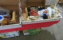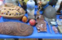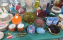Steinbach nutcrackers in boxes! Including Uncle Sam, Scarecrow, Santa, Butler, Blacksmith & lots more; Enamel ware canister set; Old lantern; Carved gourds; Brass pot; Rolling pin; Melamine divided dishes; Large cardinal decorated canister; Children’s alphabet blocks; Brass serving ladle & knife; Cloisonne eggs;