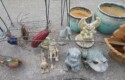 Wall clocks; Sleigh bells; Wall mirrors; Onyx case Waterbury clock; Mantel clock; Victorian side table; Wrought iron patio furniture; Garden decorations; Outdoor planters; Urns; Wrought iron tea cart; Cast iron table & chairs & more!