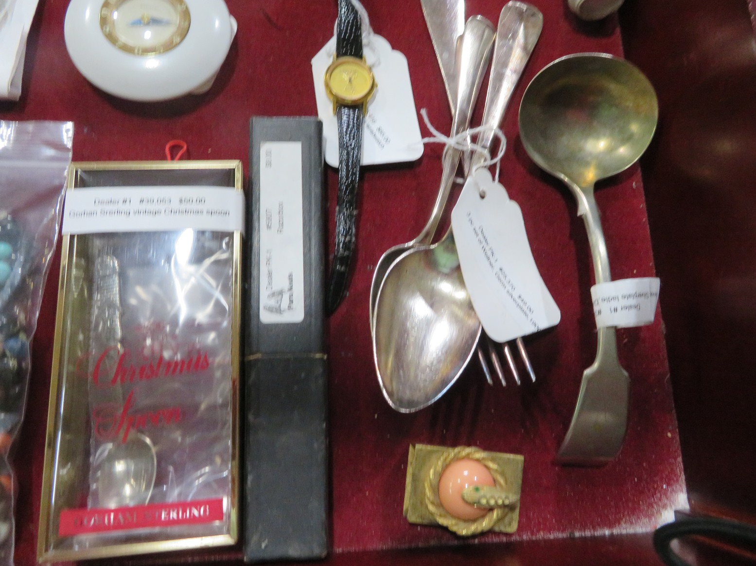 METALS & ART: Sterling & Silver-plate! Sterling flatware set in case MCM design; Sterling jewelry; Gorham sterling Christmas spoon; Sterling shoehorn & buttonhook; More sterling; Silver rim goblets; Brass flatware; Large classical semi-nude statue; Civil War soldier statue; Carousel horse statue; Sailing ship model;