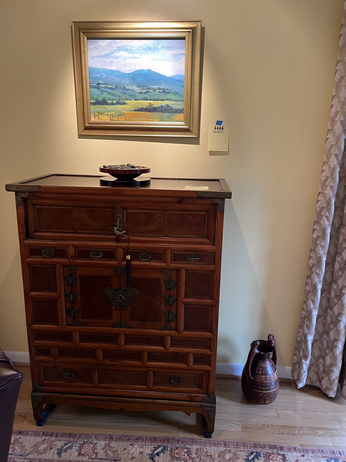 Asian cabinet with large metal locking plate