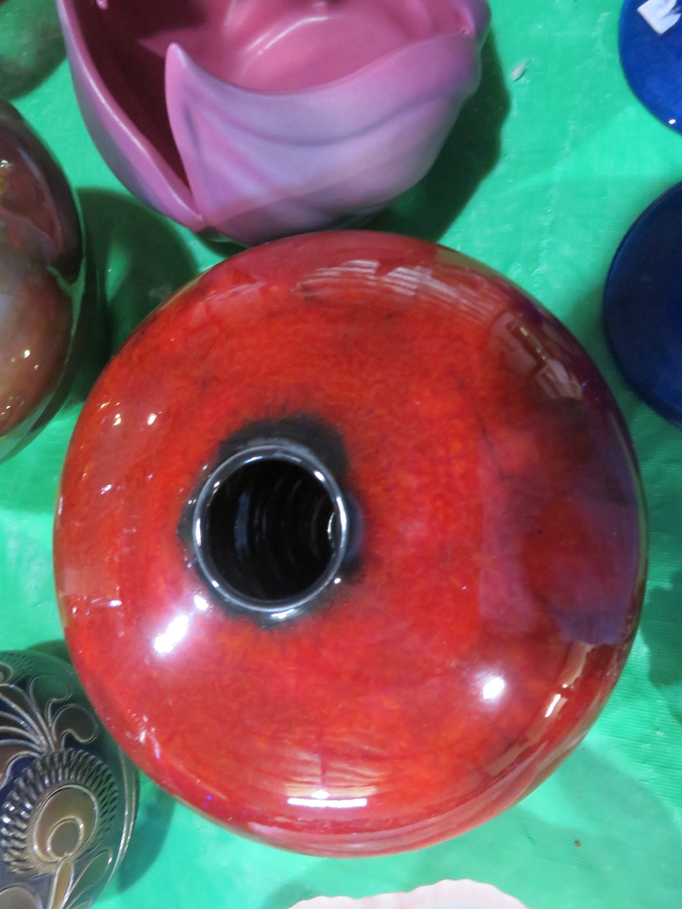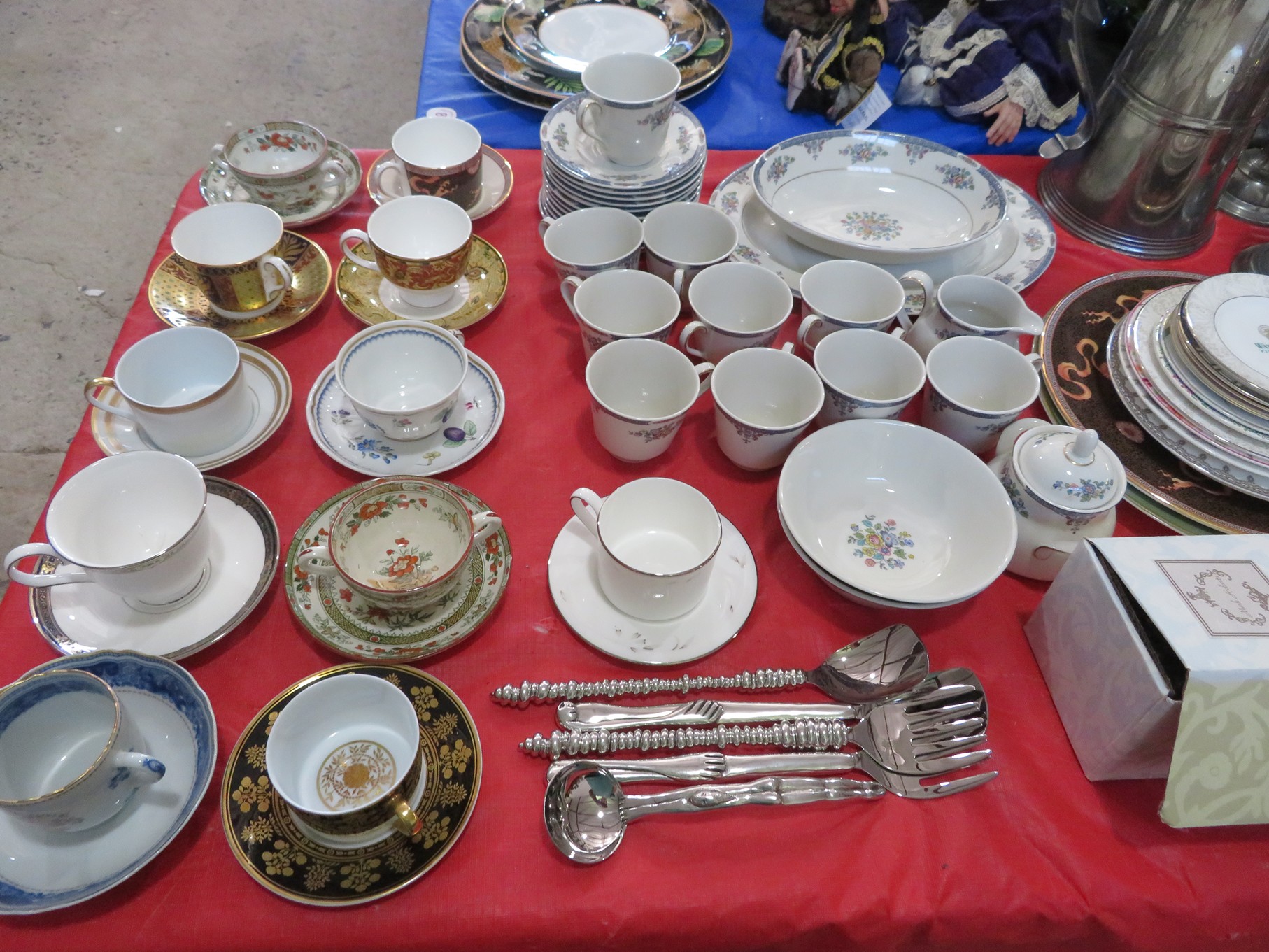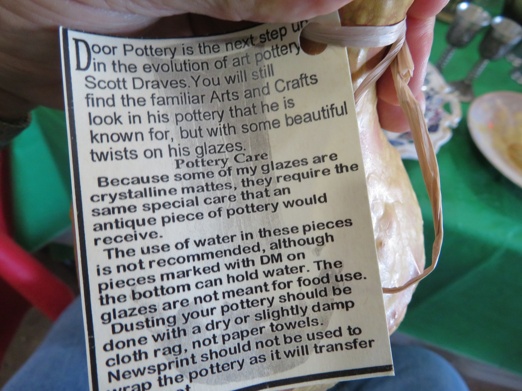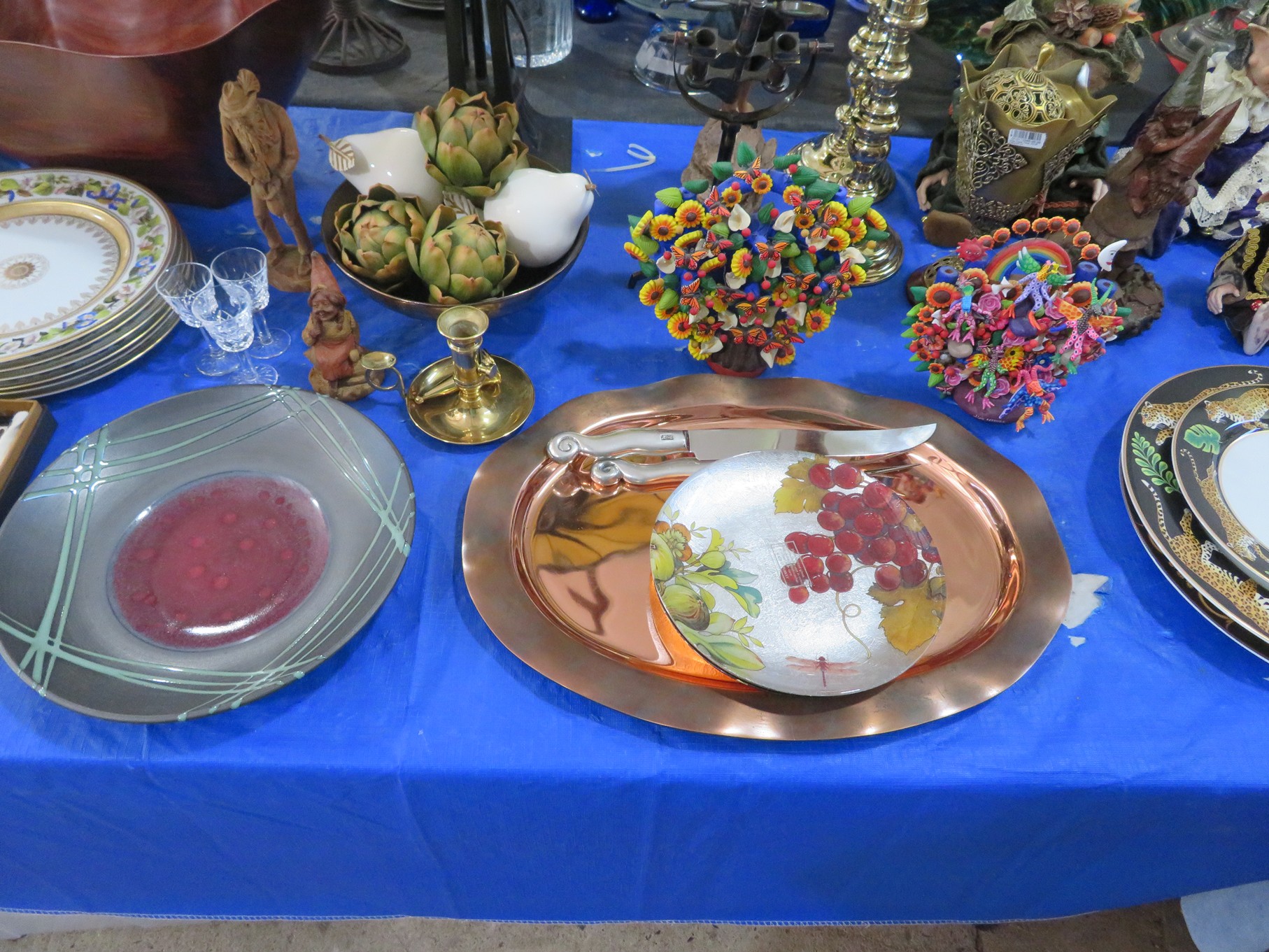Van Briggle vases; Vase with 3D Doll’s eye plant decorations; Studio pottery; Van Briggle candlesticks; Ceramic garden seat; Lladro figurines; Collectible cups & saucers; Art pottery; Hand-painted plates; Tiles; Lenox; Carpet balls; Cardinal figurine; Fine dinnerware set; Teapots; Noritake “Naples” dinnerware collection; Dresden figurines; Capodimonte flowers; Basket; Tea set; Blue & white pottery; Rabbits; Washbowl & pitcher set; Angel figurines; Dutch girl cookie jar; Turkey planter; Coffee set; Piano baby & much much more!