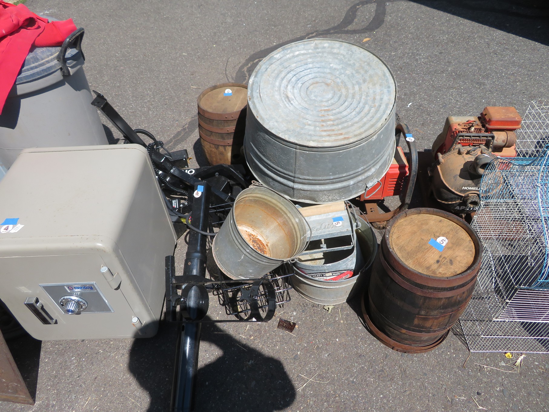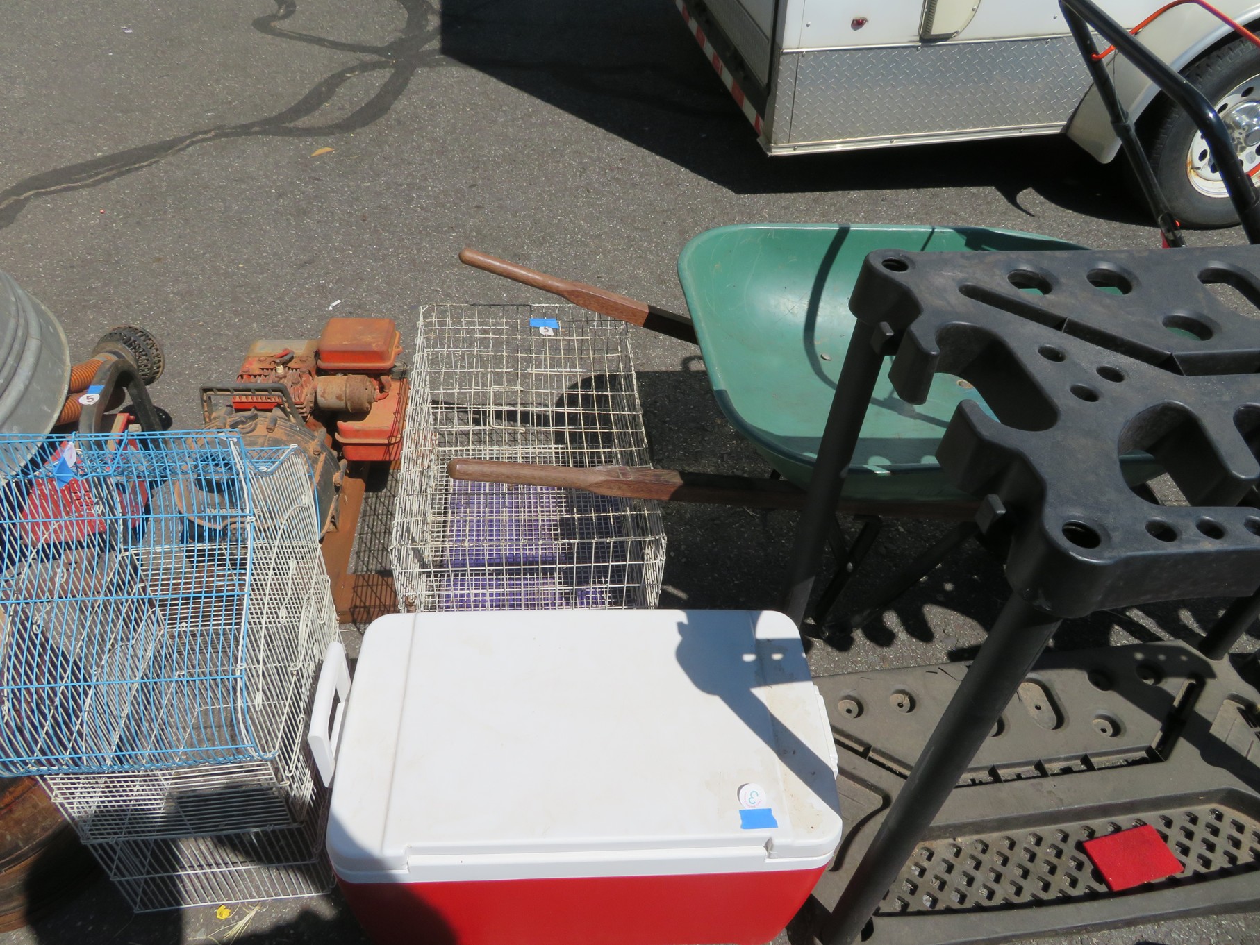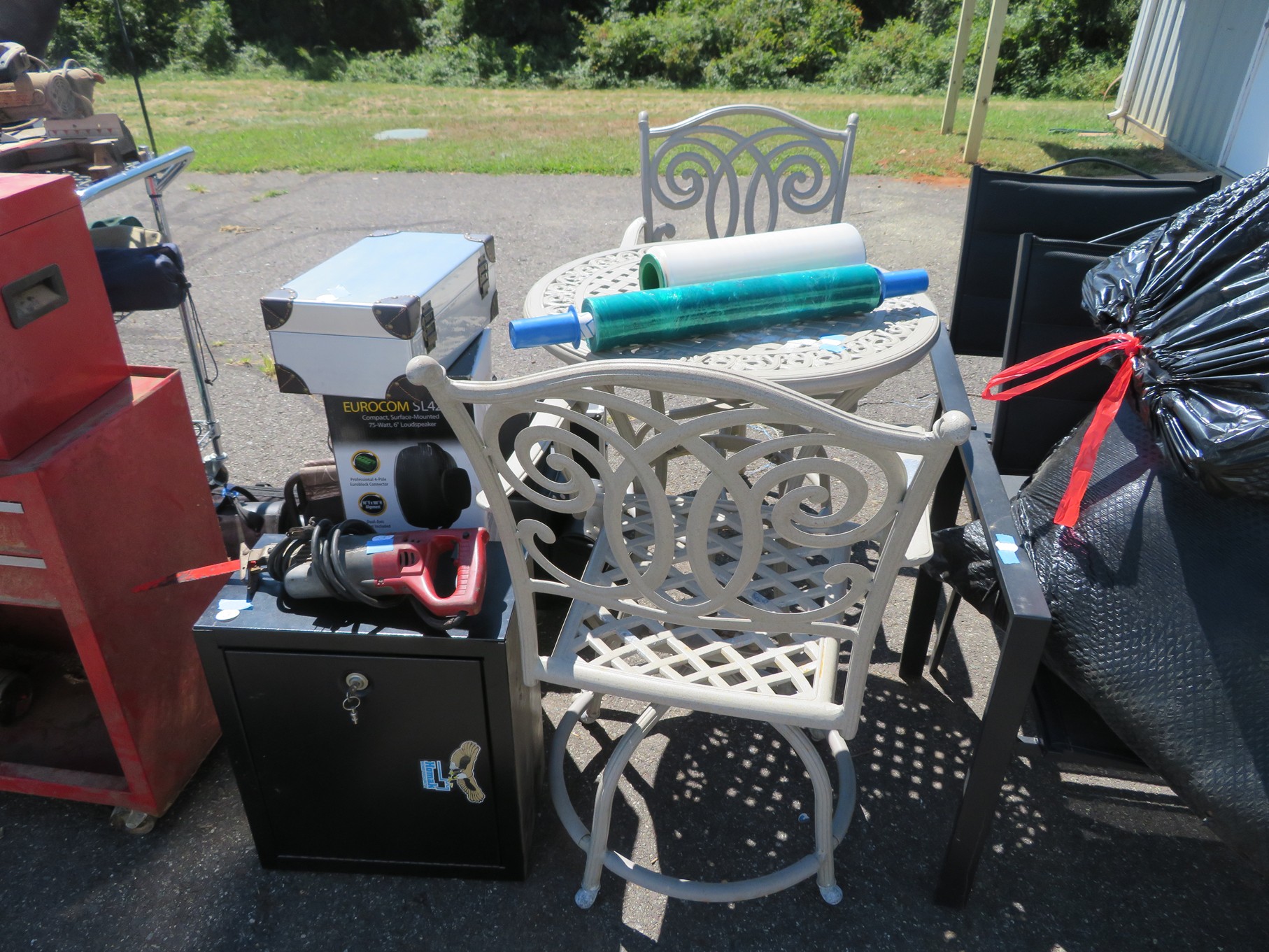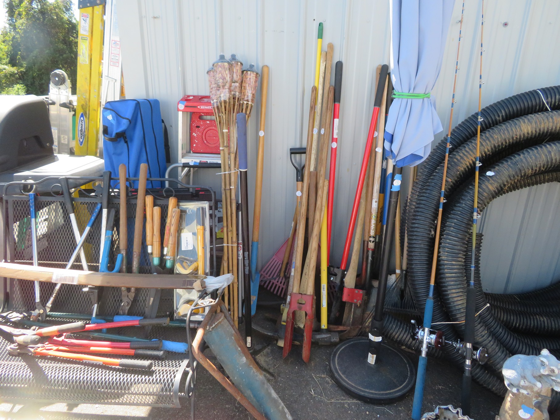 Old quilts; Holly Hobby quilt; Redwork quilt; Patchwork quilts; Applique quilts; Log Cabin quilt; Double Wedding ring quilt; Comforts; Dozens of old quilts! Quilt tops; Other old linens & embroideries; Sewing machine; Patio furniture; Drainage pipe; Floor fan; Garden statues; Long handled tools; Post hole diggers; Sledge; Rakes; Tiki torches; Small ladder; Hedge trimmers; Patio umbrella; Shovels; Brush ax; Lopers; Fishing poles; Wrought iron bench; Safes; Craftsman rolling tool chest; Sawzall; Stainless teel shelving; Dolly; Grinder on stand; Bird cages; Cooler; Wheelbarrow; Wooden keg; Galvanized tub; Trash can; Troy-bilt tiller & Much more!