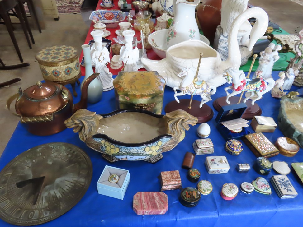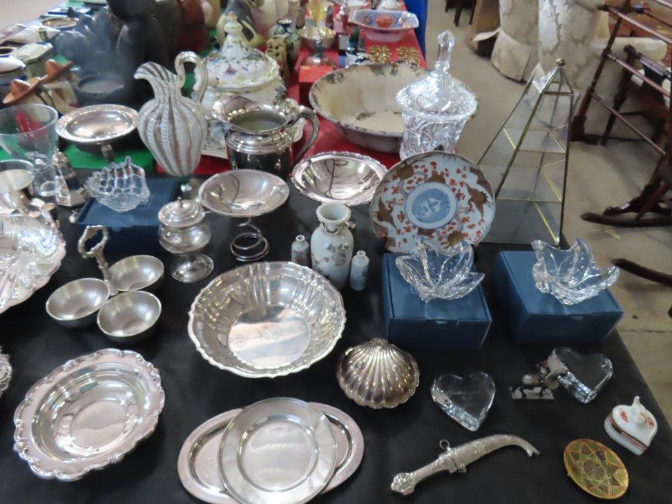 Fantastic selection of antiques, furniture, collectibles, crystal, china, silver, rugs, artwork, tools, and more! Box lots outside to start!