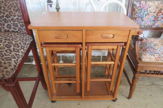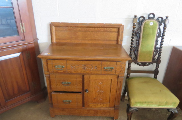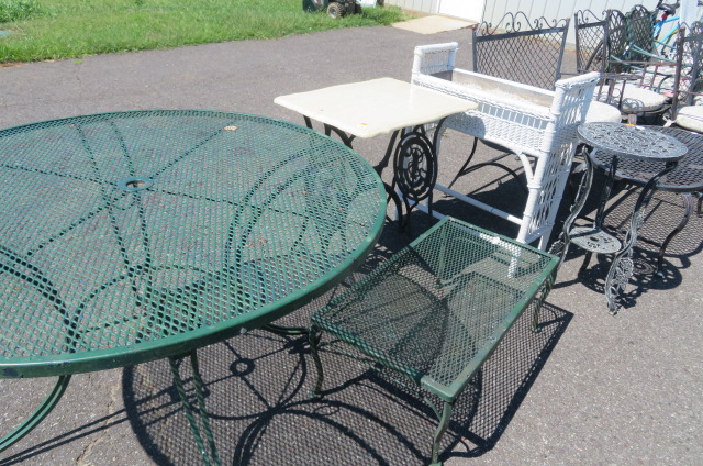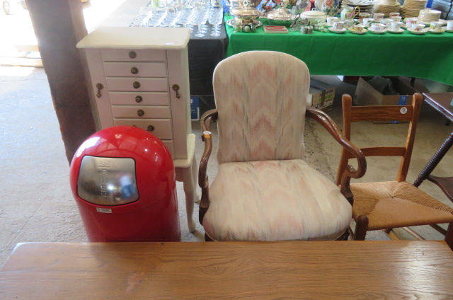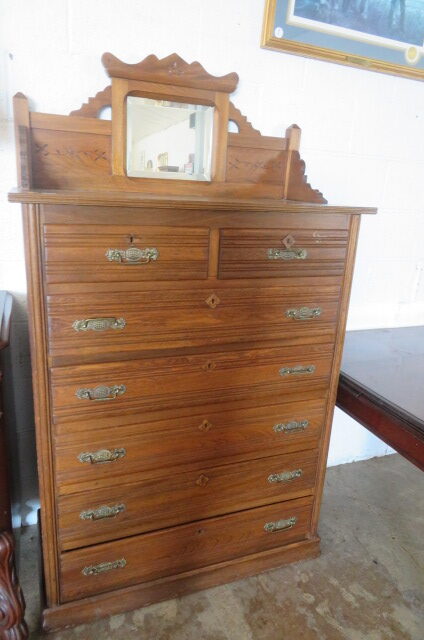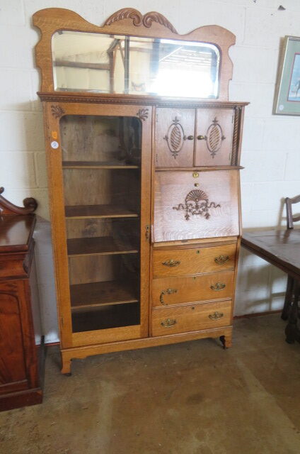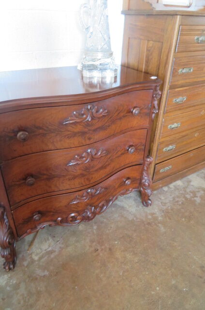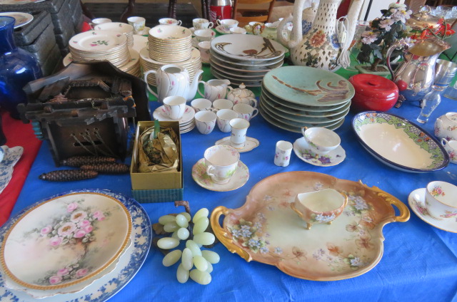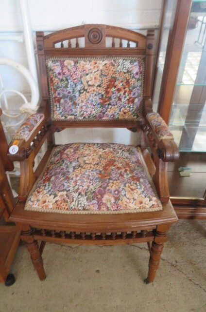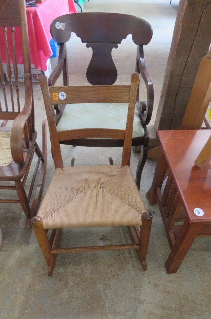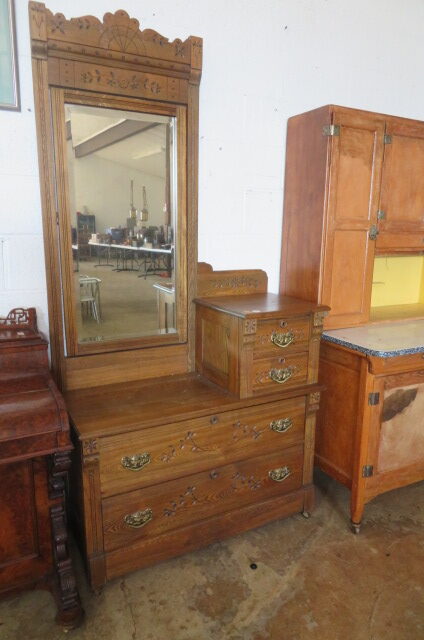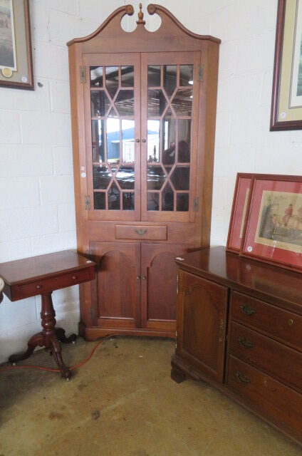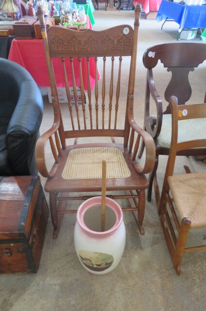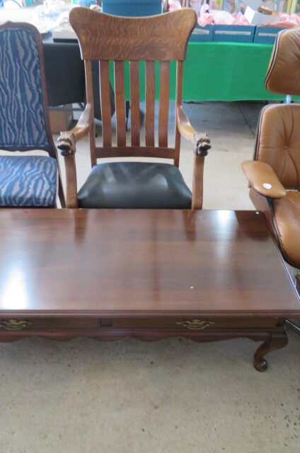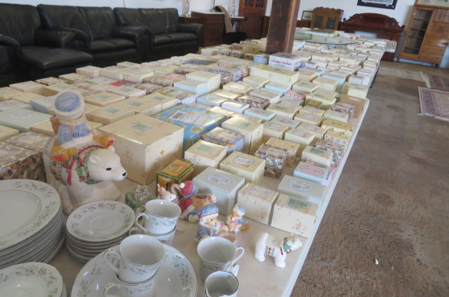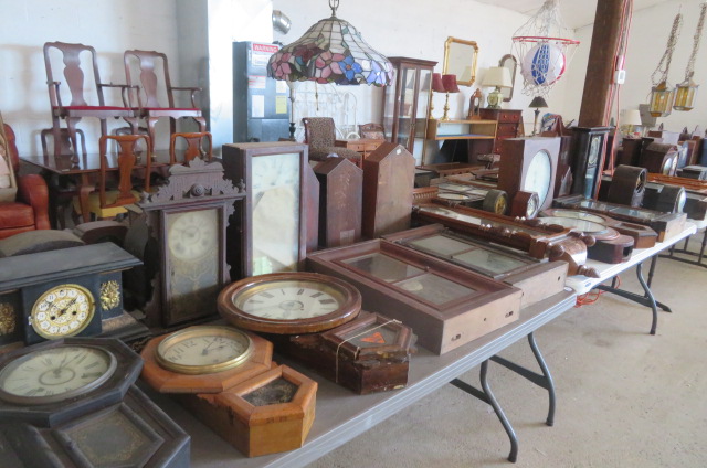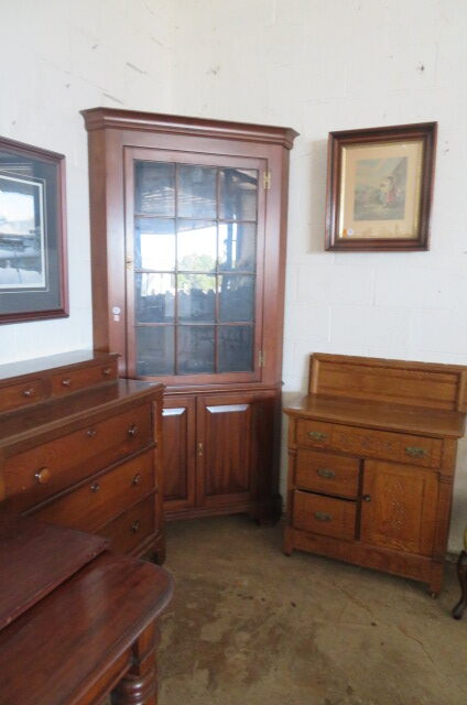 FURNISHINGS: Henkel Harris corner cabinet; Oak washstand; Clore drop leaf table and chairs; Good old pie safe with tins; Great old jelly cupboard; Corner cabinet with broken arch pediment; Wonderful Golden Oak side-by-side with drop front desk & glass door bookcase; Bowfront china cabinet; Really super nice old desk; Olate Victorian dresser with tall mirror; Empire dresser; Oak display case on base; Mule ear rocker; Oak press-back rocking chair; Set of Chinoiserie decorated dining chairs; Stately desk with beautiful veneer; Very nice wall Grandfather clock with visible pendulum; Hoosier with enamel top workspace; Bowfront three drawer chest; Tall Victorian chest of drawers with mirror; Leather tufted bench; Formica child’s table & chairs; Oak chair with leather seat & lion-head arms; Dome top trunk; MCM chest of drawers & dresser with mirror, basketweave accents; MCM leather chair with ottoman; Chair with barley twist; Solid three drawer dresser with top drawer set; Square dining table with chairs; End table with inset floor light; Leather chair; Round oak table on pedestal base; Very nice old chair; Iron bed; China cabinet; Portable bar/workspace with stools stored underneath; Barstool; Small trunk; Leather easy chair; Coffee tables; Floor lamps; Dining chair set with blue & white upholstery; Leather living room set (sofa, love seat, chair & ottoman); Marble top round table; Dining table with leaf; Small server; Half-round table; Grandfather clock; Buffet; Marble top washstand; Gaming table; Farm tables; Storage bench; End tables; Bar seats; Washstand; Office chair; Lots of small tables; Lots of chairs of all sorts; Plant stand; Jewelry armoire; Cuckoo clock; Dragonfly lamp shade; Evoko Pioneer Massage chair; MCM lamp; Mantle clock; Lots of table lamps; Brass lamps; Ceramic lamps; Crystal lamps; Vanity bench; Parlor lamp; Wall mirrors; Hanging lights; Leaded glass shade hanging lights; Lots of good Oriental carpets & rugs; Chinese carpets; Nice small rugs; Decorator accents and much more!