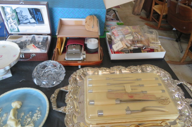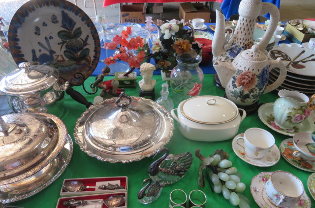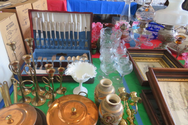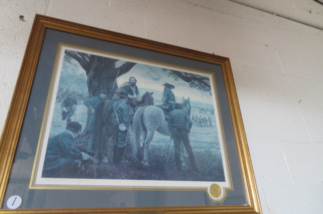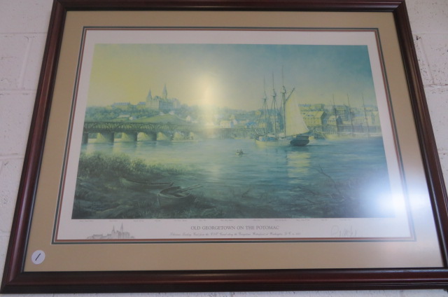 SILVER & ART: Sterling and Silver-plate; Candlesticks; Large tray; Covered serving dishes; Spoons; Napkin rings; Ice bucket; Mail holder; Flatware in chest; Candlesticks; Pitcher and more! Jefferson cups; P. Buckly Moss prints-framed and unframed; Civil War prints; WWI plane print; Hunt prints; ‘Old Georgetown on the Potomac’ print; Still life painting; Seashore artwork; Framed advertisement; Figurines; Prints; Buddha and much much more!