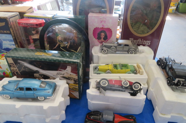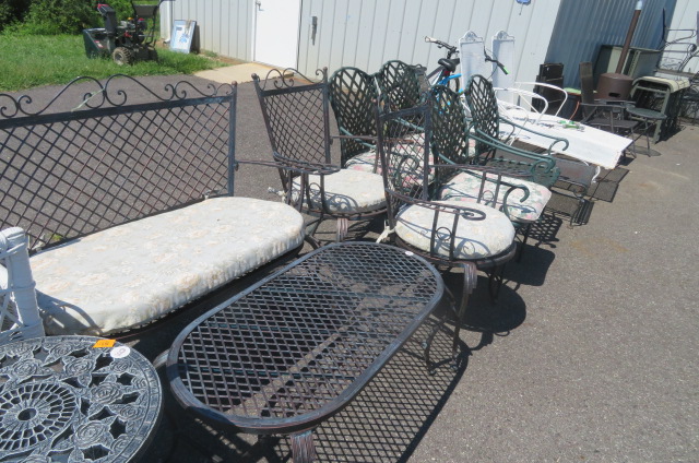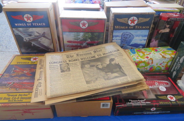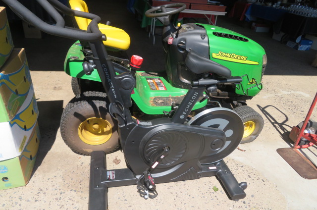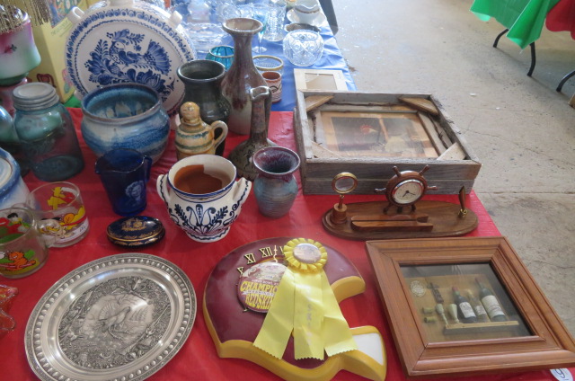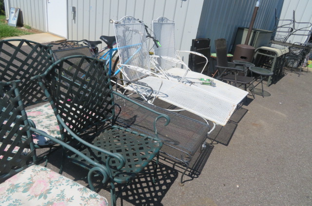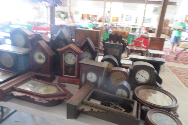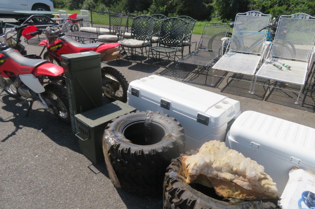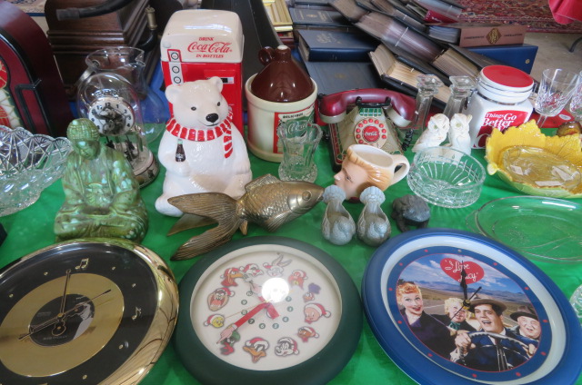 MORE: Galaga pinball machine; Coca-Cola collectibles; Stone grapes; Bookends; Brass hunt horns; Quilt; Scales; Watering can; Desk set; Oil lamps; Brass horn candlesticks; Wall sconce; Dough bowl; Cookware; Old lunchbox; Lanterns; Oyster can; Food grinder; Sifter; Guardian ware; Sad irons; Old fan; Pipe rack; Cherished Teddies figurines in boxes; Floor model nutcracker; Madame Alexander dolls in boxes; Cabbage Patch dolls in boxes; Raggedy Ann & Andy dolls; Steiff animals; Wings of Texaco models in boxes; Model cars; Toys; Old Evening Star newspapers; Telescope; Printer’s tray display; Decorator churn; Cloisonne; Collector plates; Marble chess set; Marble rolling pin with stand; Microscope in case; Carving set; Old camera; Blue canning jars; Cartoon glasses; Paperweights; Tables of clocks of all sorts! Mantel clocks; Kitchen clocks; Wall clocks; Calendar clocks; Clock cases; Anniversary clock under dome; Fine & costume jewlery; BMW motorcycles; Patio sets; Push mowers; Poly yard cart-in package; Coolers; Tires; Crystal specimen; Toro; Wicker planters; Garden furniture; Patio heater; Loungers; Outdoor bar set; Echelon exercise bike; John Deere L111riding mower; Blower; Weed eater; Tools;