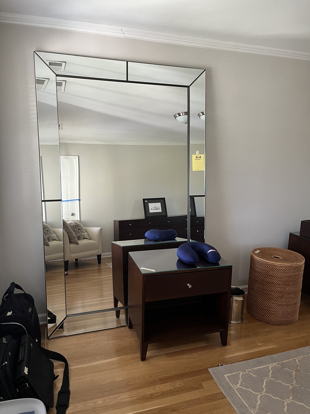 - great mirrors incl – Antique Gold Victorian Mirror acquired in 1981 from a Victorian home on Capitol Hill and Artefacto Creta / silver mirror – 55 in x 86.5 in