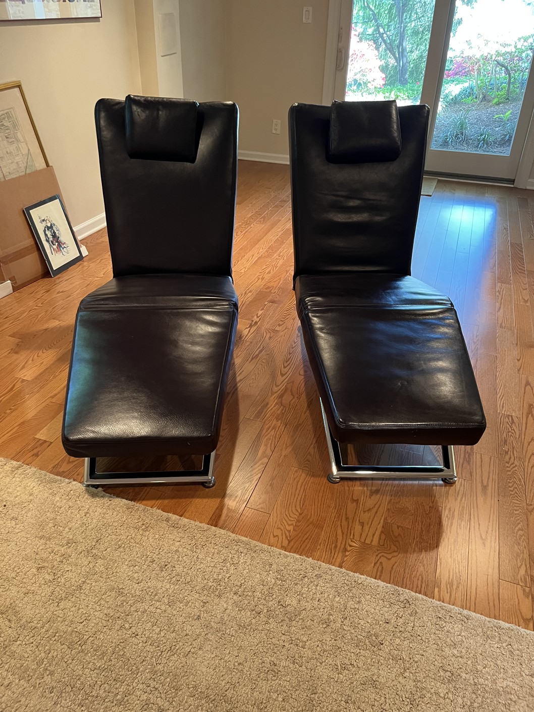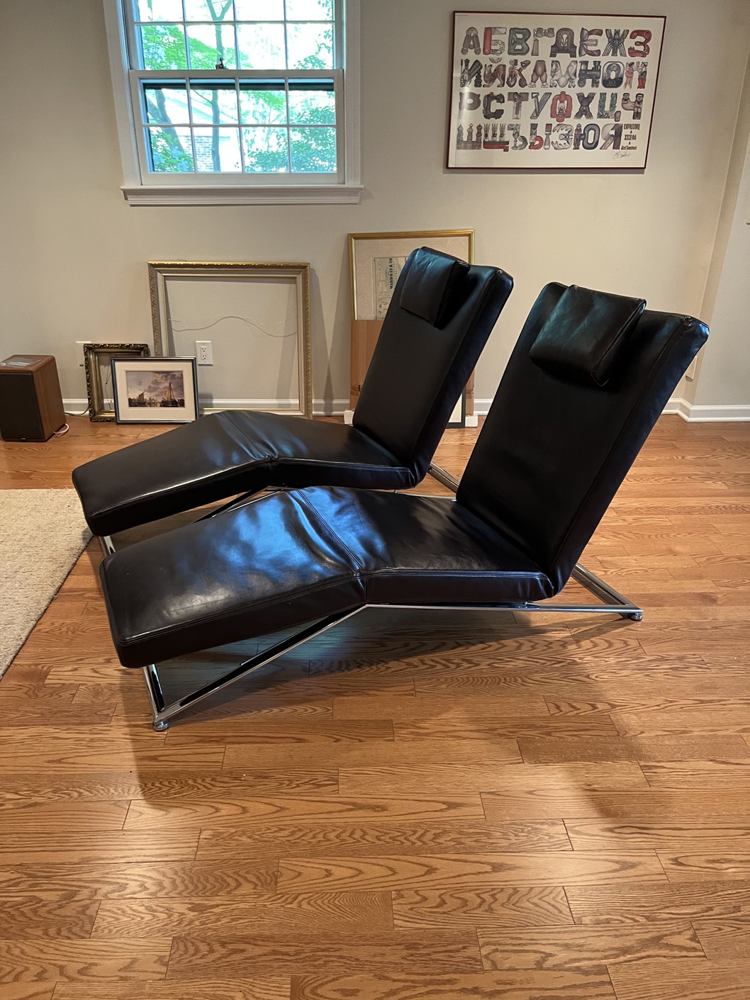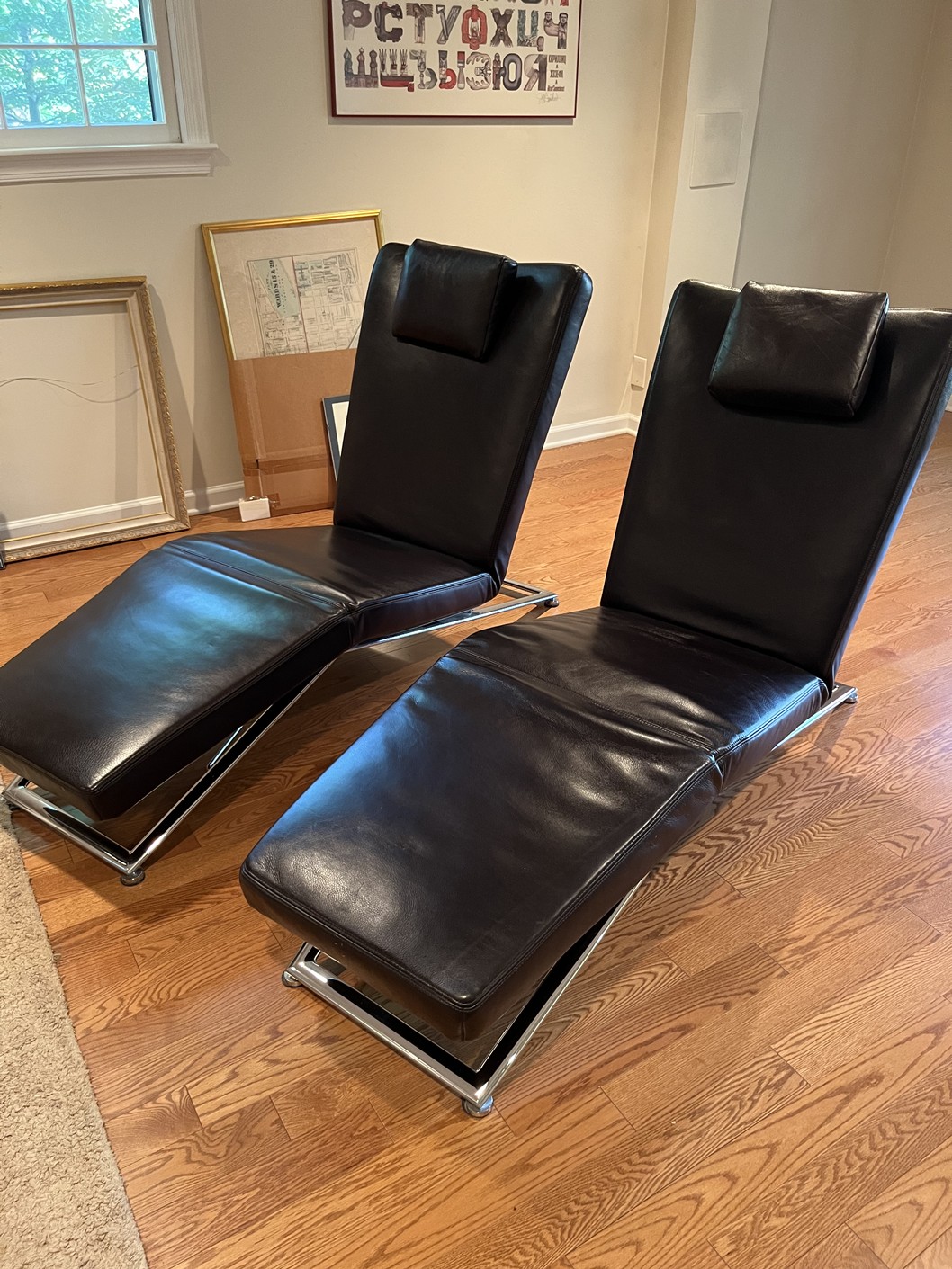 - 2 Chaise lounges – Vintage Koinor Tara Adjustable Leather Chaise Lounge