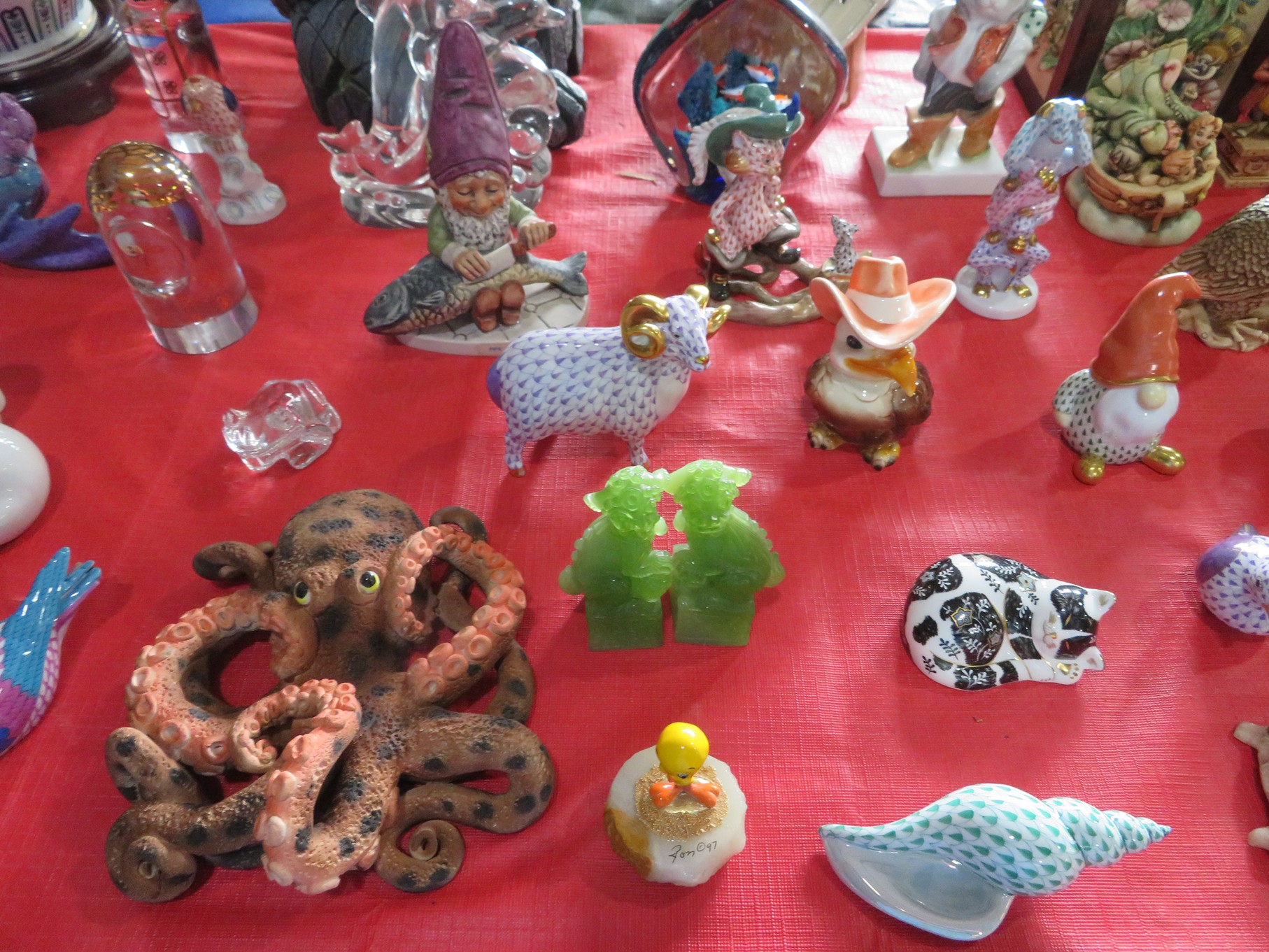 HEREND & MORE!: Outstanding Collection of Herend & Fine Porcelain and Glass Items! Many, many retired and limited-edition pieces! Do your research! This is just the beginning of several auctions for this estate!; Herend Net Figurines! Many sizes, lots of colors, dozens of animals! Sea lion; Chickens; Rabbit pair; Whale; Octopus; Large rabbit; Squirrel; Peacocks; Goose; Spider; Snail; Birds; Mermaid; Ducks; Scorpion; Fish; Ostrich; Eagle; Seahorse; Penguin & baby; Pelican; Bear; Turtles; Pig; Bumblebee; Dove with olive branch; Swirl seashell; Tarantula; Mouse; Miniatures; Hermit crab; Puss in boots; Quail; Unicorn; Hedgehog and too many more to list! More Herend! Grasshopper; Baby giant panda; Frogs; Shell shaped bowl with butterfly and much more.; Meissen Blanc de Chin figure; Lladro ‘The Guest’; Puss in boots; Seahorse; Nameplates; Polar bears; Buffalo; Solid blue rabbit; Penguins and more. Van Briggle Indian Maiden with pot; Indian Maiden with papoose; Seashells; Mug; Candlesticks; Triple bud vase centerpieces; Flower frog; Bowls & more. Hull Mirror brown Piggybanks, Swans and more. Royal Doulton Toby mugs in several sizes and multiple characters; Royal Doulton figurines & candlesticks; More Royal Doulton;