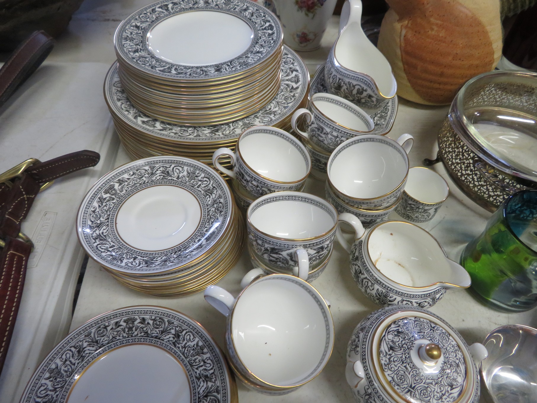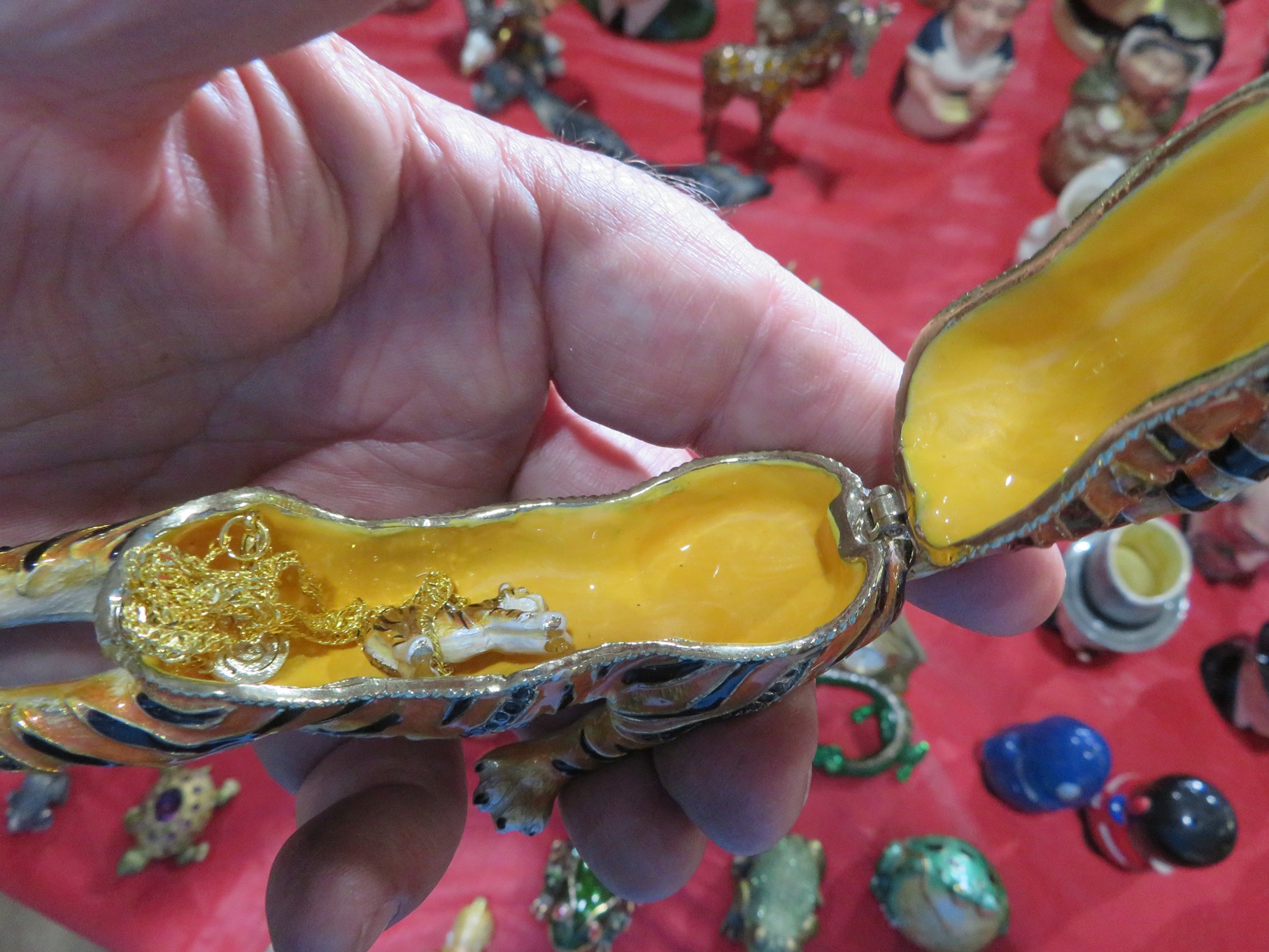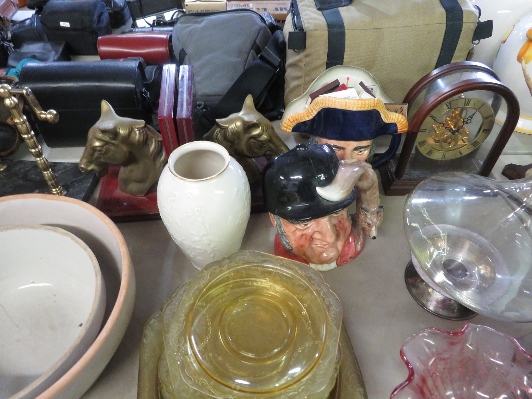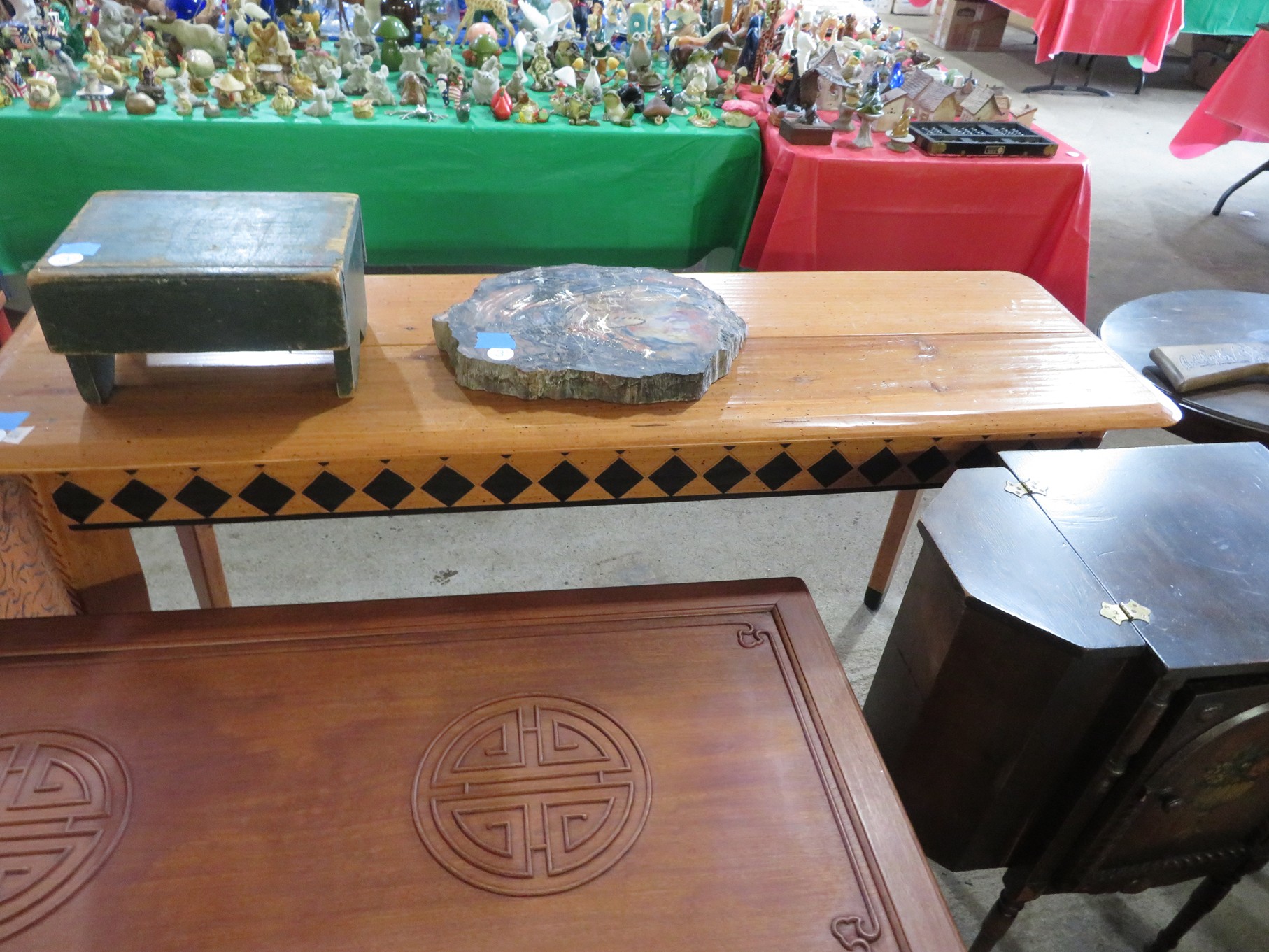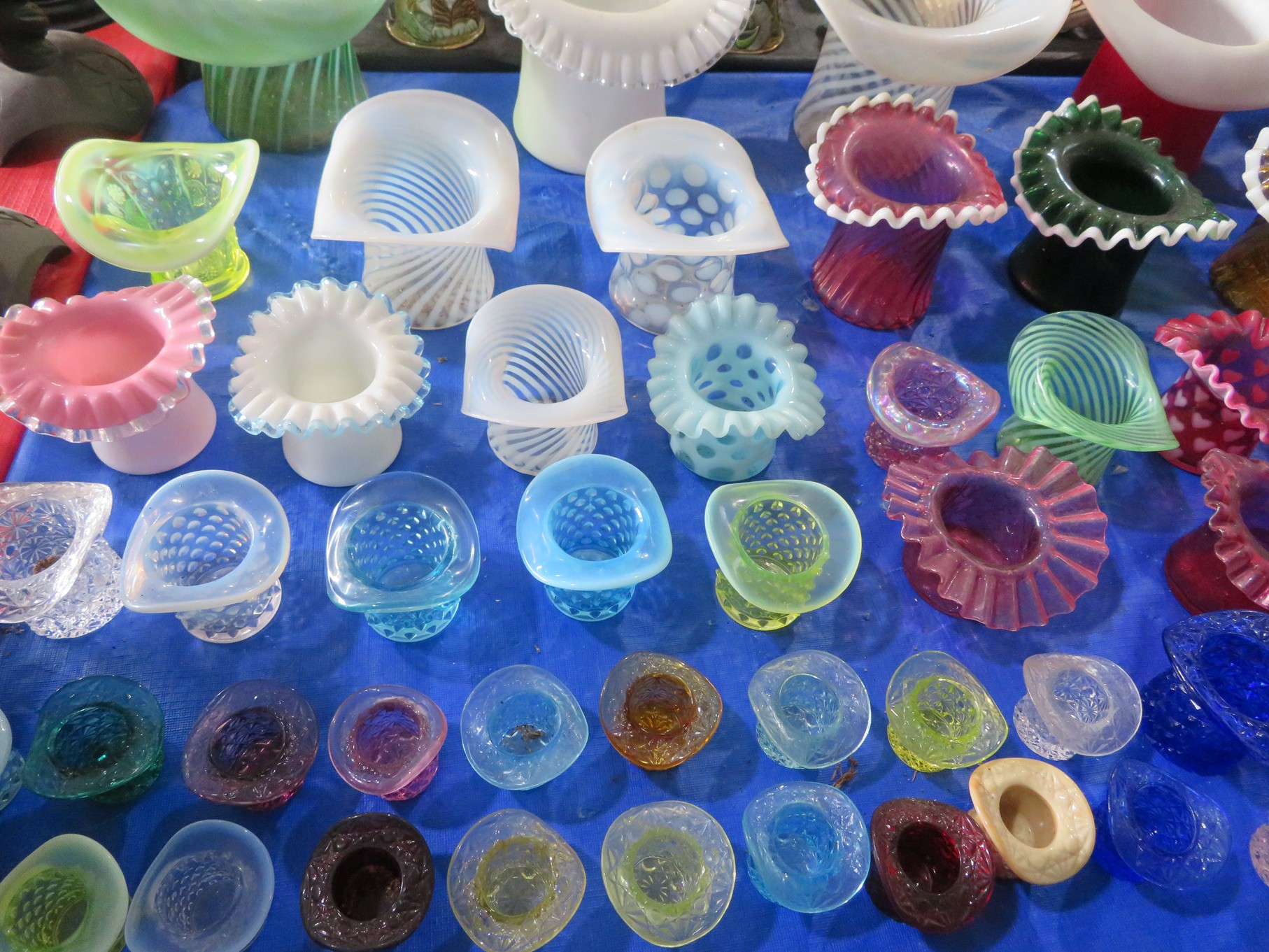 BACCARAT, STEUBEN, FENTON & MORE: Steuben turtle paperweight; Waterford frog; Fenton Hat vases in myriad sizes, shapes & colors; Cornucopias; Ruffled edge Silvercrest bowl; Red spread wing eagle; Bells and more; Baccarat; Clear Crystal, Colored and Art Glass Really unusual lion on nest in amber; Rabbits; Panther; Eagles; Turtles; Octopus; Red & green chili peppers; Cornucopias; Horse; Butterfly; Perfume bottles; Strawberry; Colts; Birds; Paperweights; Dozens of cobalt pieces and so much more! Depression Green S&P shakers; Yellow candelabra; Yellow candlesticks; Yellow cornucopias and more.; MORE Super China, Glass & Collectibles Incredible 3 piece white dragon set; Tremendous Franz vase with butterfly shaped top; Franz bowl; Dragon candlesticks; Candleholders; Trinket boxes; Pin dishes; Tiny vases; Franklin Mint coffee set with sugar & creamer; Porcelain foo dogs; Planters on stands; Oriental vases; Elephant figures; Pembroke Corgi; Owls; Water buffalo; Jar with giraffes; Lidded ginger jar with 3D dolphins; Eagles; Rose Famille bowl; Decorated ovoid shapes; Dancers; Wall pockets; Jardinia Harmony Ball Kingdom lidded cachepots; Rinconada boxes with inserts, figures & nameplate; Lenox cartoon characters, animals & figures; Oriental plates & bowls; Green dragon decorated egg; Gold over green decanter set; Mud men figures; Noritake ‘Phyllis’ dinnerware set; Large collection of Forest Green glassware; Spongeware pottery in red & blue; Studio pottery; Wedgwood ‘Florentine’ dinnerware set; Jan Richardson, Windy Meadows Rosebrier Cottage, Made in Maryland, signed & numbered; Leone Kuhne Kachinas; Kitty’s Critters frogs; Goebel bird with hat; Dalzell Leaping dolphins statue; Neil Eyre signed & numbered Chameleons, Lizards, & more; Kitty’s Critters Ladybugs; Set of 7 Immortals figures; Harmony Kingdom; Enameled tiger trinket box with insert; Neiman Marcus turtle & rabbit on base; Royal Haeger vase with label; McCoy Dutch shoes planter; Heisey pink horse statue; Turov giraffe in a suit, rabbit & turtle; Villeroy & Boch; Swarovski; Jim Shore figurines and more!