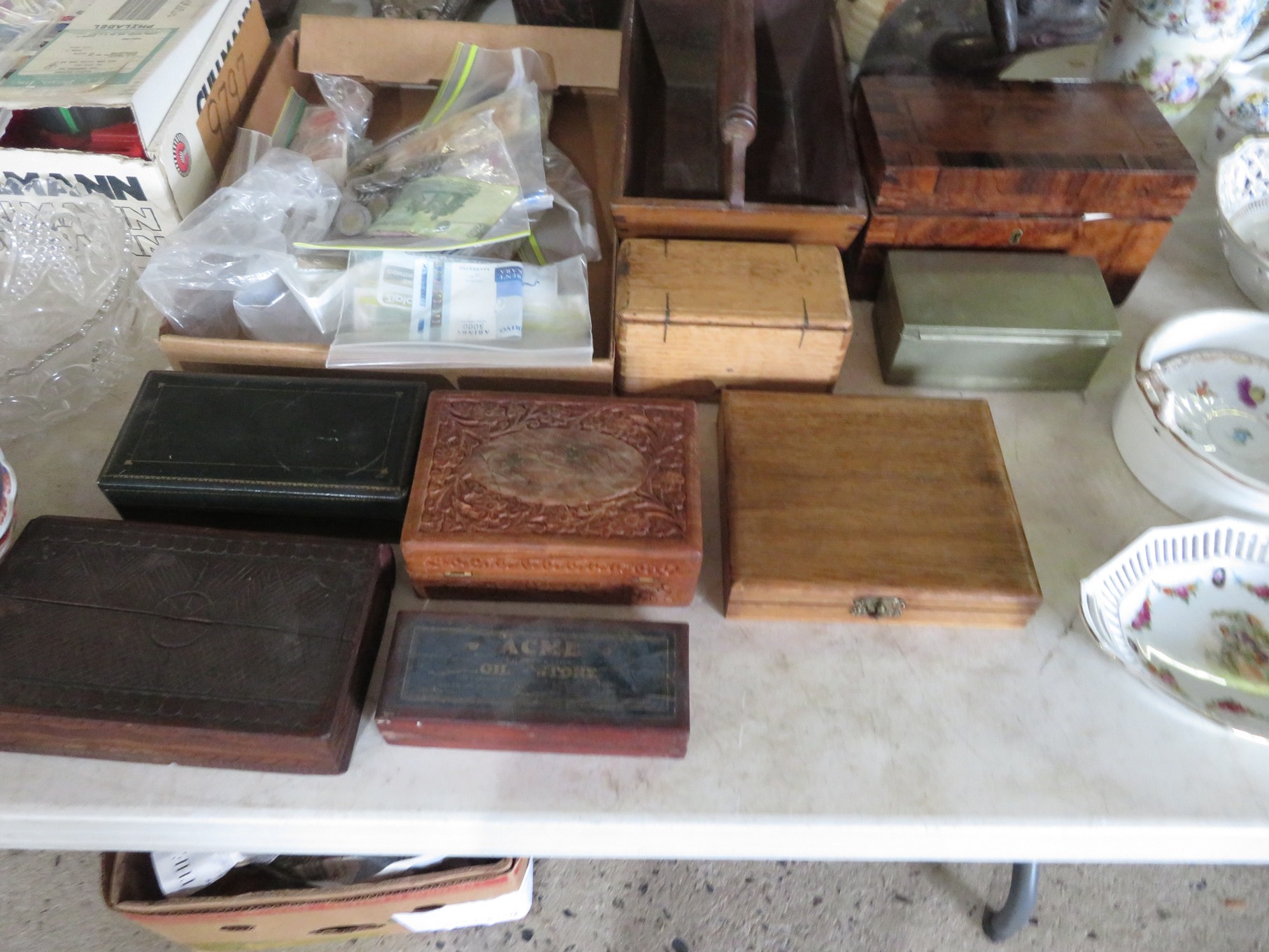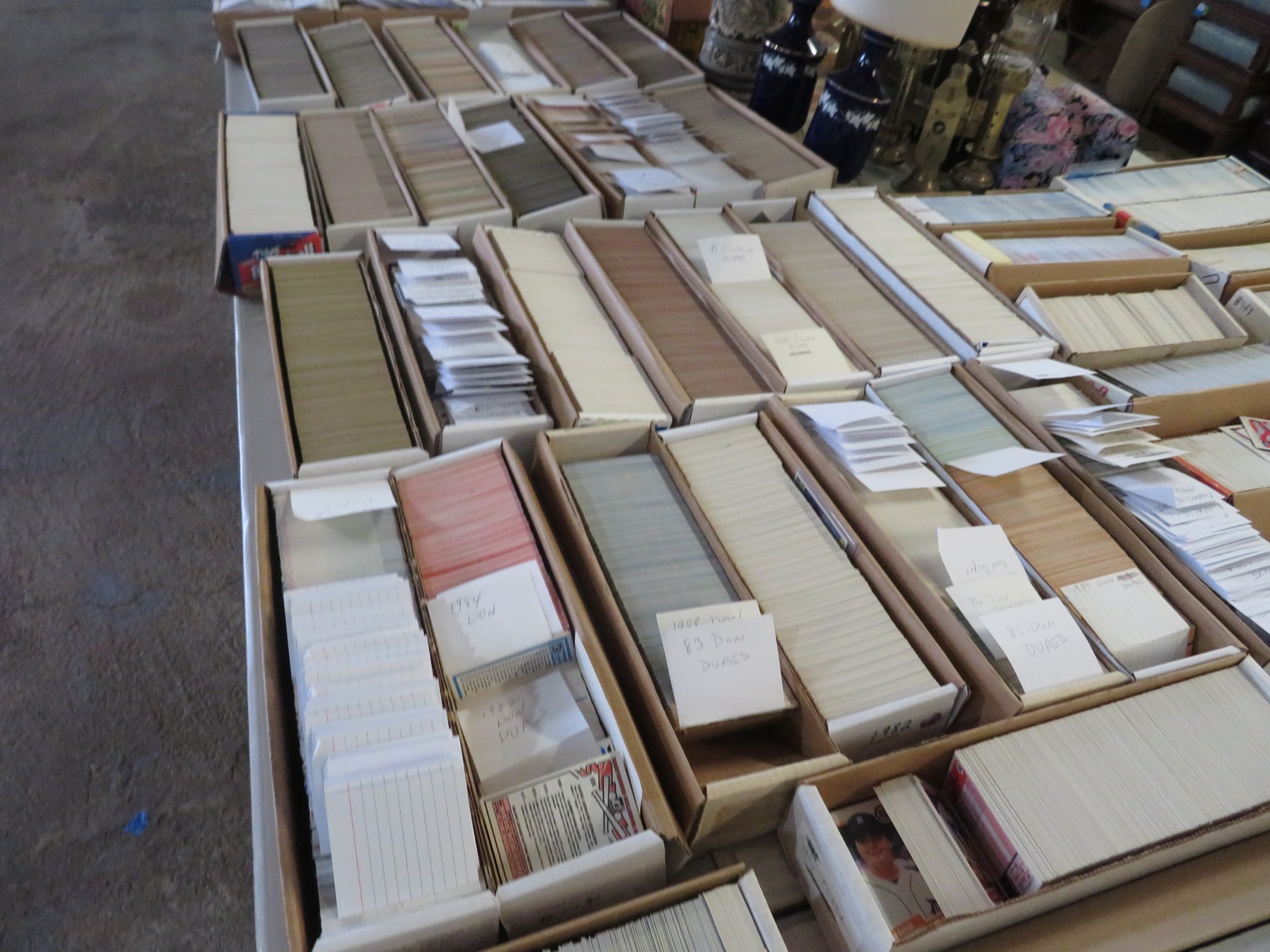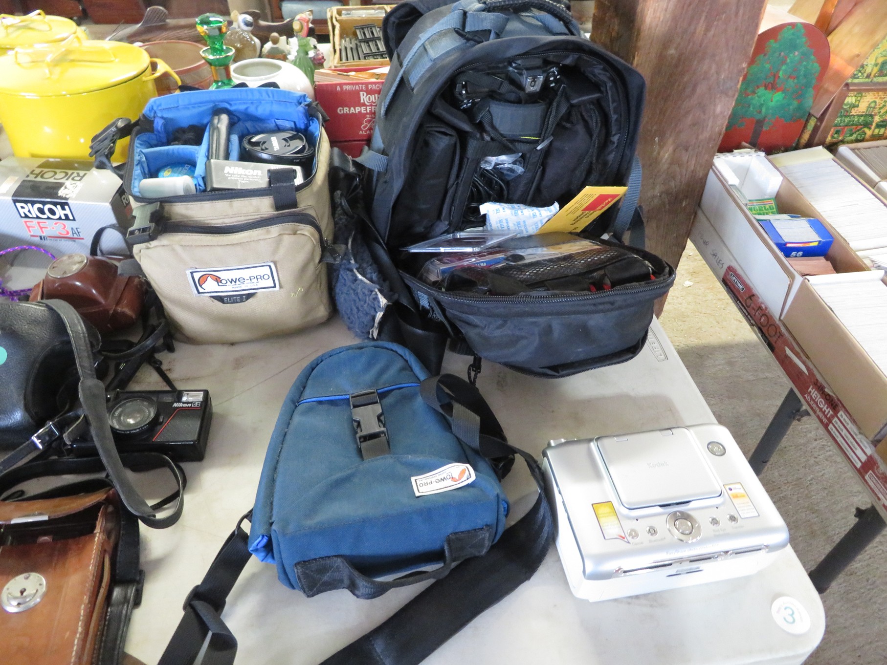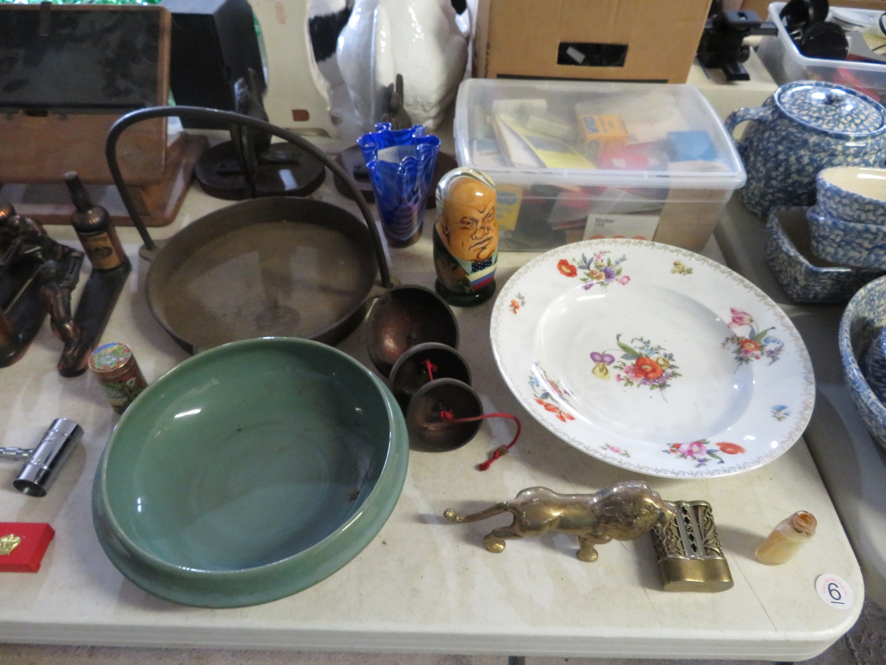 MORE: Duck Decoys; Chair with tractor seat, wagon wheel base and horseshoe arms & back; Slab of petrified wood; Ship’s wheel; Hallmark Gold Crown sign; Hames; Made Rite Bread wooden shipping box; Acoustic guitar; Garden seat; Tables of boxes of sports cards and collectible trading cards; Bird houses; Keepsake boxes; Crstal clock; Sea coral specimens; Toy RR cars, track and more; Old baseballs; Ox yoke; Dansk yellow fondue pot & stock pot with lid; Mixing bowl set; Copper colanders; Brass horsehead bookends; Wall mounted coffee grinders; Snuff bottle; Foo dogs; Cloisonne vases; Pepsi-Cola glasses; Steins; Egyptian figures; Prisms; Tassels; Fishing floats; Nautical decorator accents; Ship’s wheel clock; Octopus lamp; Copper ship’s lanterns; Lighthouses; Pinocchio comic book; Dresser set in box; Lots of old cameras & accessories; Nikkor; Lenses; Bags; Camera bodies; Ricoh; Canon Rebel EOS; Canon PowerShot; Olympia; Bushnell binoculars; Stereo-viewers with cards; Old black View Master viewer; Fine and costume jewelry; Much Much More!