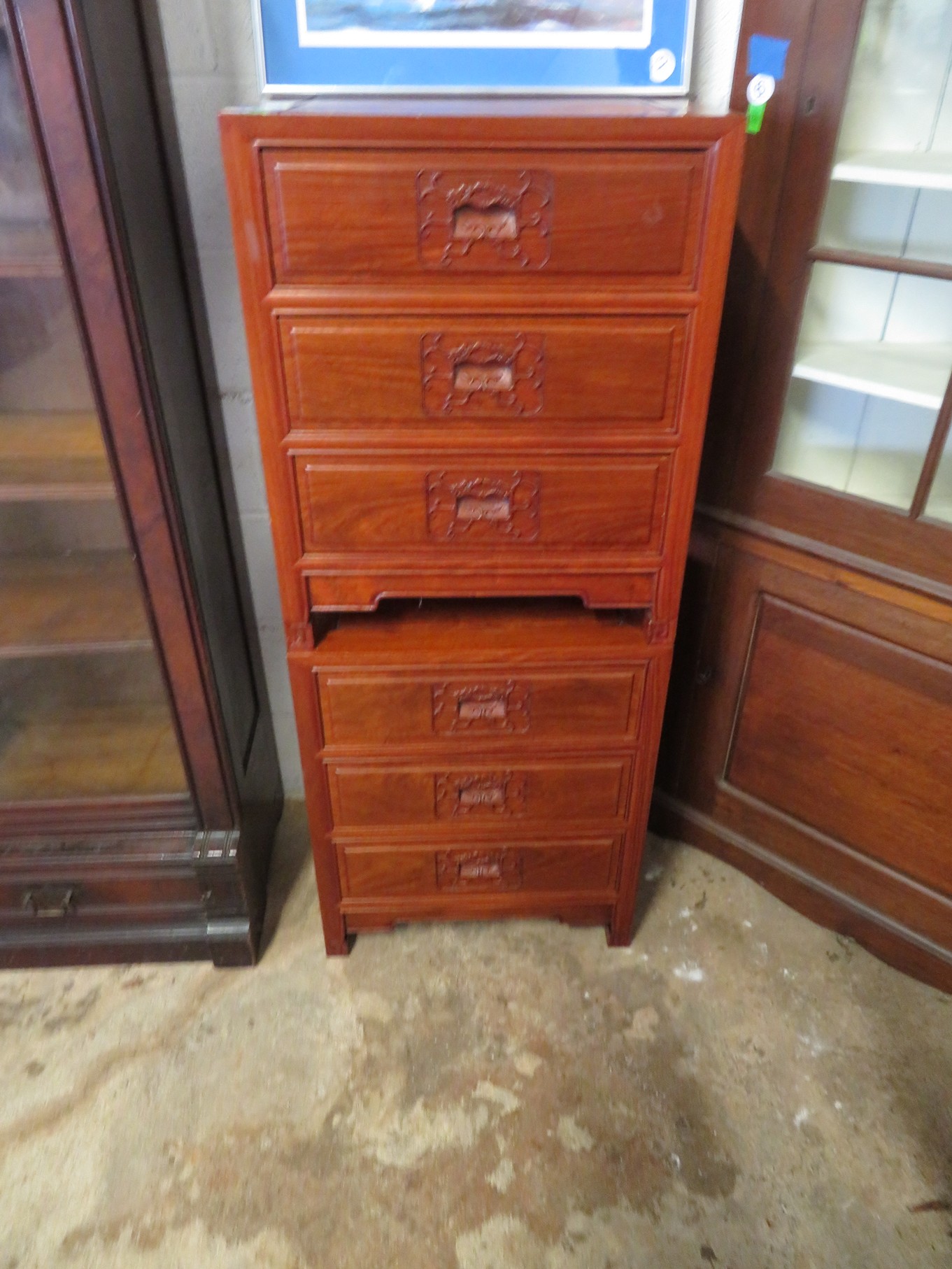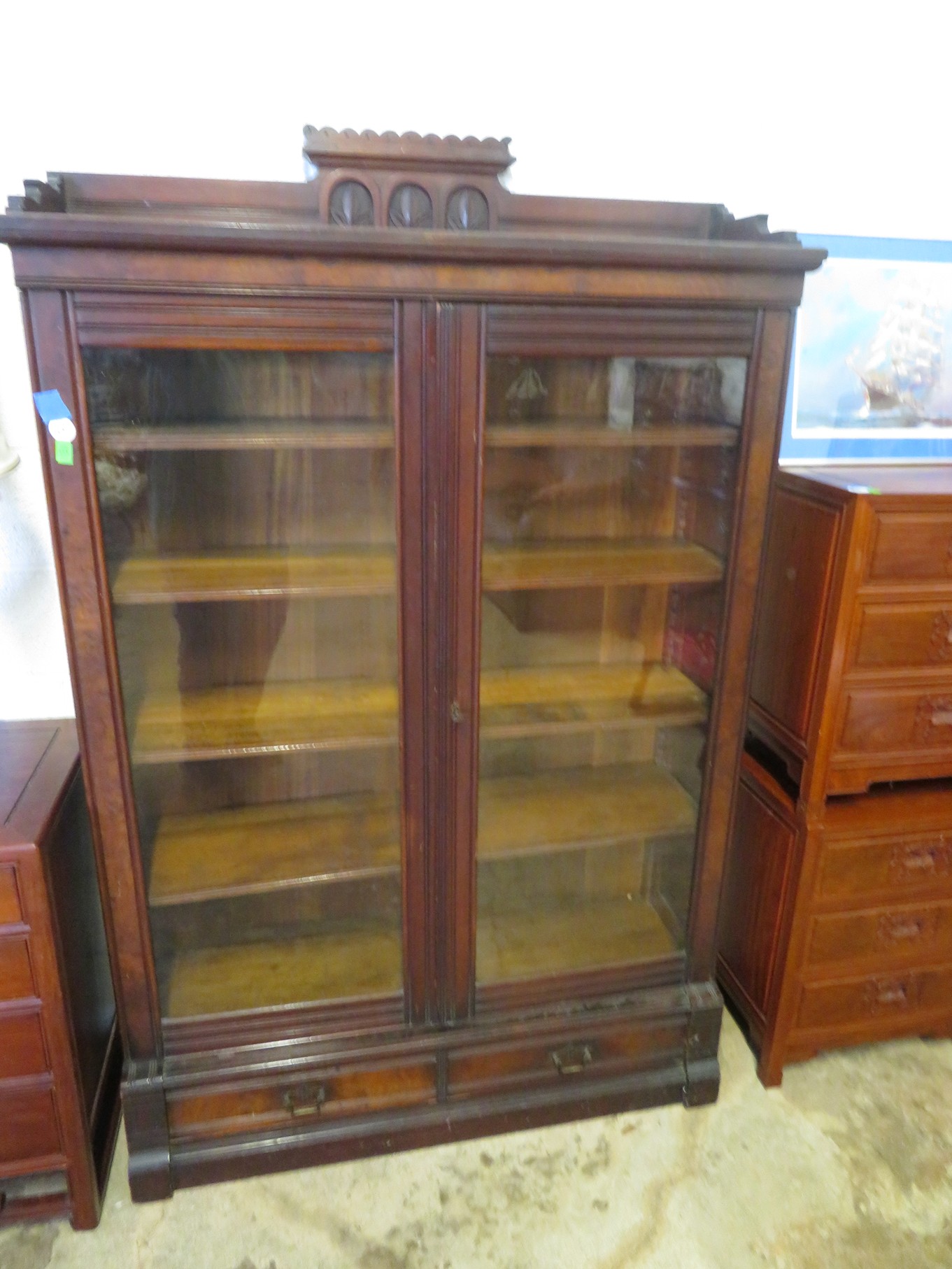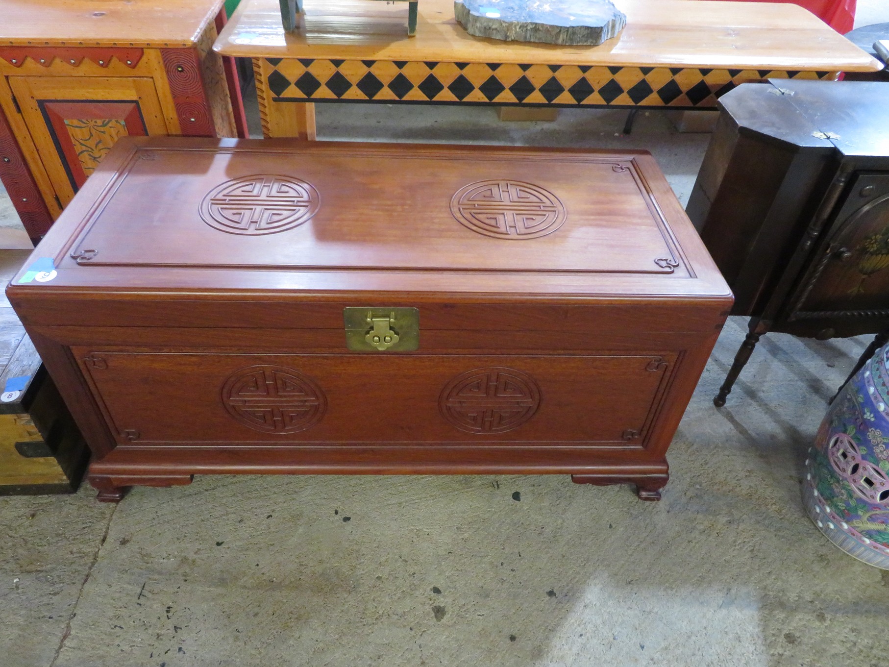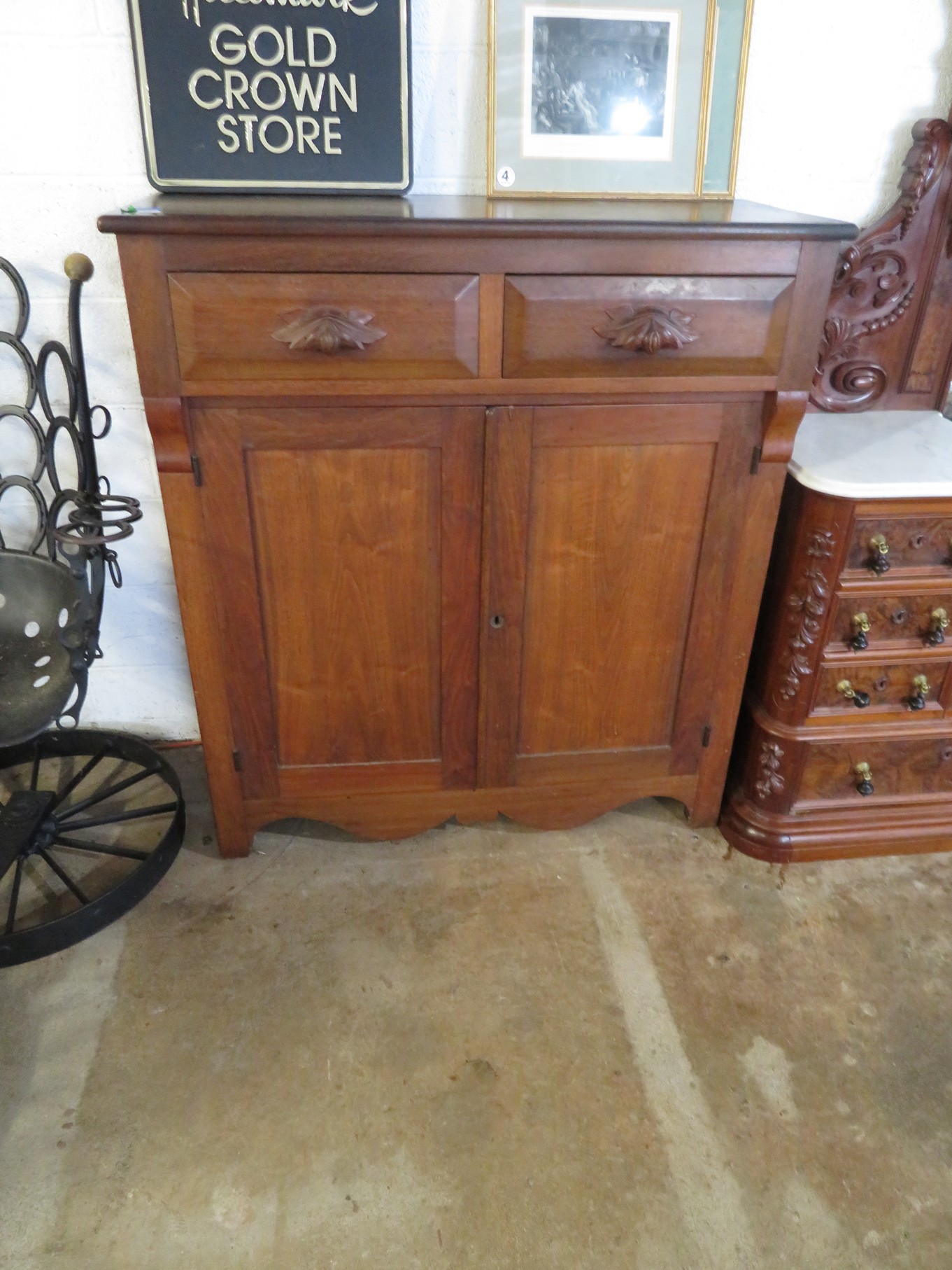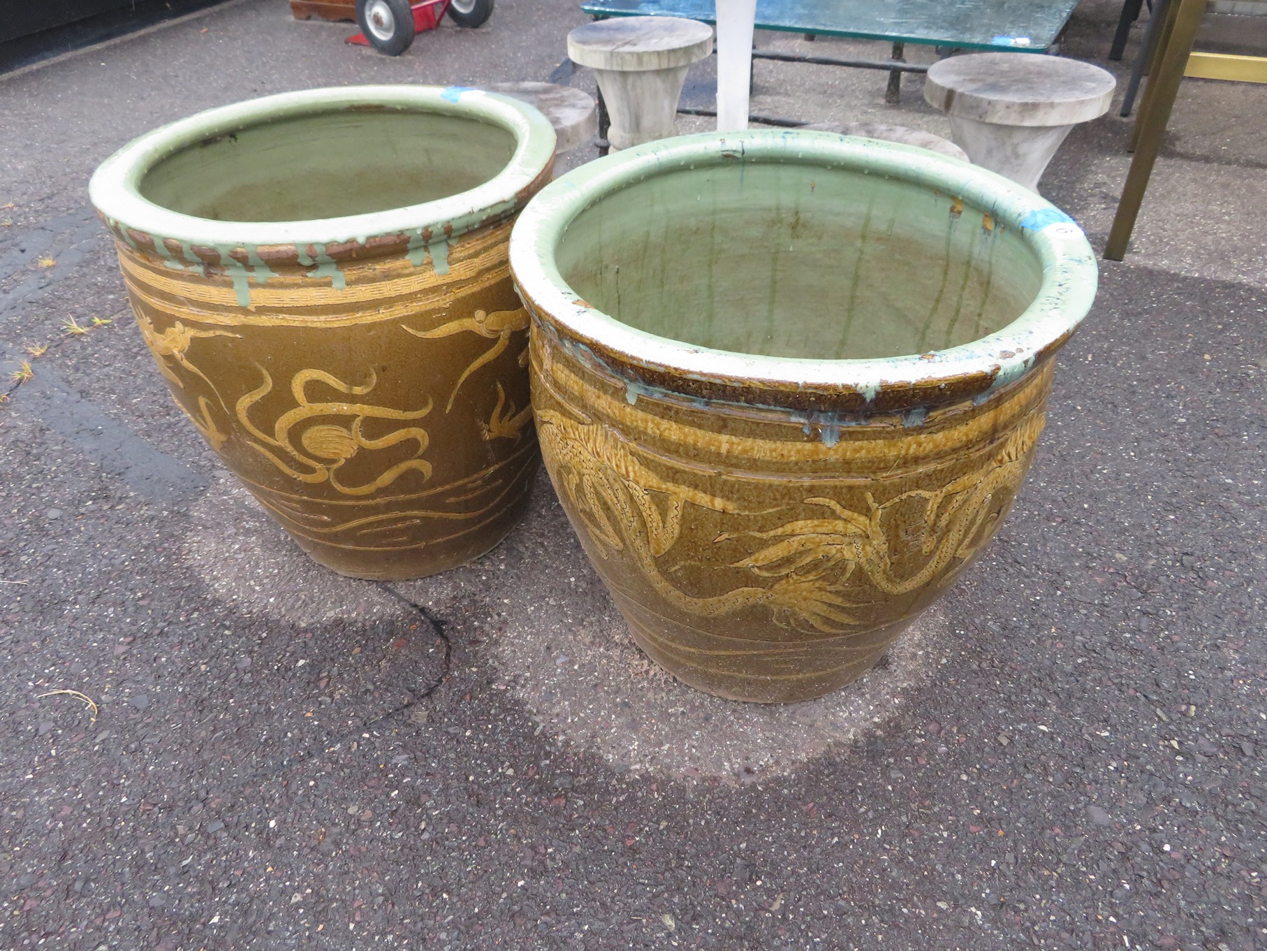 FURNITURE AND FURNISHINGS: MCM Furniture! Fine dining table with 4 chairs; Round tulip base table with 4 matching chairs; Fantastic buffet with display top; Lockable server with double flip out top leaves; Floor lamp; Eames style easy chair with shaped wooden arms & matching ottoman; Pair of white leather club chairs; Buffet with floating display top; Pair of chrome frame easy chairs; Chrome bar seats with red tops; Stressless style chairs & ottomans; Armchair; Footstools; End tables; Magnificent marble top mirrored dresser with candle stands and drop pulls; Hall pier mirror with drawer & marble shelf; Sugar chest; 4 section stacking bookcase with flip down secretary section; 5 section stacking bookcase; Pair of matching 3 cushion leather sofas; Leather love seat; Large corner cabinet with double 8 pane doors of double blind doors; Cabinet with old white paint; Nice jelly cupboard with carved wood pulls; Another nice 5 section & base stacking bookcase; Pedestal side table; Piano stool; Martha Washington sewing cabinet; Flat top trunk; Old wooden high chair; Lots of chairs; Bench with drawer; Umbrella holder; Floor vase; Pottery base oil lamp; Double glass door bookcase; 3 section stacking bookcase; Golden oak dresser with mirror; 6 drawer spool cabinet; Unusually shaped armoire with mirror; Double drawer side table with twist legs; Cedar blanket box; Marble top cabinet; Side tables; Marble insert top plant stand; Drop leaf side table; Large ottoman; 4 drawer spool cabinet; Rolling office chair; Stacking bookcase on legs; Awesome pair of blue fishbowl planters on bases; Reverse painted clock; Hanging cabinet; Brass candelabra; Furniture with Chinese medallion decoration! Blanket box; Chest of drawers, nightstand pair & matching dresser; Another Oriental motif dresser with matching nightstands; Wooden plant holder with galvanized insert; Chair with Chinese medallion upholstery; Desk and chair with medallions; Triple panel oriental scene screen; Large fishbowl planter on base; Leather sofa; Floor cradle; Tiffany style table lamps; Heavily carved wooden table lamps; Pair of white with yellow flowers table lamps; Mantel clock; Mesh office chair; Curved seat bench; Fern stand; Painted cabinet; Wooden box; Room screens; Pair of interesting metal cylinder with handles table lamps; Striped children’s toy chest; Matching striped painted wall mirror; Bar seat trio; Pair of armchairs; Teak outdoor table and chairs; Teak bench and side table; 4 wrought iron chairs; Pair of rattan look lounge chairs with cushions; Patio table with 4 chairs; Huge planters; Marble table and 4 seats; Glass top outdoor tables and much more!