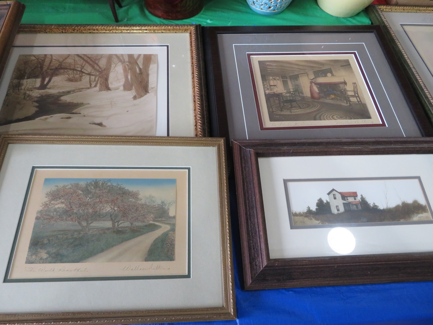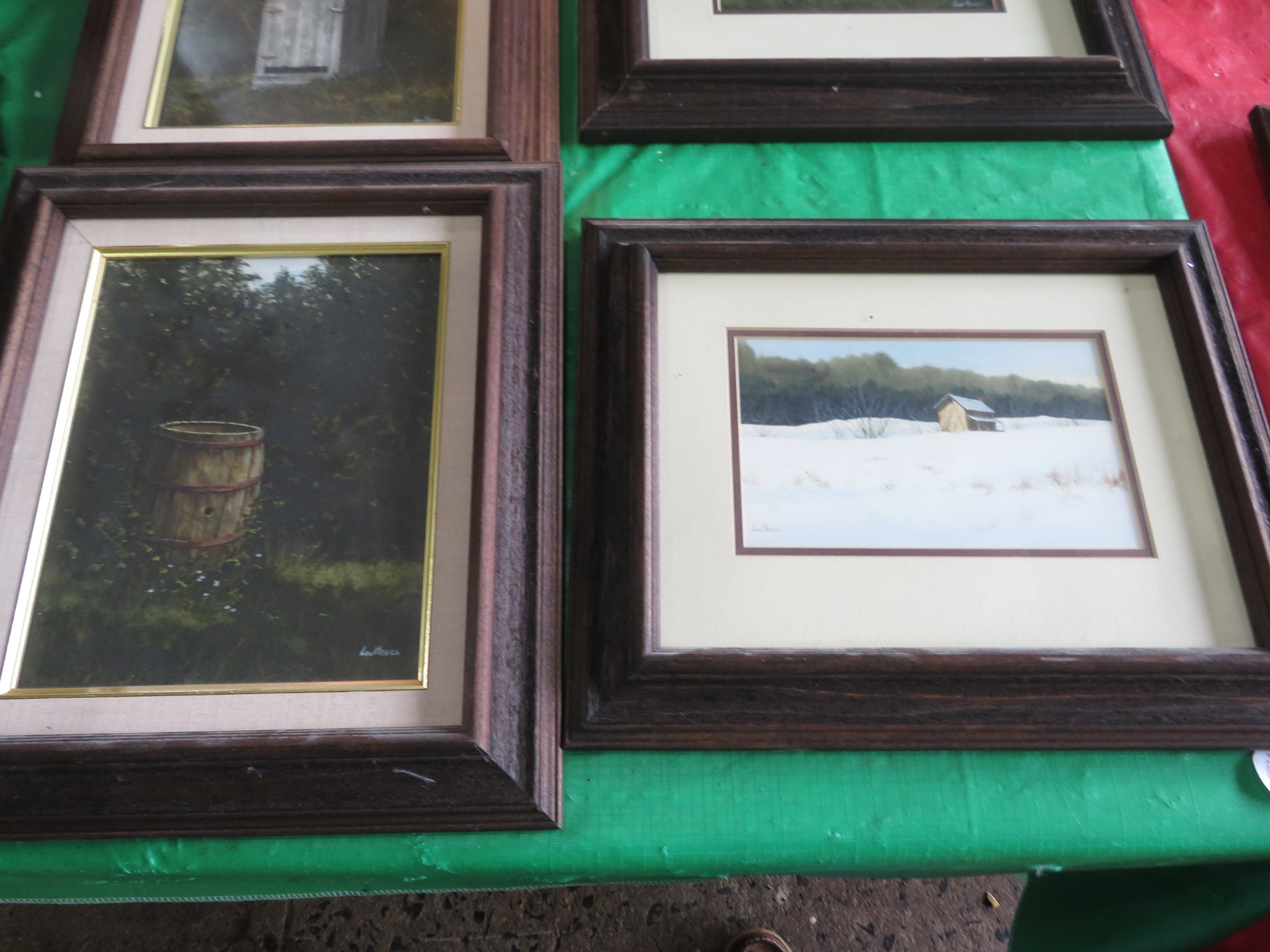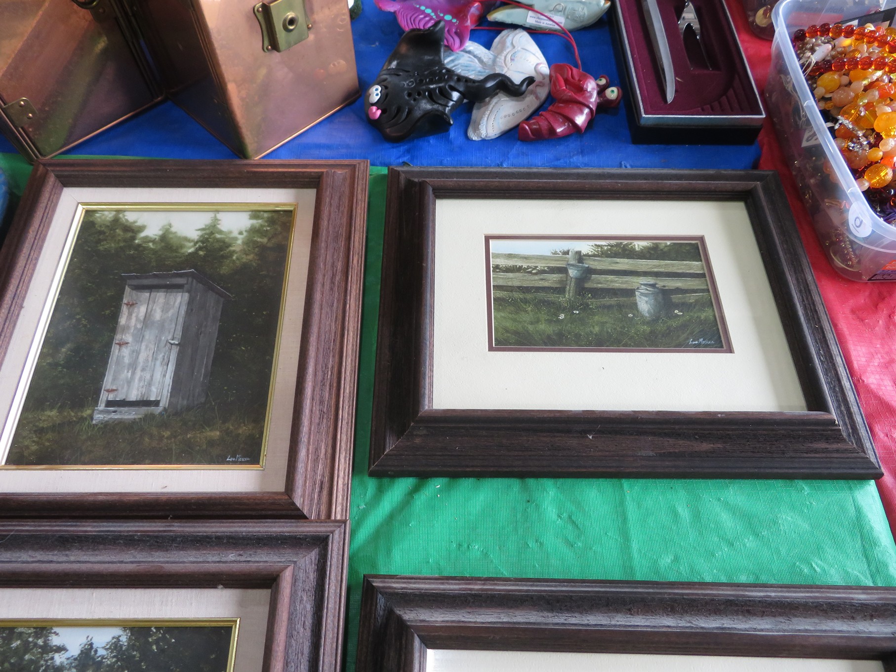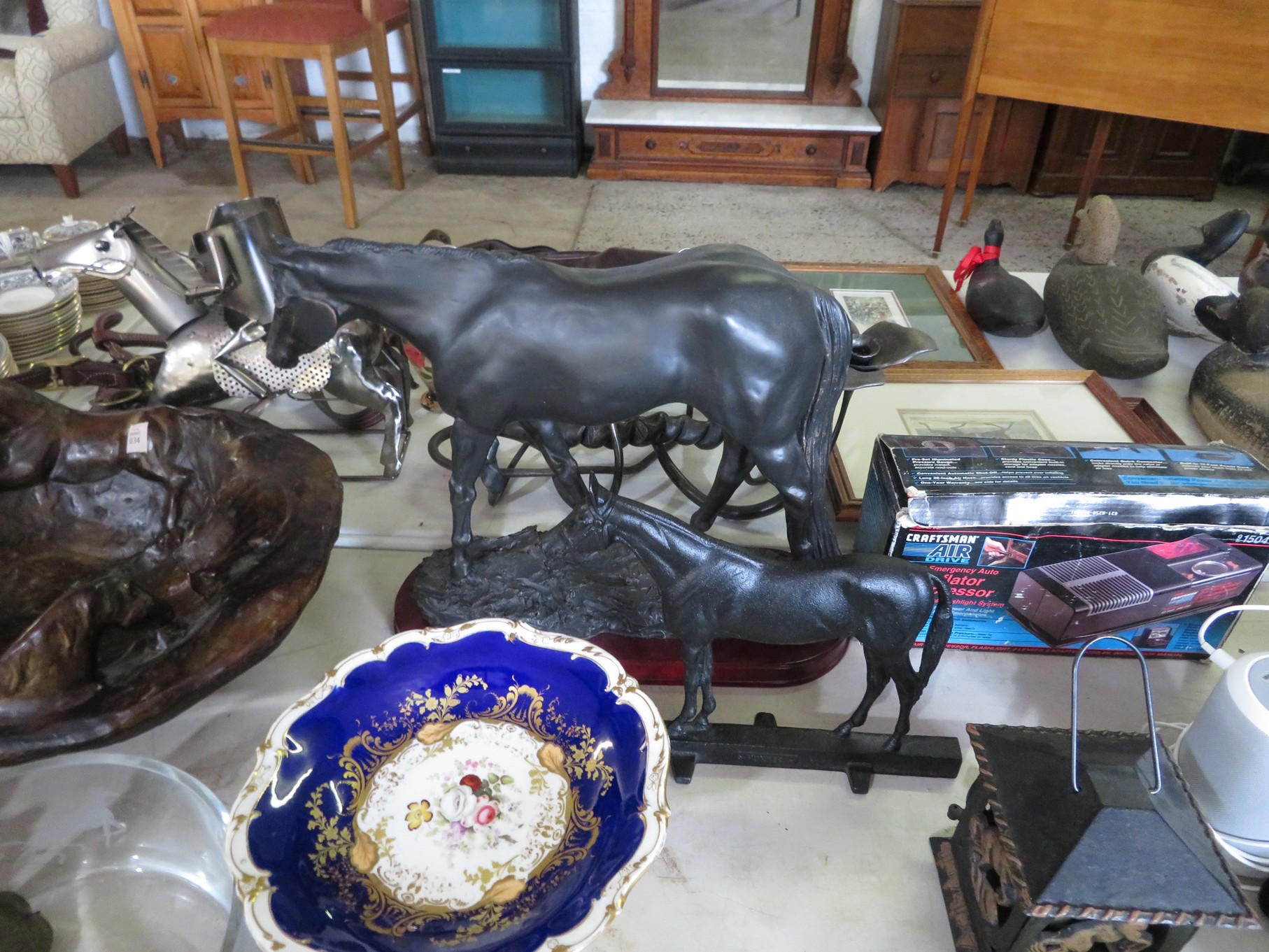 ART & METALS: Lou Messa original art! Not prints! Signed! Great Local artworks! Birdhouse, Mailbox, Outhouse, Scenic, Old Barns & houses, Old barrel & many more! Rare opportunity to acquire the original artworks! Wallace Nutting signed prints; American Indian portrait artworks; Man O’ War print; Fishing Watch print; Print of country village painting; Nice artwork of foggy mountain & stream; Mary Ann Ginter numbered print; Print of red boat on shore; 3D Founding Fathers art; 3D Washington crossing the Delaware art; Statue “Rite of Passage” bronze numbered limited edition by Thomas Blackshear IV; Wooden water buffalo; Wood carvings; Metal figurines; Horses; Franklin Mint sculptured silver-plate napkin ring set in box; Flagons; Animals; Candlesticks; Pitcher; Cup; Brass Dragon, Lion, Candlesticks and Keys; Wooden fish carving; Silver candlesticks, creamer & sugar, trays serving utensils and much much more!