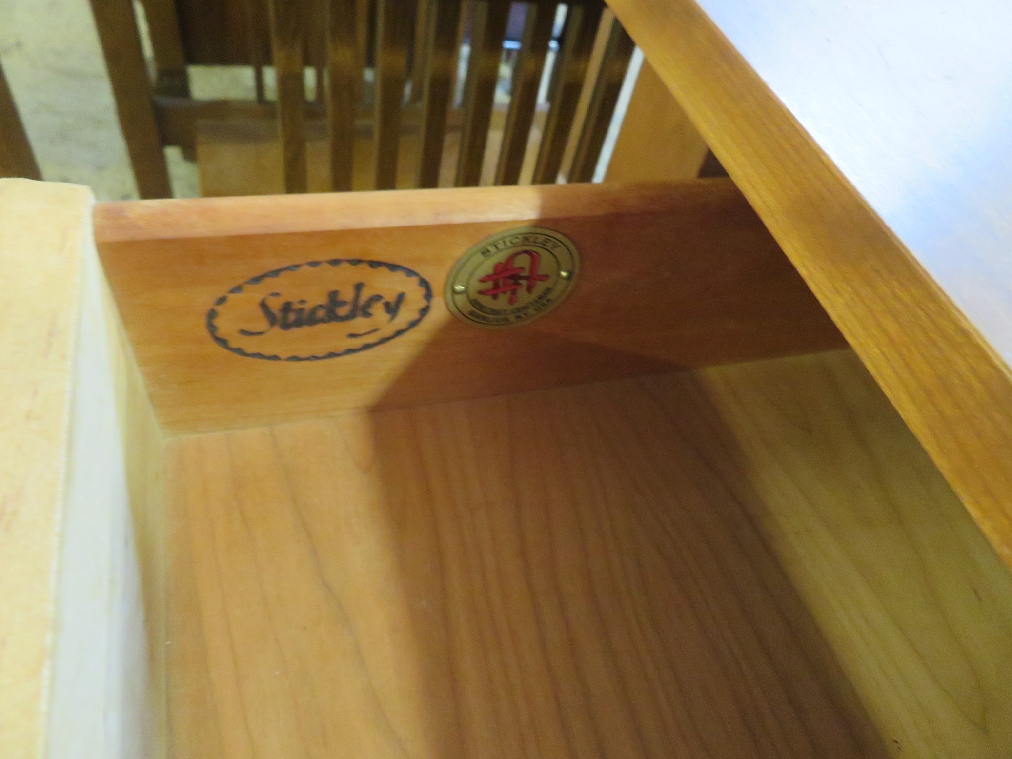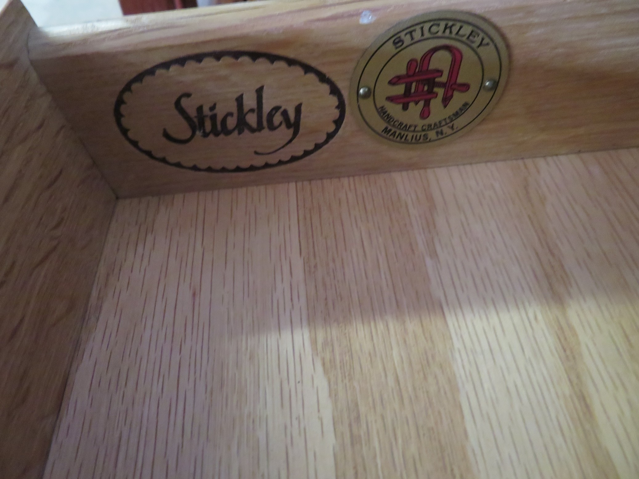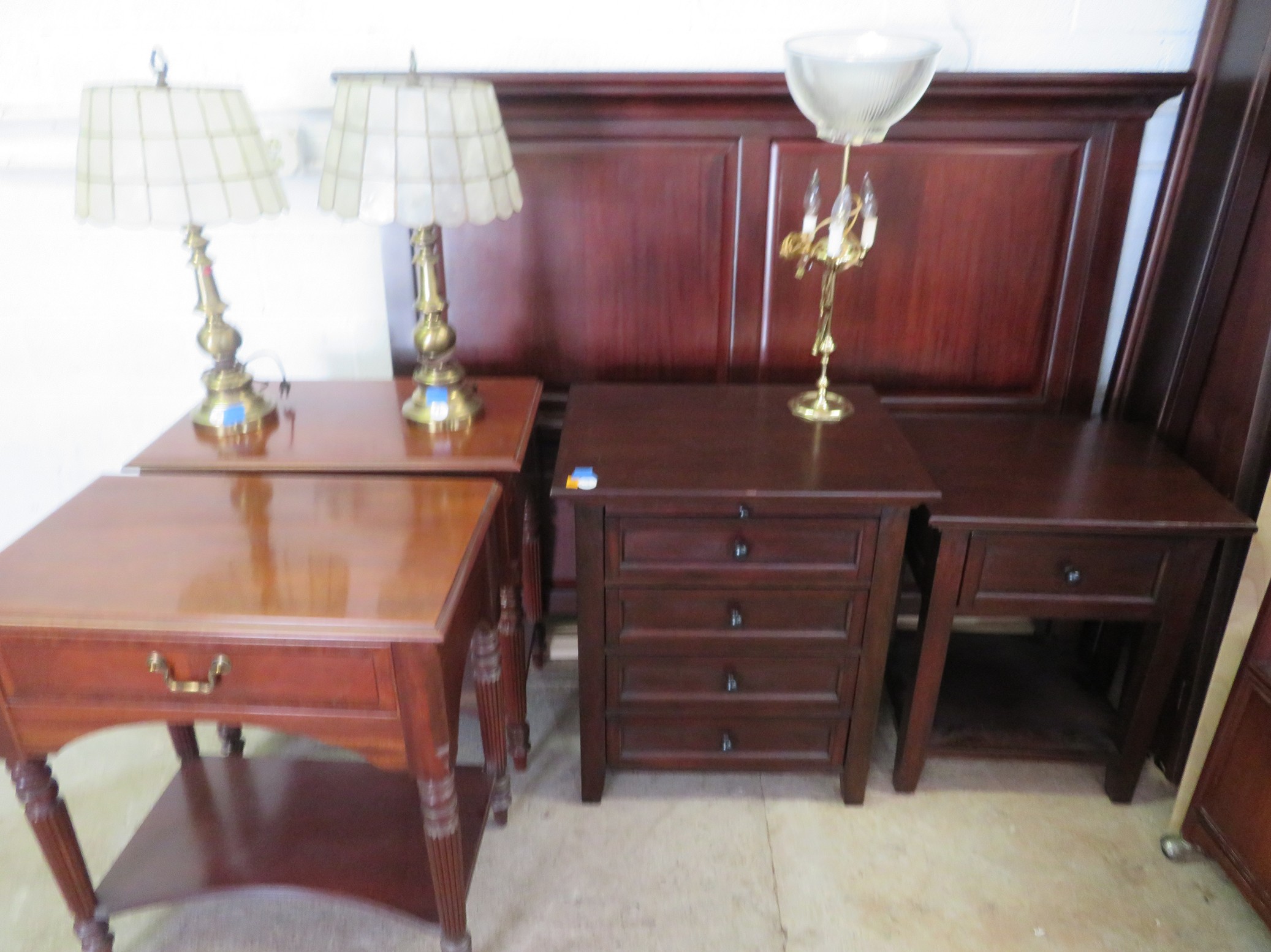 FURNISHINGS: MORE Stickley! Stickley 9 drawer chest; Stickley 2 drawer sofa table; Stickley buffet with door detailing; Stickley small tables; Henkel Harris corner cabinet; Beautiful bowfront sideboard; Serpentine front 12 drawer chest; Nice buffet with brass pulls; Leather 2 section sofa with accent pillows; Chinese altar design server with brass adornments; Arts & crafts occasional table; Oak & leather Morris chair; Lingerie chests; Chest on chest highboy with broken arch; Coffee table with ball & claw feet and 2 matching end tables; Arts & Crafts hall table; Oak dresser with hat compartment; Arts & Crafts Grandma & Grandpa oak rocking chairs; Chinese altar design double door cabinet; Federal sideboard; Bowfront chest of drawers; Wonderful angled front display cabinet with brass detailing; Pair of one drawer end tables with shelves; Oriental style china cabinet with brass; Old step-back china cabinet with lots of carved embellishments; 3 drawer end table; Set of 4 bar seats; Hickory Chair Queen Anne oval dining table with 8 chairs & leaves; Woven seat rocker; Hall table; Pair of oval end tables; Fern stand; Marble top plant stand; MCM dining table and 6 chairs; Mixed wood 3 drawer table; Really nice parlor set with striped upholstery (sofa, love seat & chair with accent pillows); Rolling tea cart with removable top tray; Marble top metal stand; Side table with drawer; Bed; Pair of 1 drawer end tables; Small chest; Lots of brass table lamps; Set of wooden TV trays with stand; Brass & glass coffee table; Planter stand; Pair of stools; Armchair; Candle table; Birthing seat; Wine rack; Decorative metal miniature sleigh; Dining table With leaves & 6 chairs; Vanity with tri-fold mirror; Dresser; Oak 2 drawer file cabinet on legs; Heavily carved marble top server; Blue painted two seat bench with cushion; Marble top tables; Armchairs; Oriental style server with lots of brass; Needlepoint footstool; Round side table; Small blanket box; End tables; 4 drawer chest with metal accents; Leather top drum table; Leather top small side table; Oak table; Rocking chairs; Padded footstool; Sewing box; Padded double arm bench; Round table with brass rail; Half round table; End table with leather top; Pair of oak open bookshelves; Brass kindling holder with feet; Fireplace tools set; Floor lamps; Shaving mirror with drawer; Metal & wood baker’s rack; Cedar hope chest; Ornate wall clock; Fine Oriental rugs, runners & carpets; Lots & lots of great table lamps; Crystal lamps; Ceramic lamps; Boudoir lamp; Stick lamps; Double arm lamp; Set of nesting tables; Piano stool with Ball & claw feet; Brass floor lamp; Rattan glass top round table; Display top table; Calendar clock; Bullseye mirror with eagle; More mirrors; Hanging lights; Mantel clocks; Outdoor furniture; Tile top tables and lots, lots more!