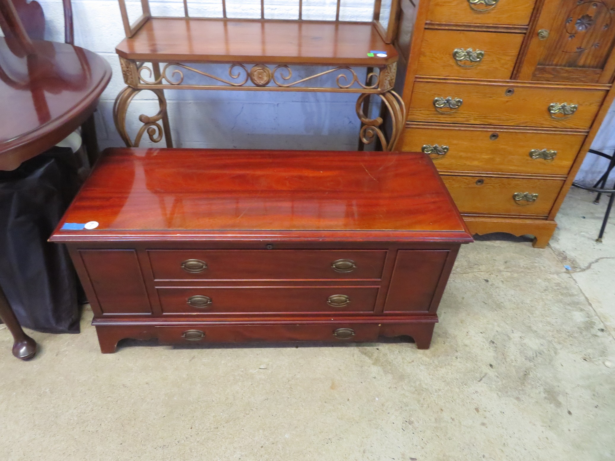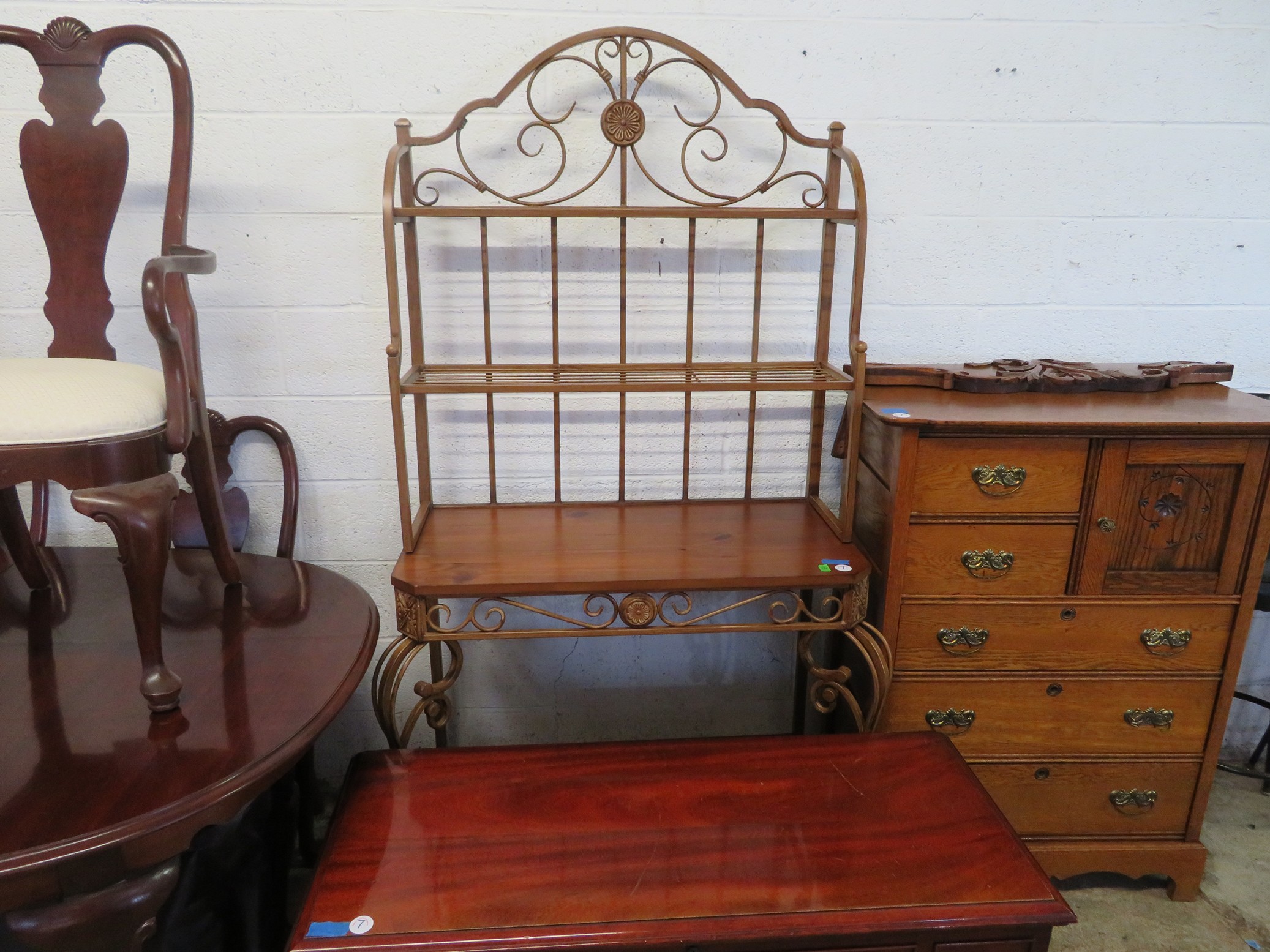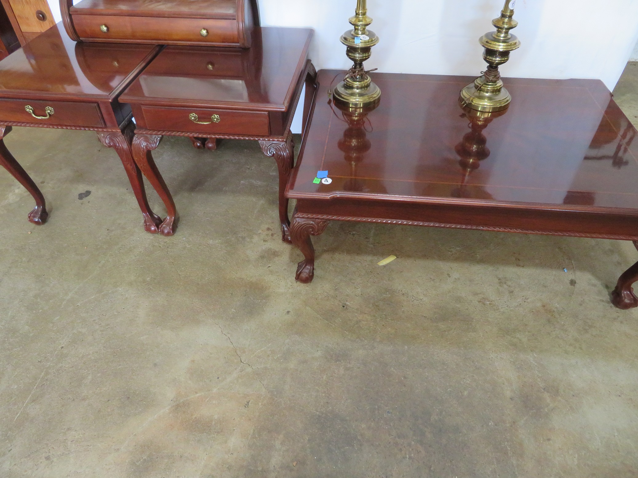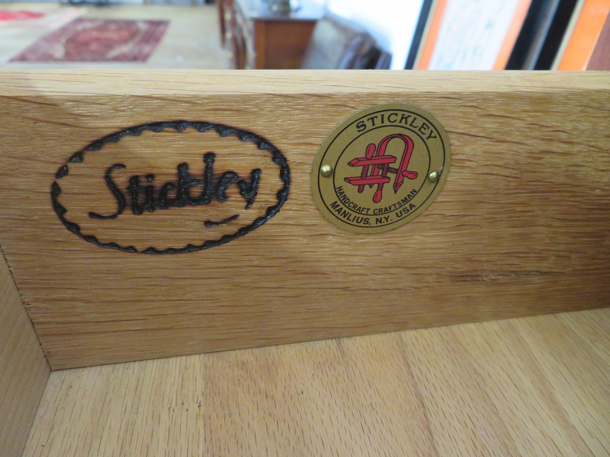 FURNISHINGS: MORE Stickley! Stickley 9 drawer chest; Stickley 2 drawer sofa table; Stickley buffet with door detailing; Stickley small tables; Henkel Harris corner cabinet; Beautiful bowfront sideboard; Serpentine front 12 drawer chest; Nice buffet with brass pulls; Leather 2 section sofa with accent pillows; Chinese altar design server with brass adornments; Arts & crafts occasional table; Oak & leather Morris chair; Lingerie chests; Chest on chest highboy with broken arch; Coffee table with ball & claw feet and 2 matching end tables; Arts & Crafts hall table; Oak dresser with hat compartment; Arts & Crafts Grandma & Grandpa oak rocking chairs; Chinese altar design double door cabinet; Federal sideboard; Bowfront chest of drawers; Wonderful angled front display cabinet with brass detailing; Pair of one drawer end tables with shelves; Oriental style china cabinet with brass; Old step-back china cabinet with lots of carved embellishments; 3 drawer end table; Set of 4 bar seats; Hickory Chair Queen Anne oval dining table with 8 chairs & leaves; Woven seat rocker; Hall table; Pair of oval end tables; Fern stand; Marble top plant stand; MCM dining table and 6 chairs; Mixed wood 3 drawer table; Really nice parlor set with striped upholstery (sofa, love seat & chair with accent pillows); Rolling tea cart with removable top tray; Marble top metal stand; Side table with drawer; Bed; Pair of 1 drawer end tables; Small chest; Lots of brass table lamps; Set of wooden TV trays with stand; Brass & glass coffee table; Planter stand; Pair of stools; Armchair; Candle table; Birthing seat; Wine rack; Decorative metal miniature sleigh; Dining table With leaves & 6 chairs; Vanity with tri-fold mirror; Dresser; Oak 2 drawer file cabinet on legs; Heavily carved marble top server; Blue painted two seat bench with cushion; Marble top tables; Armchairs; Oriental style server with lots of brass; Needlepoint footstool; Round side table; Small blanket box; End tables; 4 drawer chest with metal accents; Leather top drum table; Leather top small side table; Oak table; Rocking chairs; Padded footstool; Sewing box; Padded double arm bench; Round table with brass rail; Half round table; End table with leather top; Pair of oak open bookshelves; Brass kindling holder with feet; Fireplace tools set; Floor lamps; Shaving mirror with drawer; Metal & wood baker’s rack; Cedar hope chest; Ornate wall clock; Fine Oriental rugs, runners & carpets; Lots & lots of great table lamps; Crystal lamps; Ceramic lamps; Boudoir lamp; Stick lamps; Double arm lamp; Set of nesting tables; Piano stool with Ball & claw feet; Brass floor lamp; Rattan glass top round table; Display top table; Calendar clock; Bullseye mirror with eagle; More mirrors; Hanging lights; Mantel clocks; Outdoor furniture; Tile top tables and lots, lots more!
