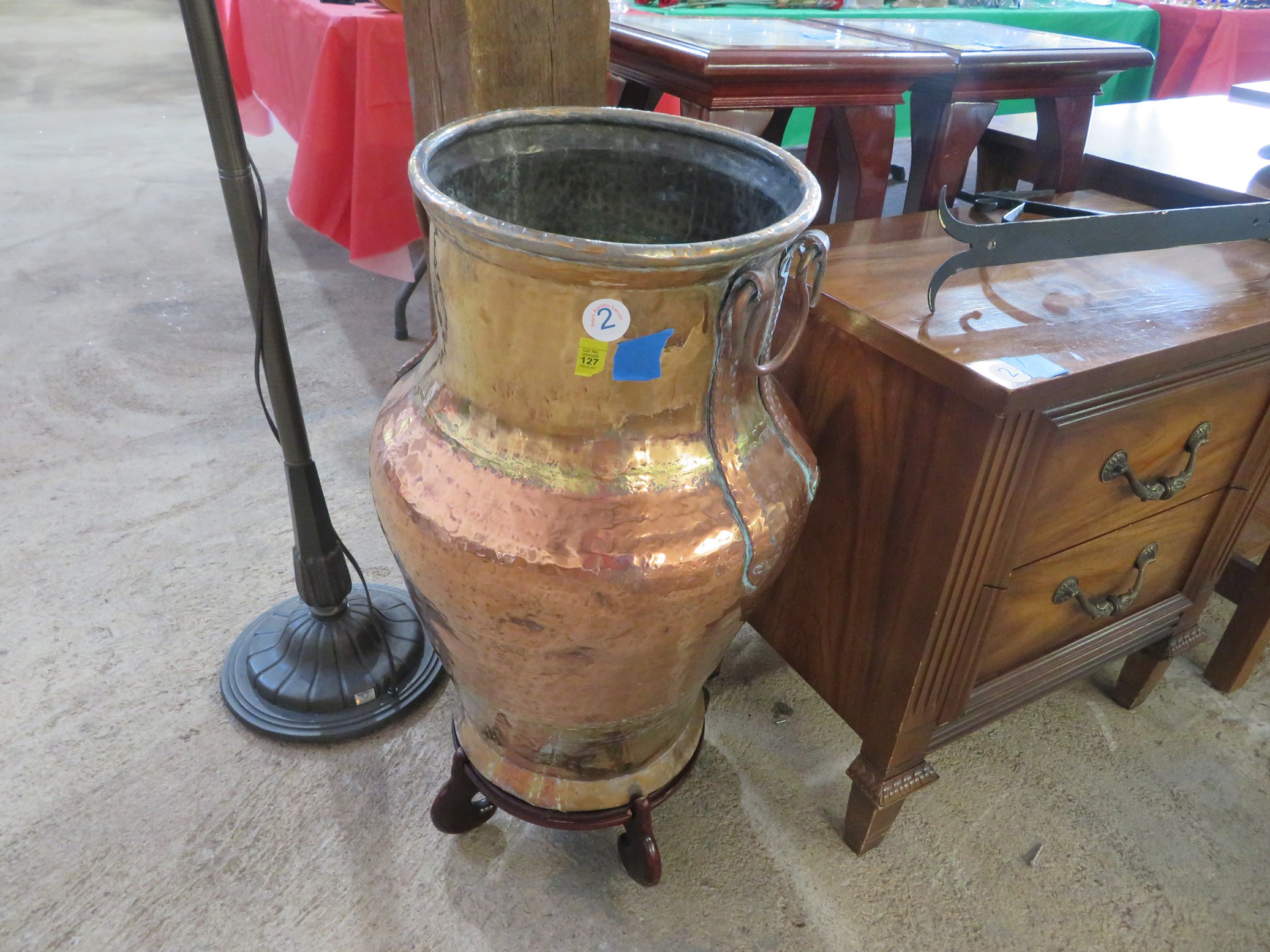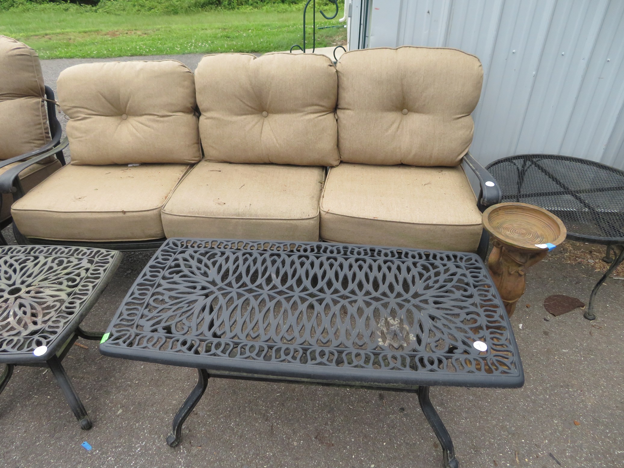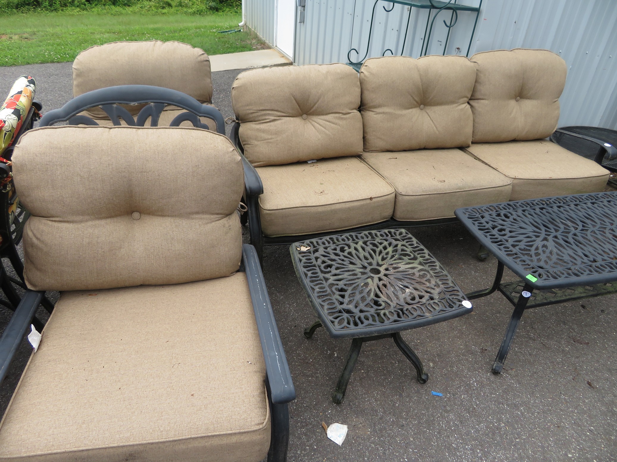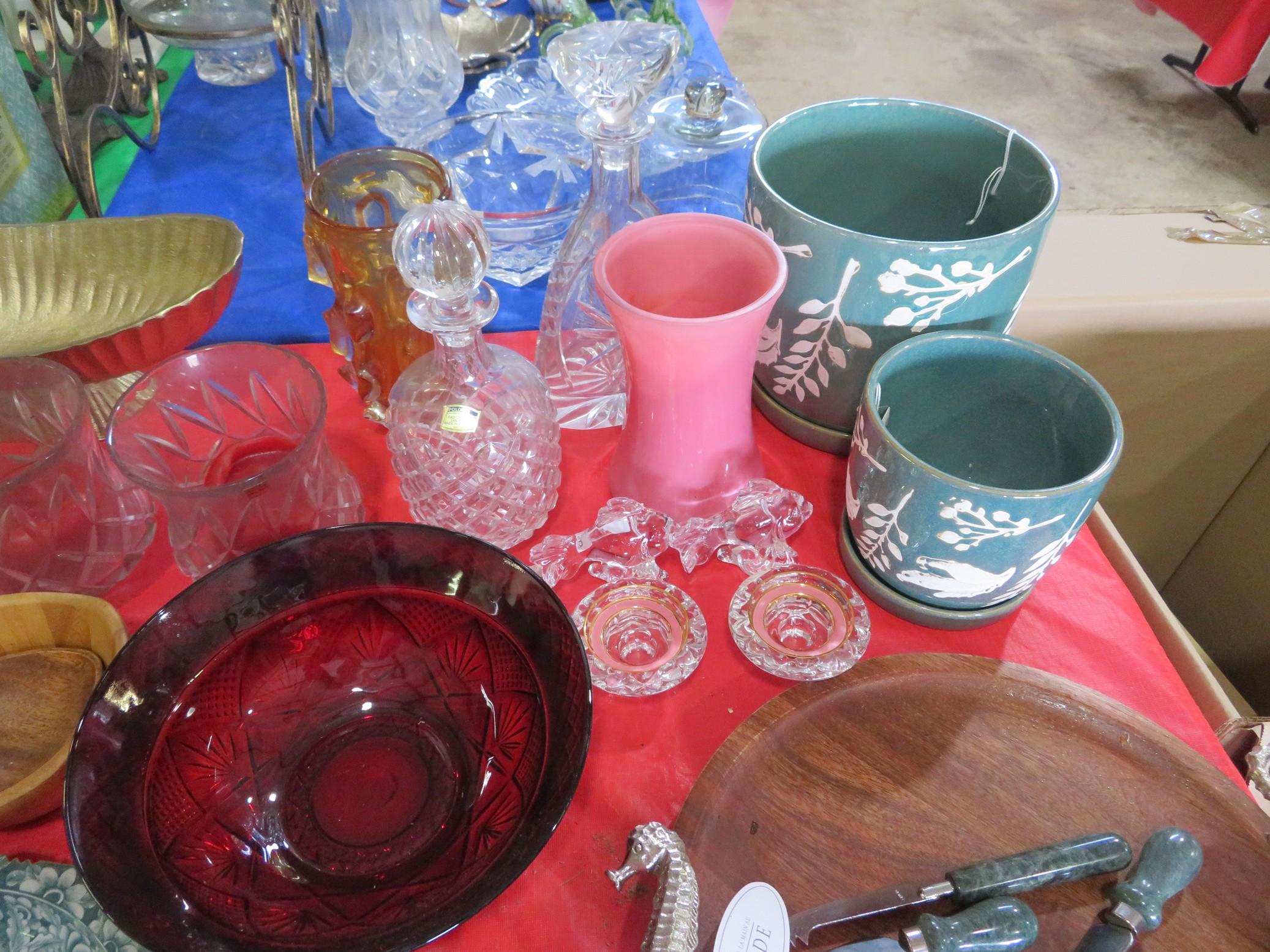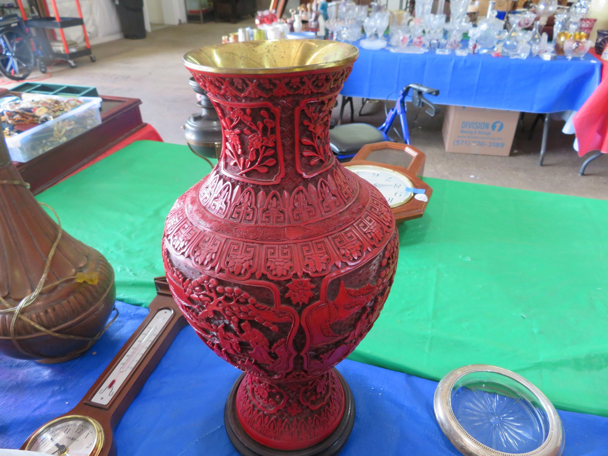 MORE: Set of mounted longhorns; Globe; Huge hammered copper bowl with brass handles; Huge hammered copper floor urn on base; Metal compartmentalized flower seller’s bucket; Brass floor candlestands; Large copper bowl with handles; Large cinnabar vase; Barometer; More copper bowls; Basket of fairy figures; Decorative boxes; Cheese tins; Stone vases; Decorated gourd; Crystal specimens; Bose radio; Coffee set on tray; Bookends; Binoculars; Insulator lamp; Smoking pipe; Cameras lenses & filters; Stein; Stone cherry tree; Wrought iron outdoor furniture; Tile top tables; Garden bench; Patio sets; Metal outdoor tables; Cast iron garden seats, tables & planters; Concrete planter; Bell with cradle; Garden art; more to come!