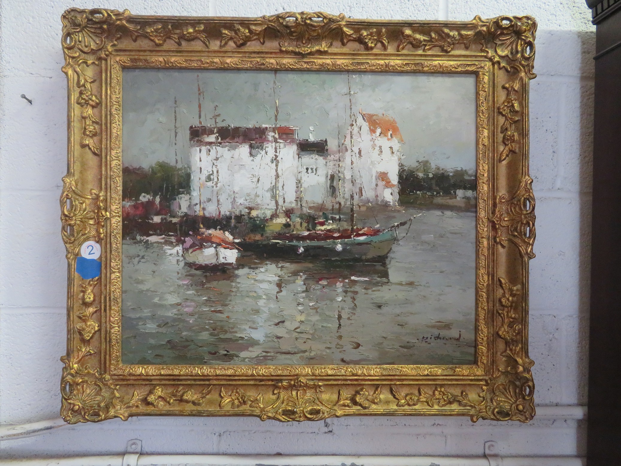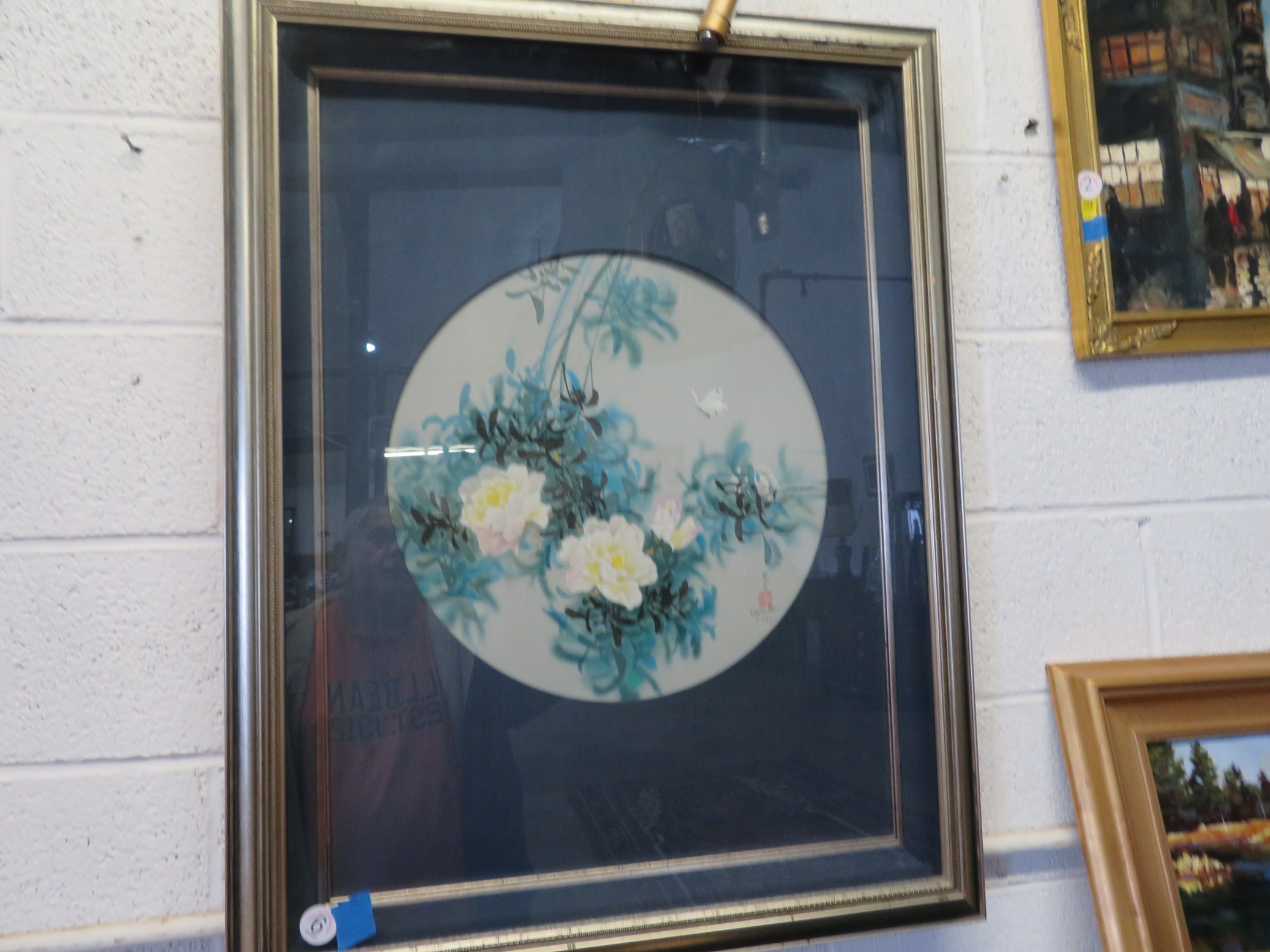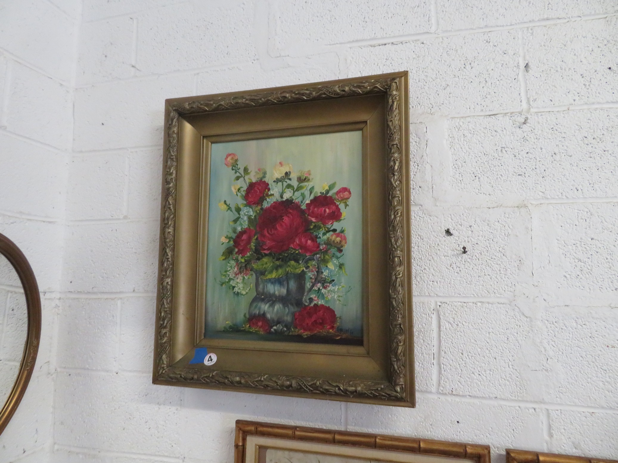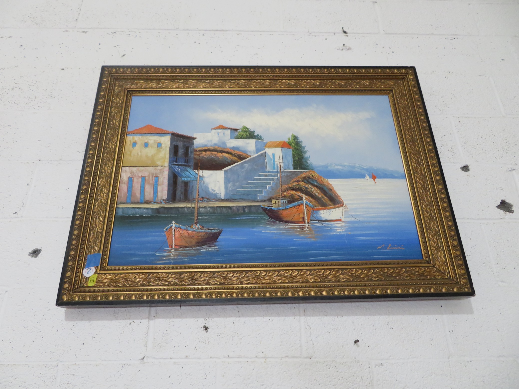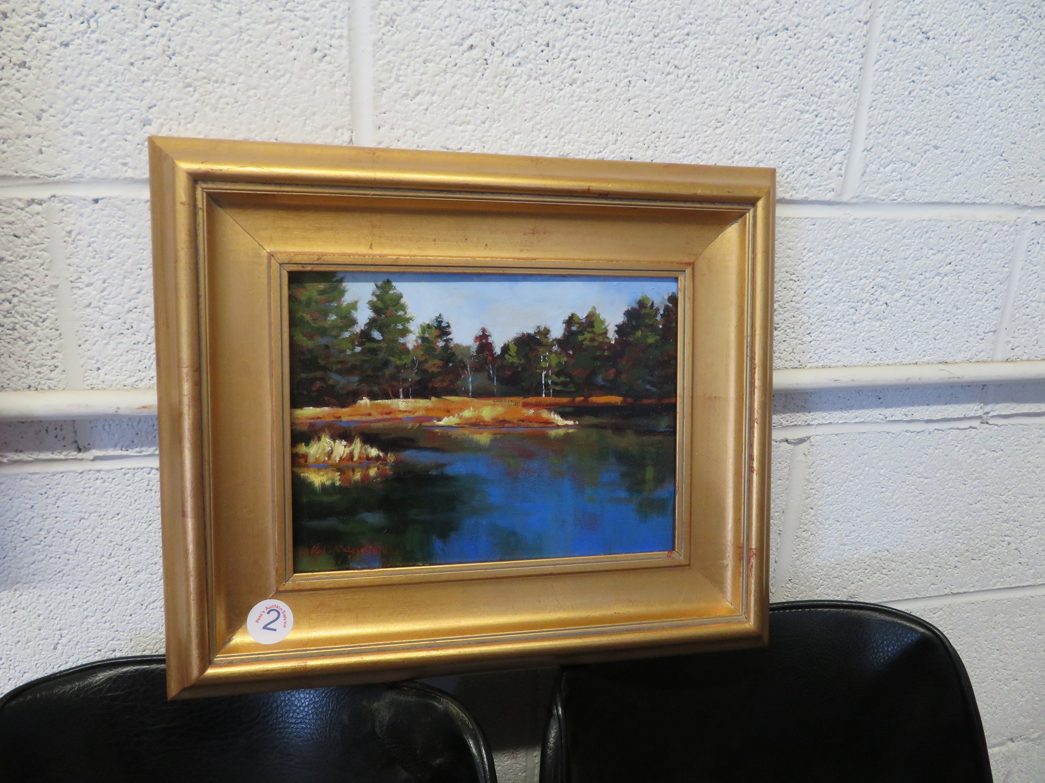 ART & METALS: Impressionist sailboats & houses signed painting; Flowers of Britain by John Lancaster, ca. 1960; Colorful painting of wall; Steamships in port artwork; Abstract; Mediterranean seaside; Floral art; Lake edge artwork; Vase of roses still life; Dog portraits; Stained glass panel; More signed artworks; Prints; More ship artworks; Painting of peonies; Sheep in pasture; Large abstract; Small bust; Figurines; Carved wooden figures; Buddha; Elephant carving & statue collection; Face plaques; Flatware in case; Metal foo dog pair; Brass rocking horse candlestick; Pig; Metal flying geese statue; Running horses statue; Pair of 4 arm candelabras; Butter dome; Silver rim coaster; Silver goblet set; Silver champagne cups; Cobalt bulbous vase with silver overlay; Crystal centerpiece bowl on silver rearing horse base; Metal vases; Brass candlesticks; Silver trays; Compote; Rabbit triple condiment holder; Rabbit bowl server & more!